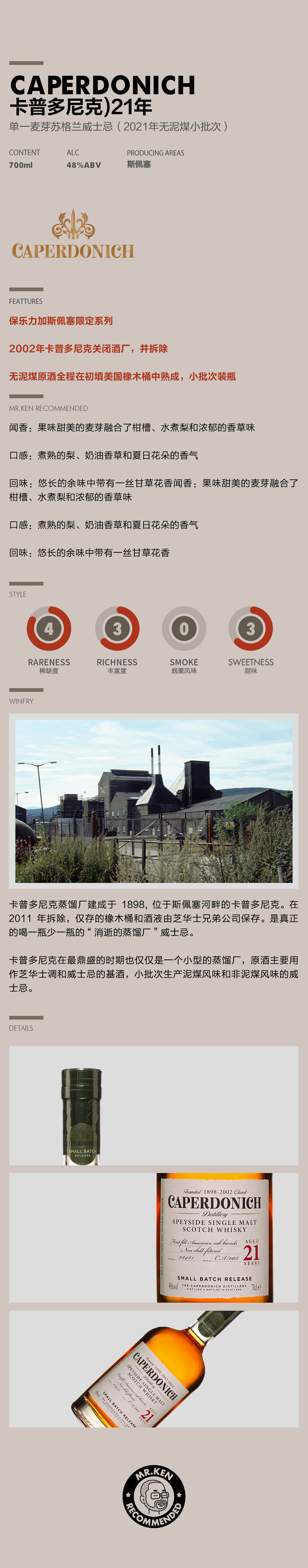 卡普多尼克(Caperdonich)21年单一麦芽苏格兰威士忌(2021年无泥煤小批次)赠保乐力加烈酒杯礼盒