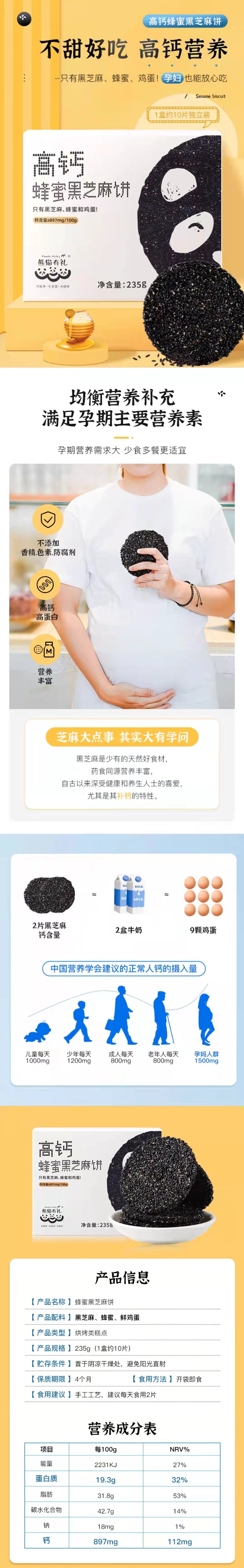 熊猫有礼高钙蜂蜜黑芝麻饼235g