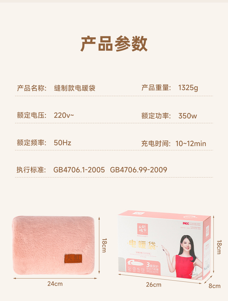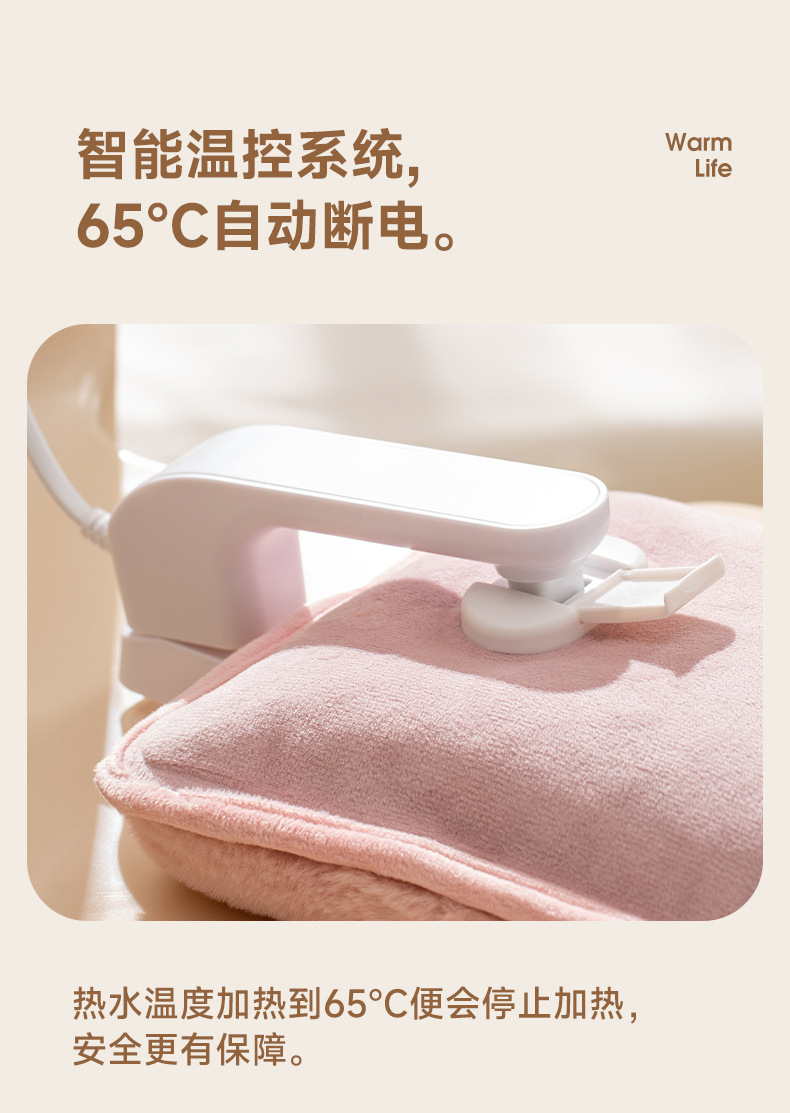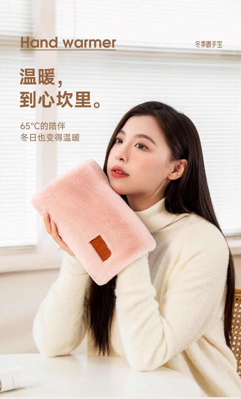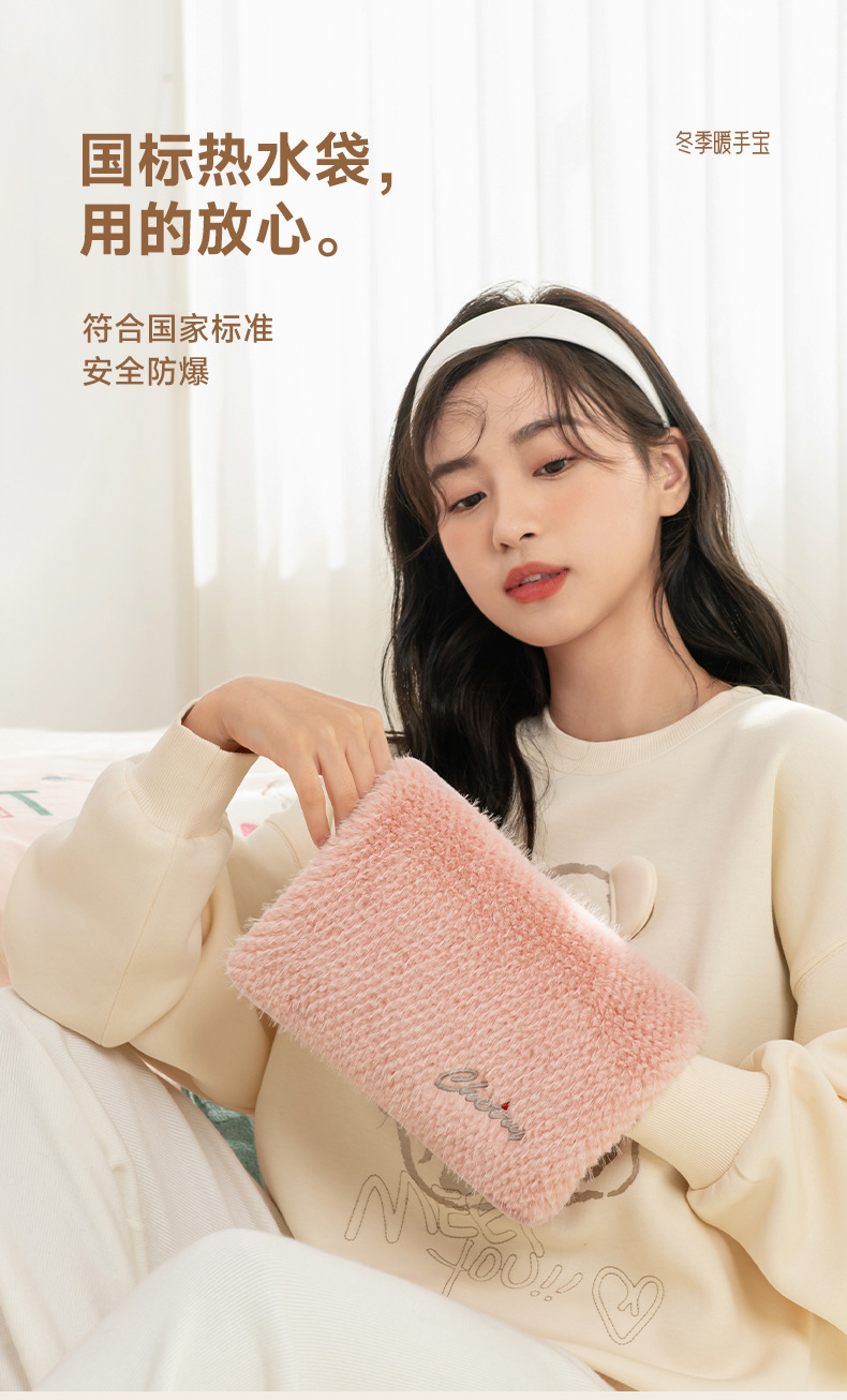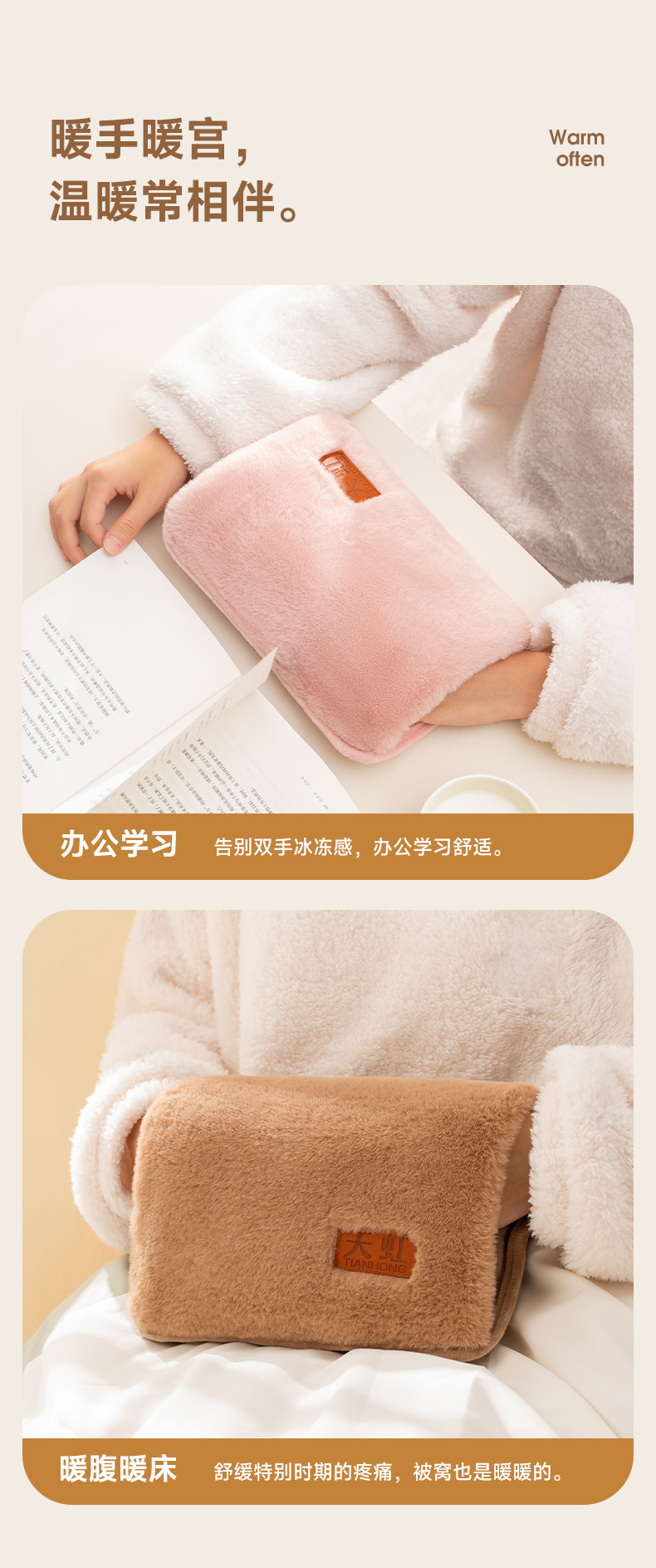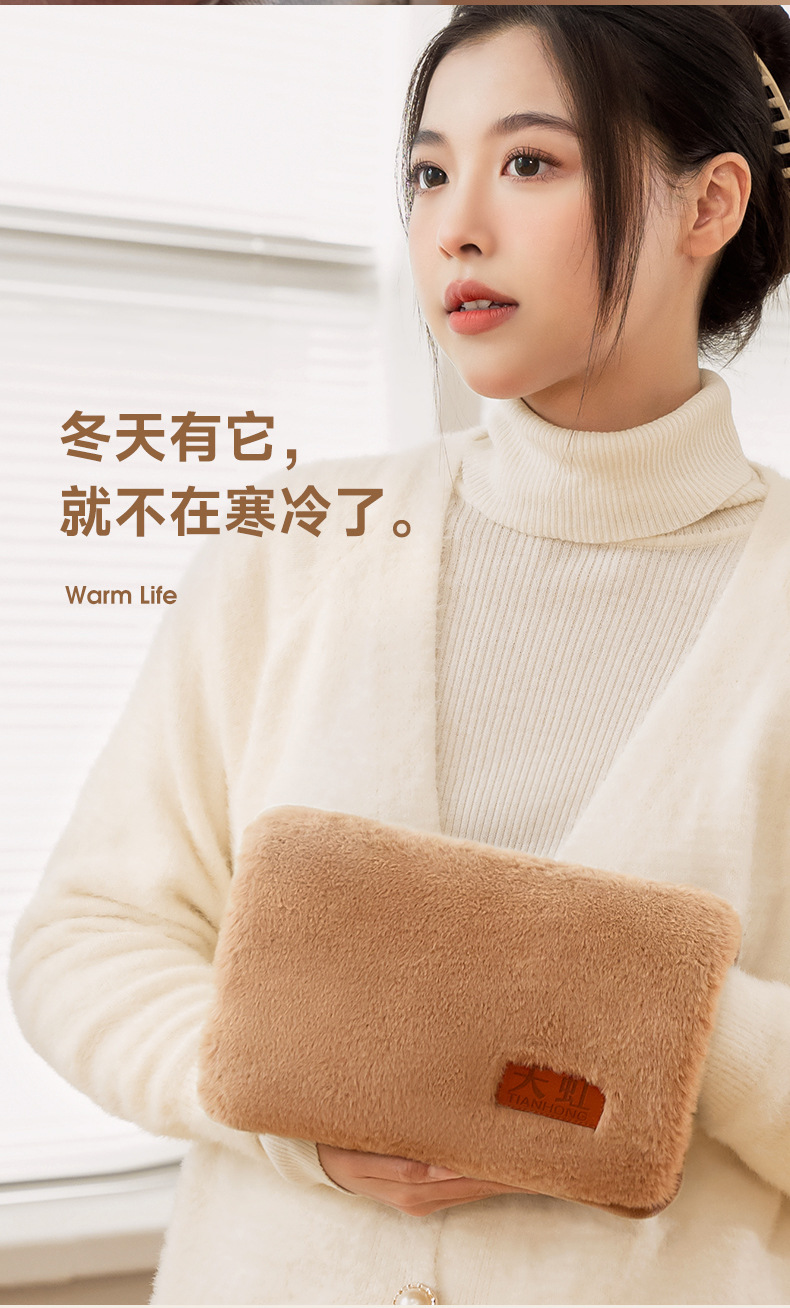 【2件立减20】天虹国标电热暖手宝简约纯色毛绒电热水袋水电分离防爆暖手宝