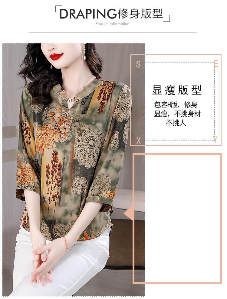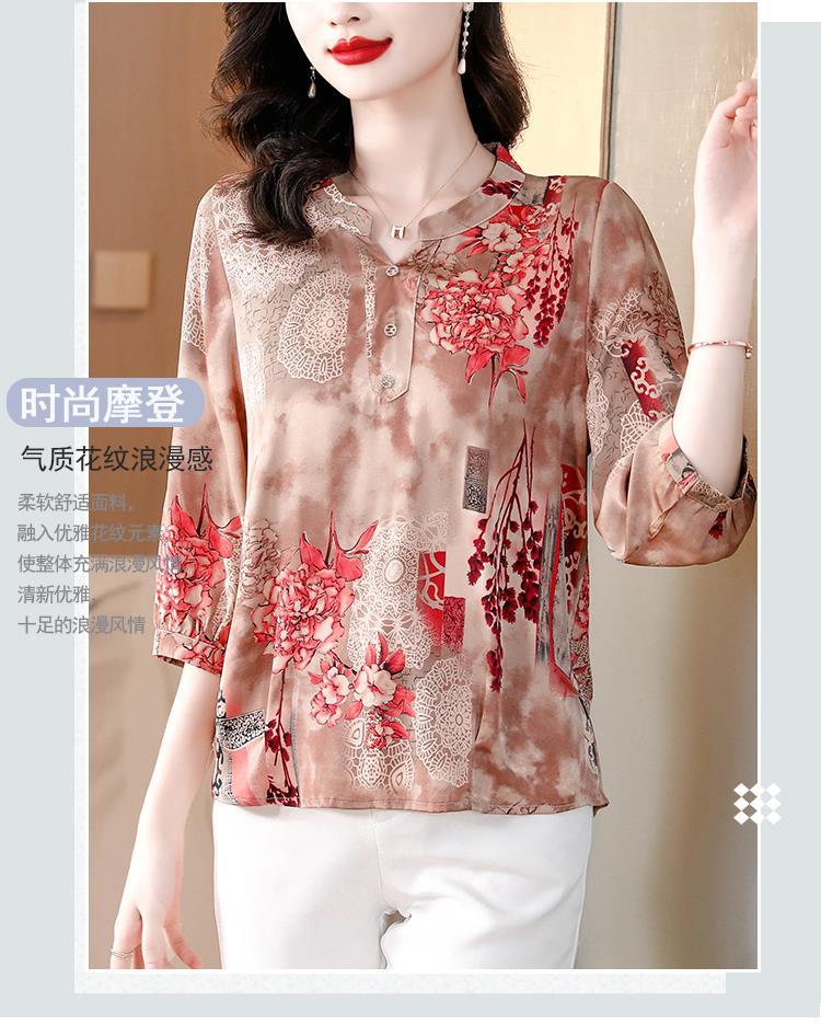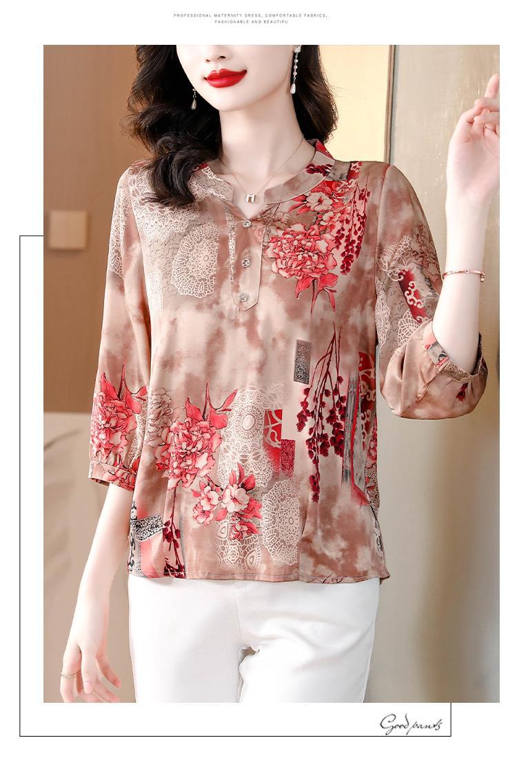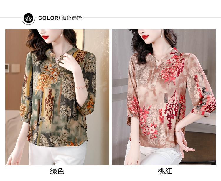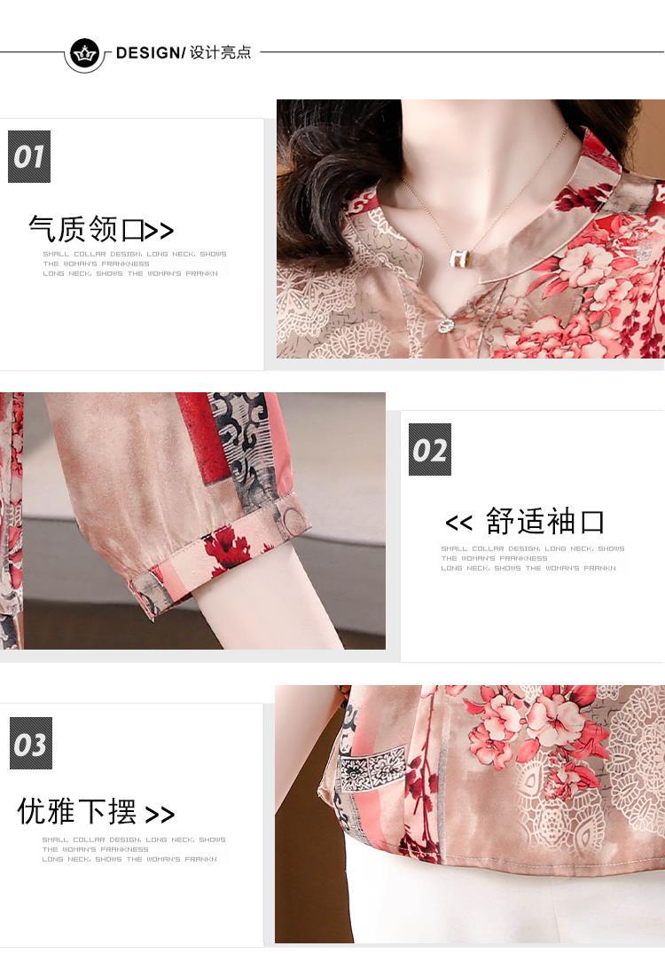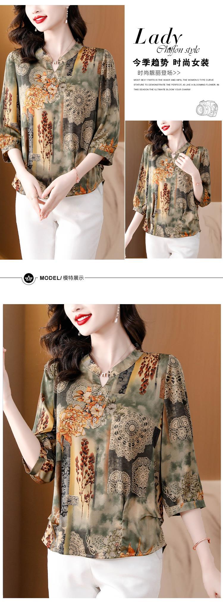 夏新款妈妈中袖上衣,女装仿真丝雪纺小衫中国风印花衬衫上衣女KQL-A10F5502