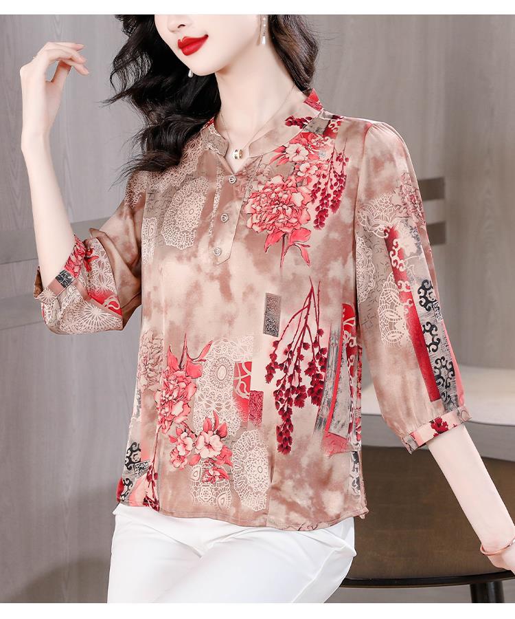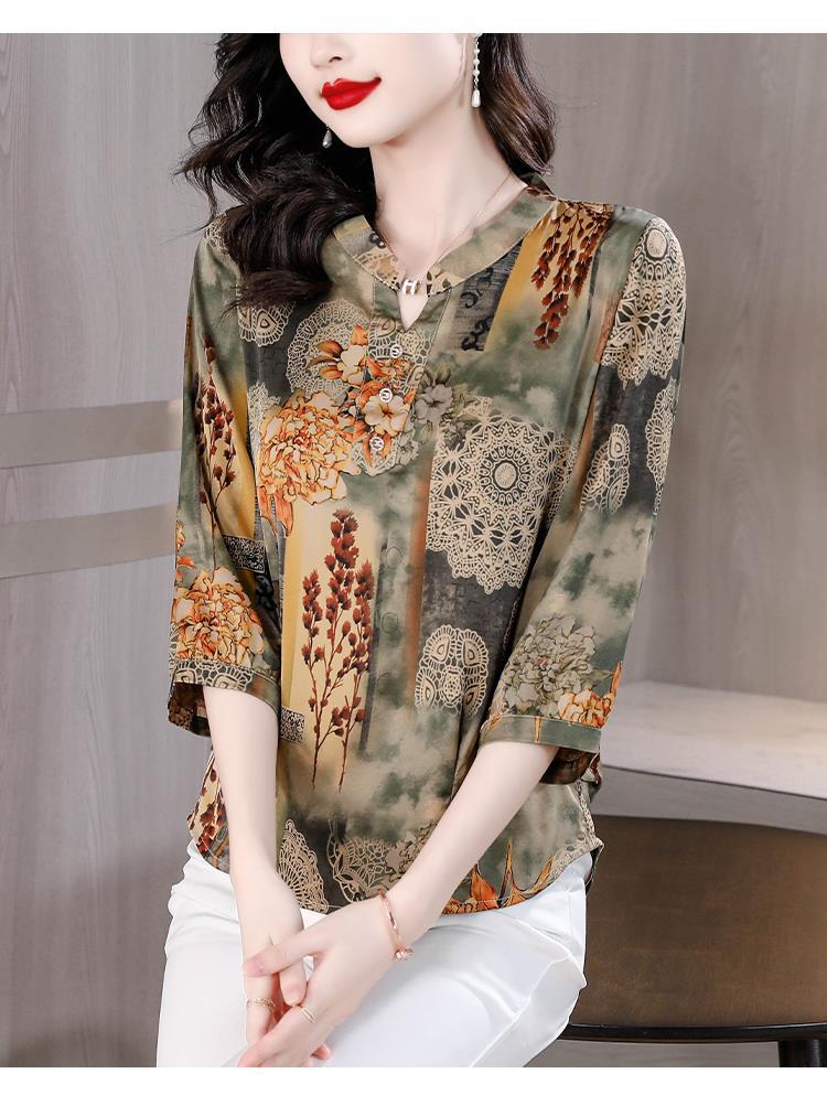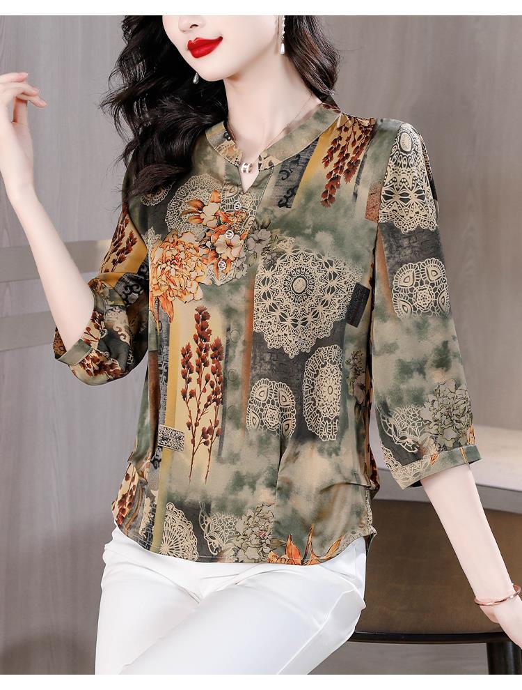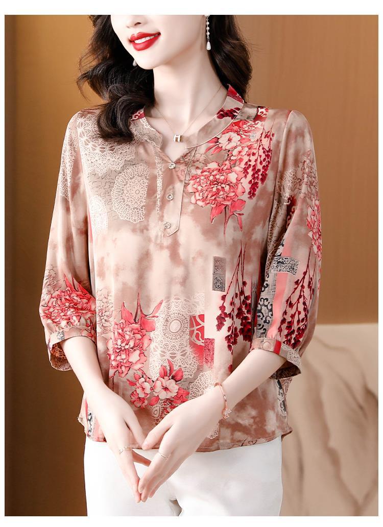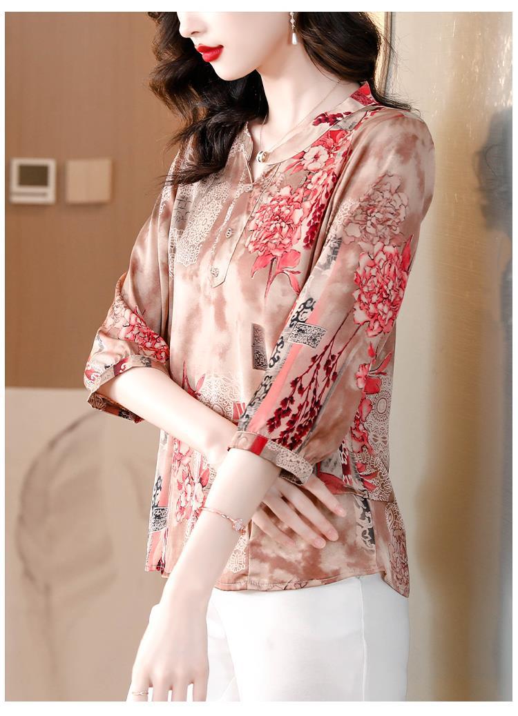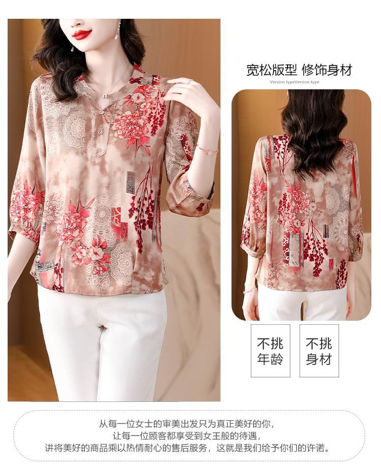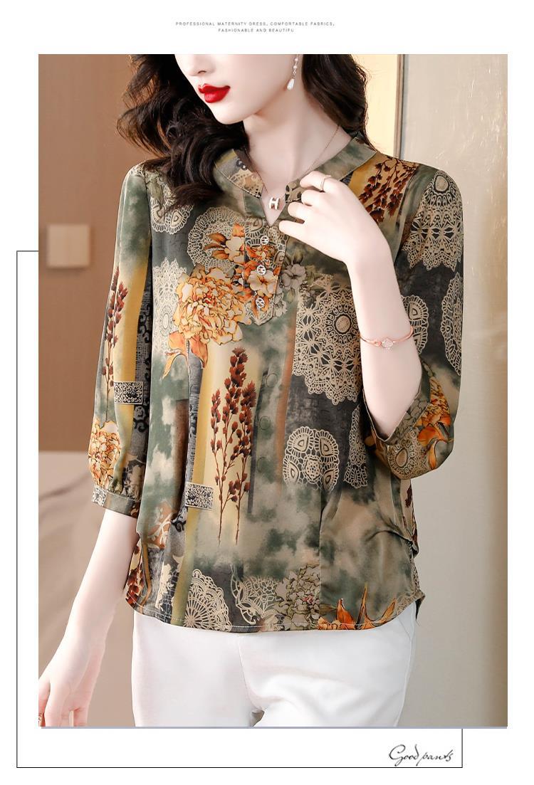 夏新款妈妈中袖上衣,女装仿真丝雪纺小衫中国风印花衬衫上衣女KQL-A10F5502