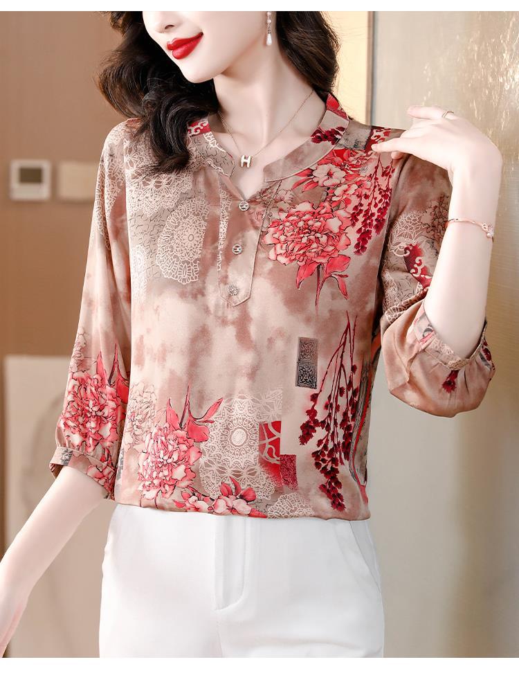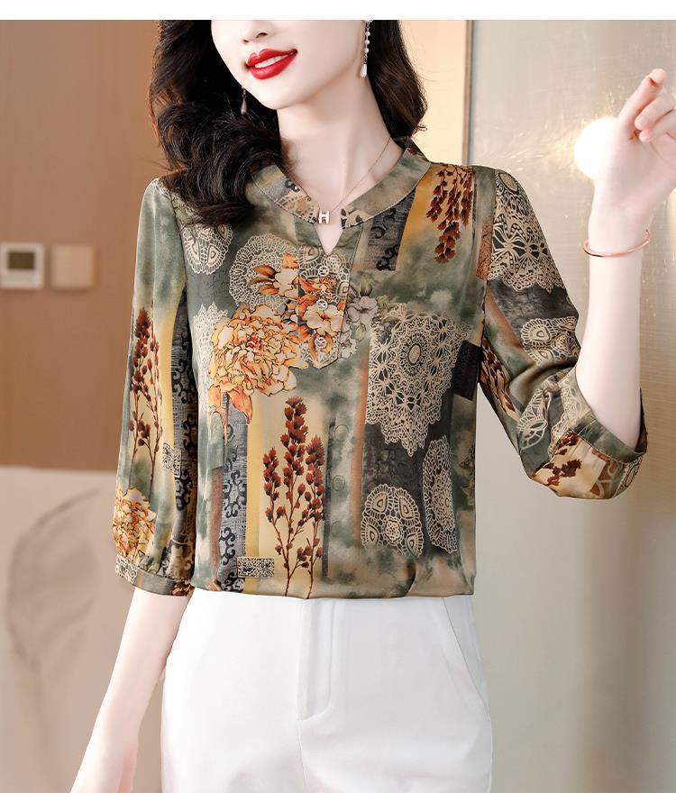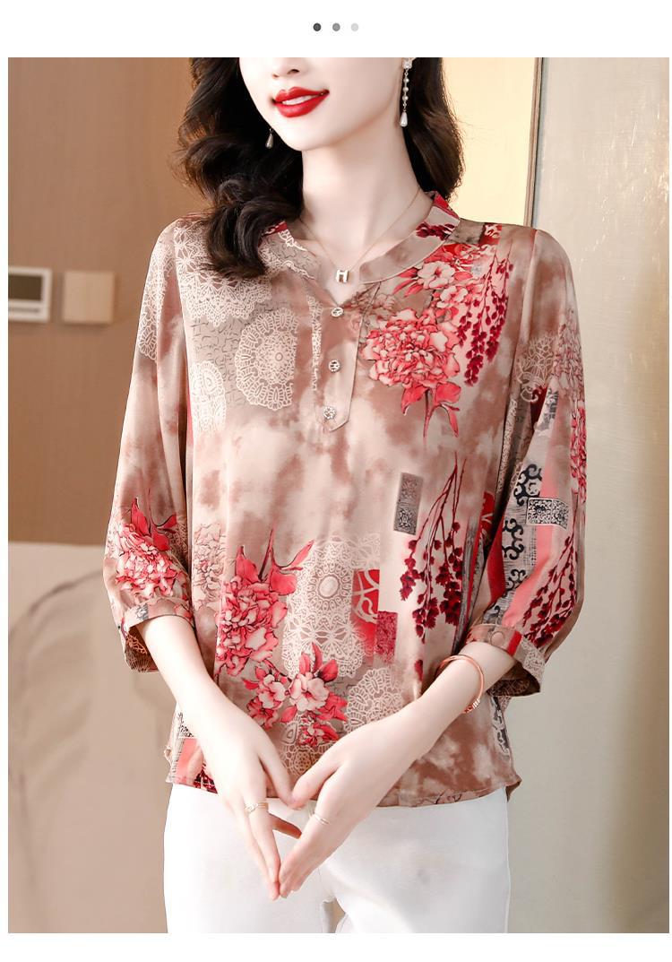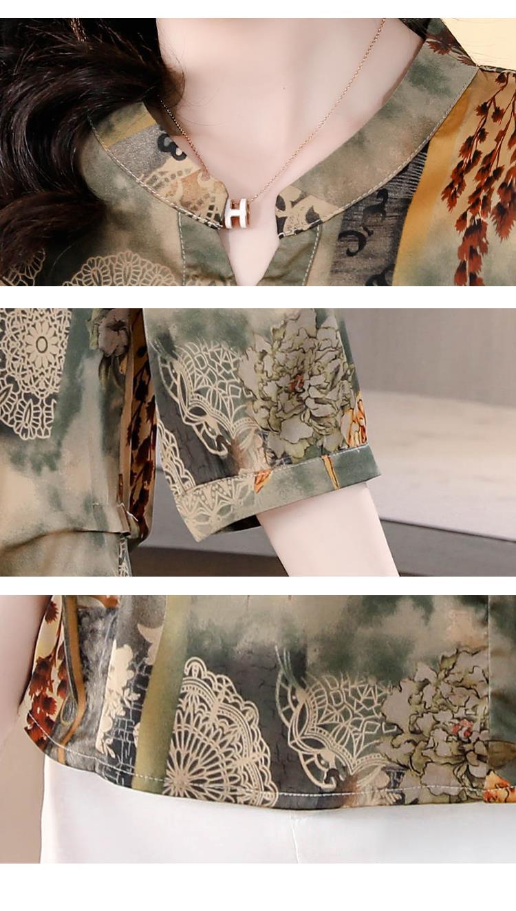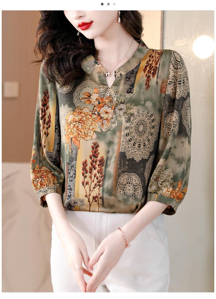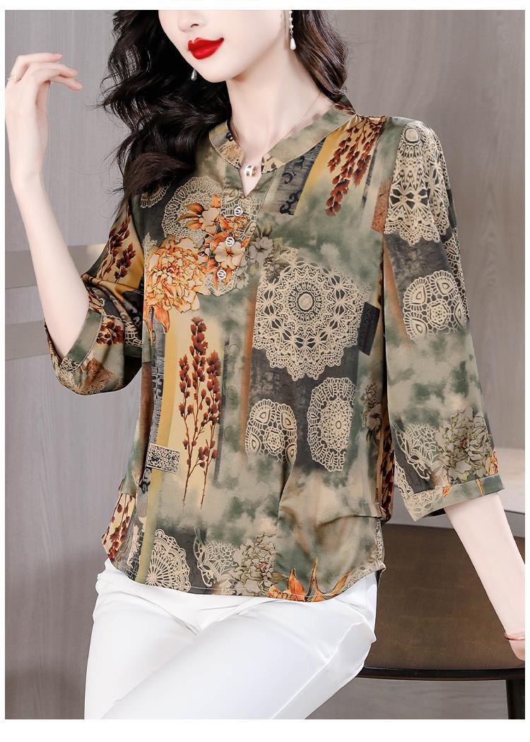 夏新款妈妈中袖上衣,女装仿真丝雪纺小衫中国风印花衬衫上衣女KQL-A10F5502
