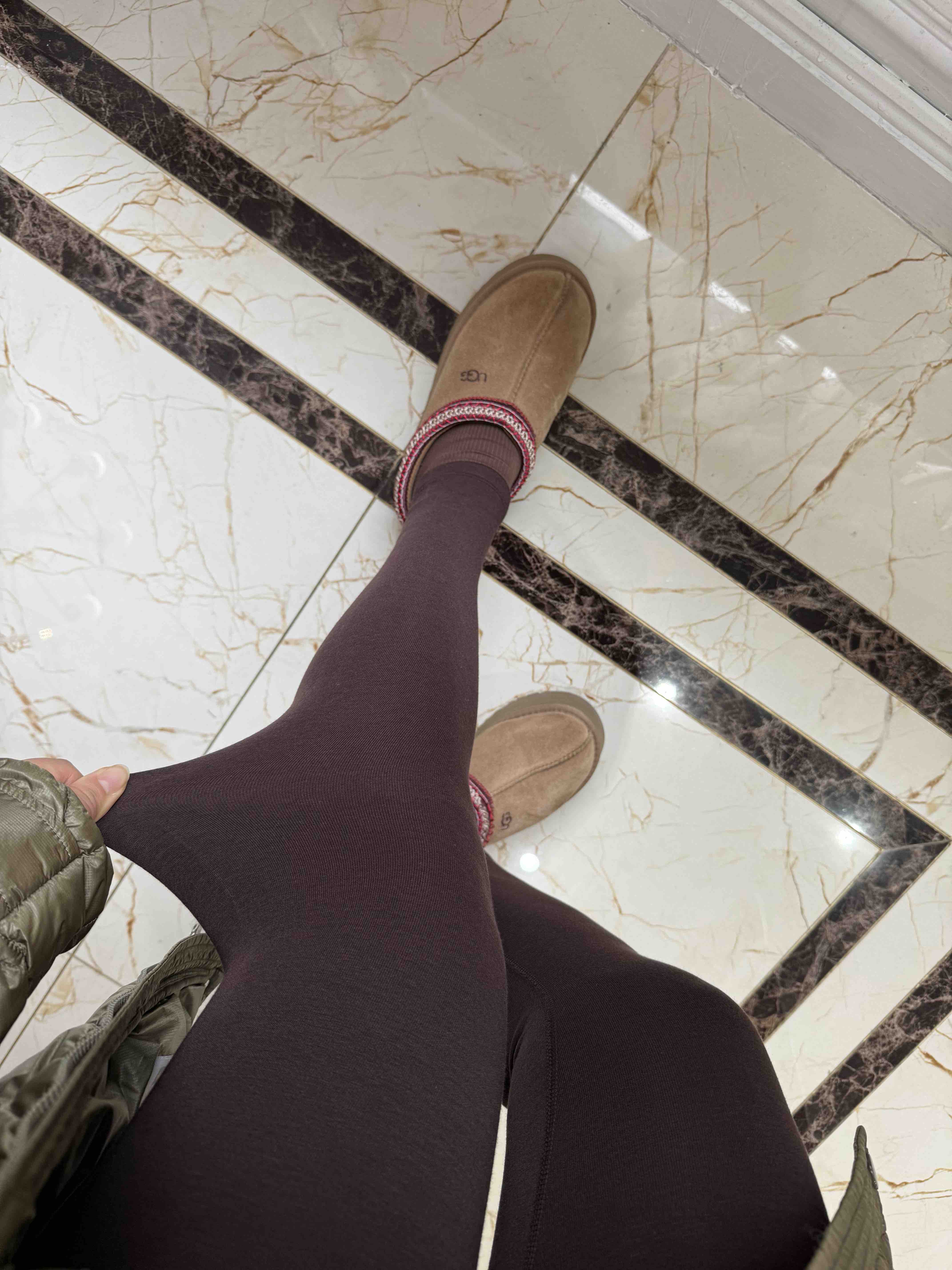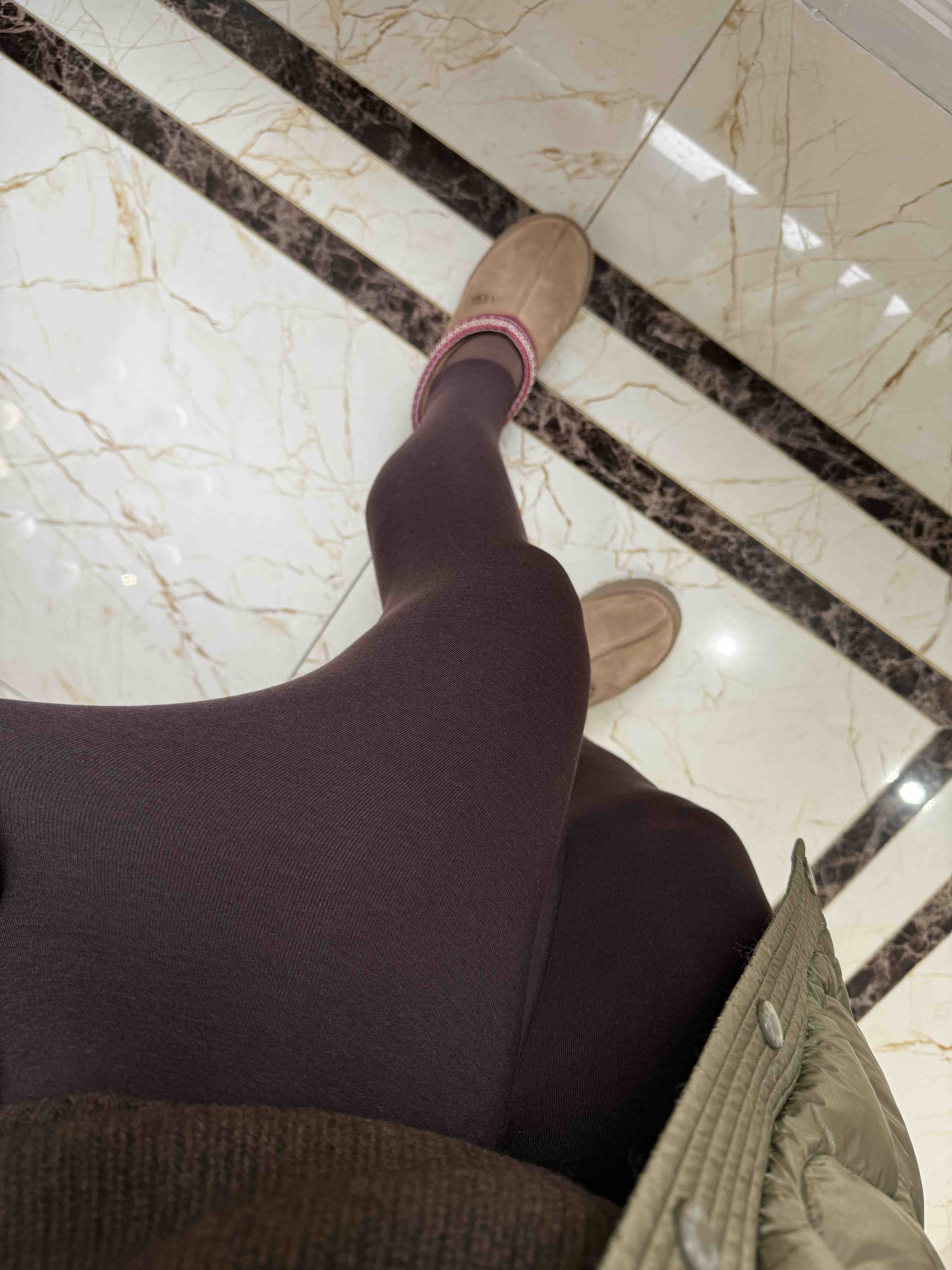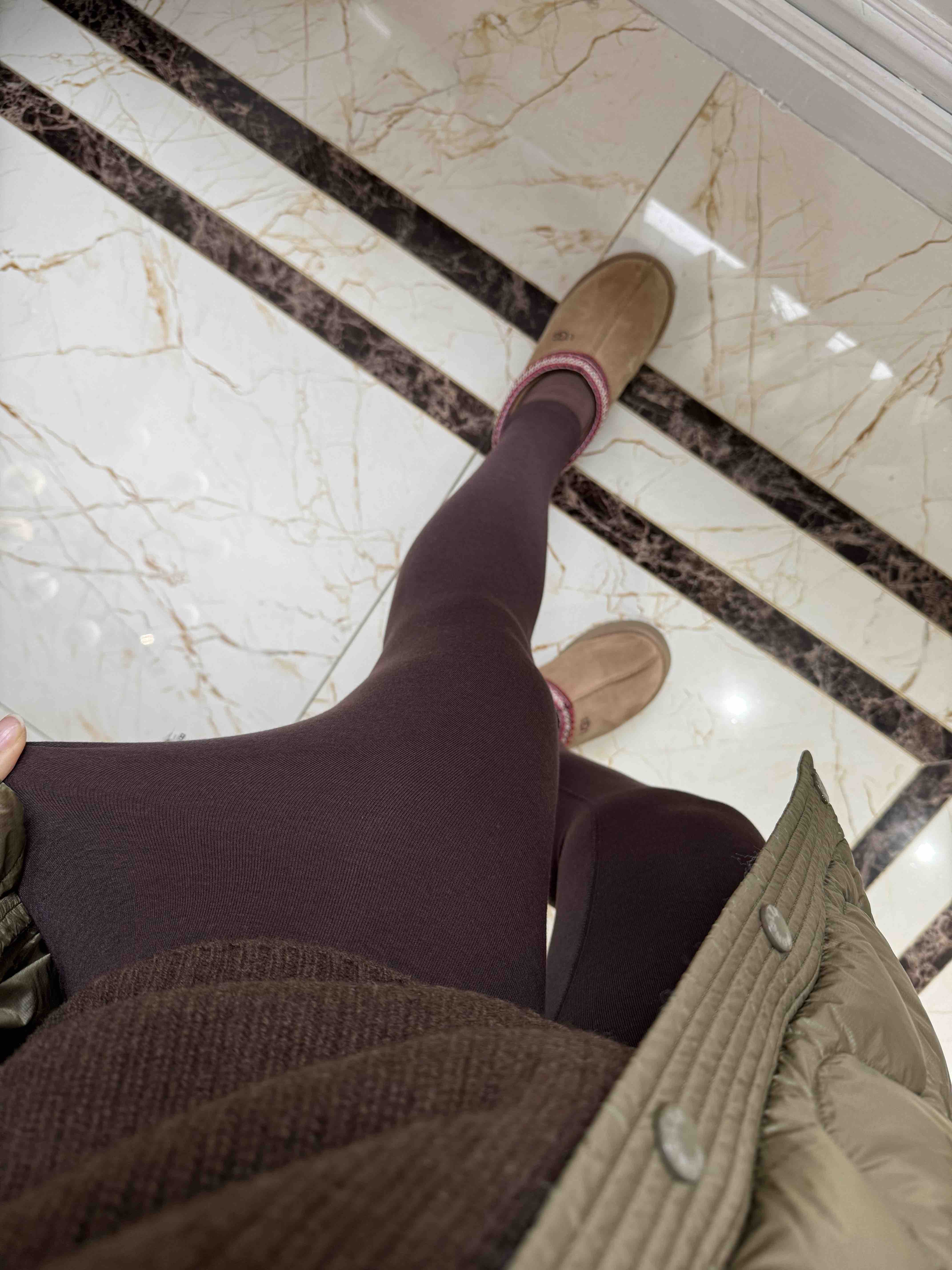 1⃣咖棕色实拍,美拉德色系,都可以搭配,亲肤软糯棉柔超弹力,真的跟外面牛奶绒德绒,天壤之别。这就是原面料,外层光洁,内里亲肤保暖,中高腰设计可以显出腰线,有相当好的收腹提臀效果。而且裆部没有尴尬线。
