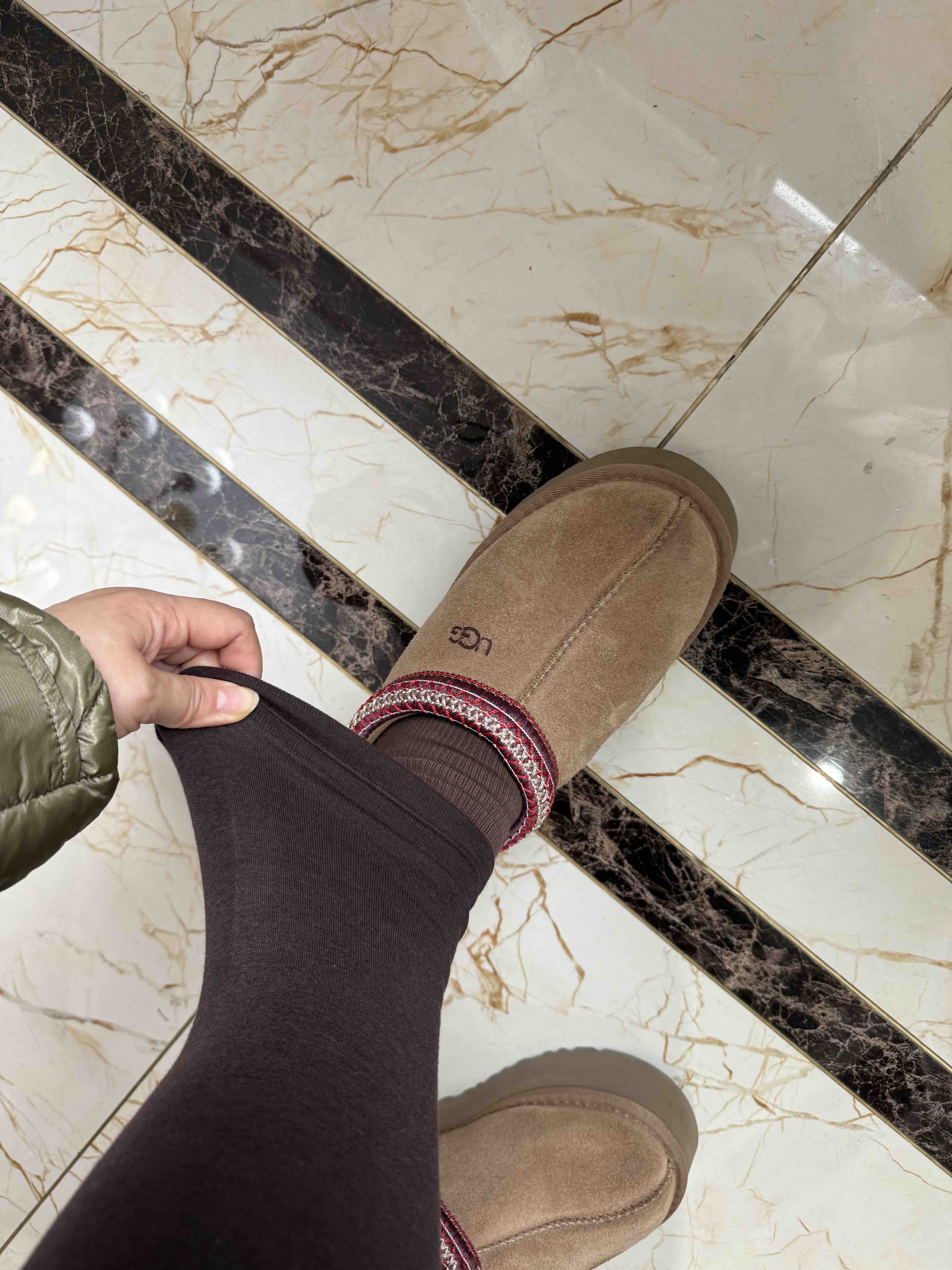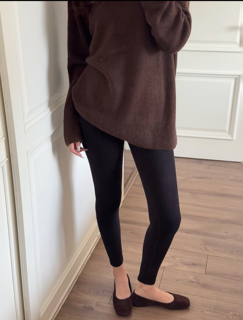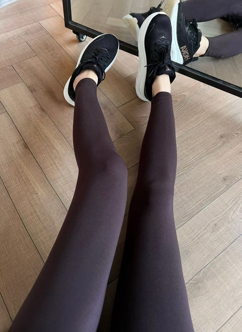 1⃣咖棕色实拍,美拉德色系,都可以搭配,亲肤软糯棉柔超弹力,真的跟外面牛奶绒德绒,天壤之别。这就是原面料,外层光洁,内里亲肤保暖,中高腰设计可以显出腰线,有相当好的收腹提臀效果。而且裆部没有尴尬线。