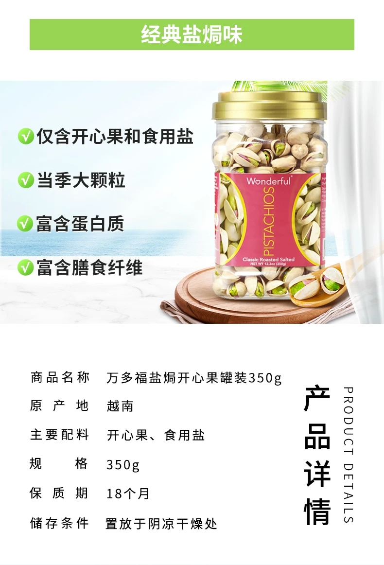 万多福经典盐焗味开心果350g/052243 年货坚果罐装