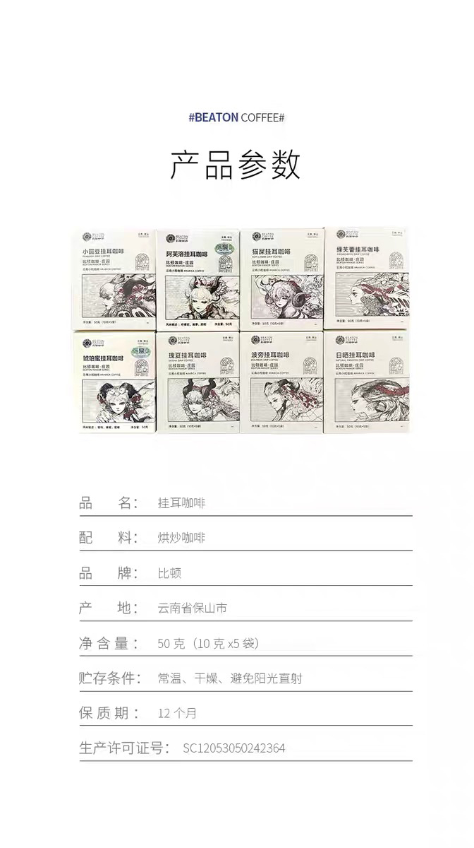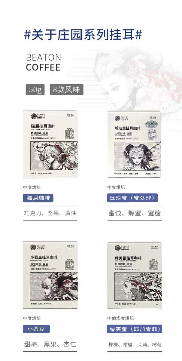 比顿庄园系列单品挂耳咖啡 波旁小圆豆 阿芙洛挂耳10克*5袋/盒