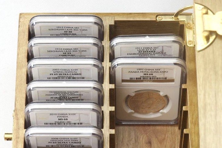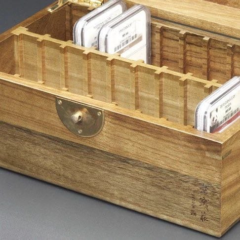 NGC贰盎司评级币收藏樟木保护箱,外箱纯A级香樟木,箱子尺寸:长225mm*宽144mm*高112mm,盒内钱币卡槽厚16.5mm,槽宽61.5mm,箱子里外光洁上透明漆,做工精巧。盖与箱体上下四角各加有四个榫头,合页与锁搭采用纯铜材质,可适用于NGC壹盎司加厚、贰盎司评级币(木箱评级币盒为壹盎司作为参照示范,商品报价不含塑料盒) ,整体美观,大方,高档,永久耐用,不易变型,香气扑鼻。