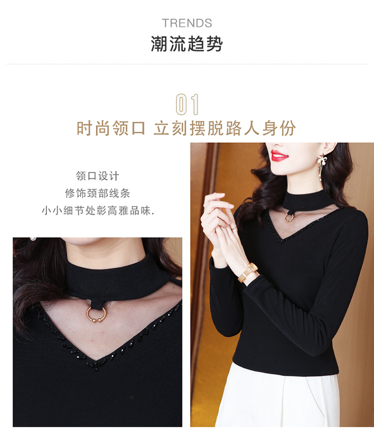 立领镂空透视网纱长袖加绒打底衫KQL-B40N2311