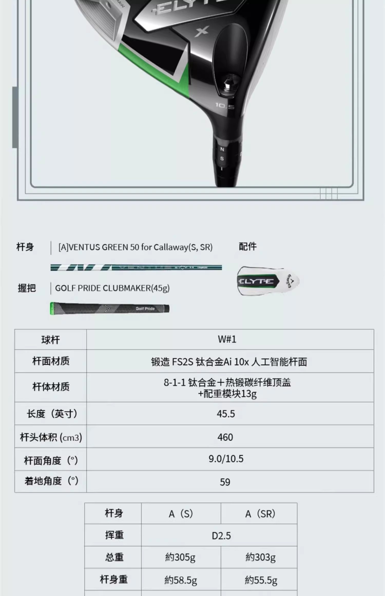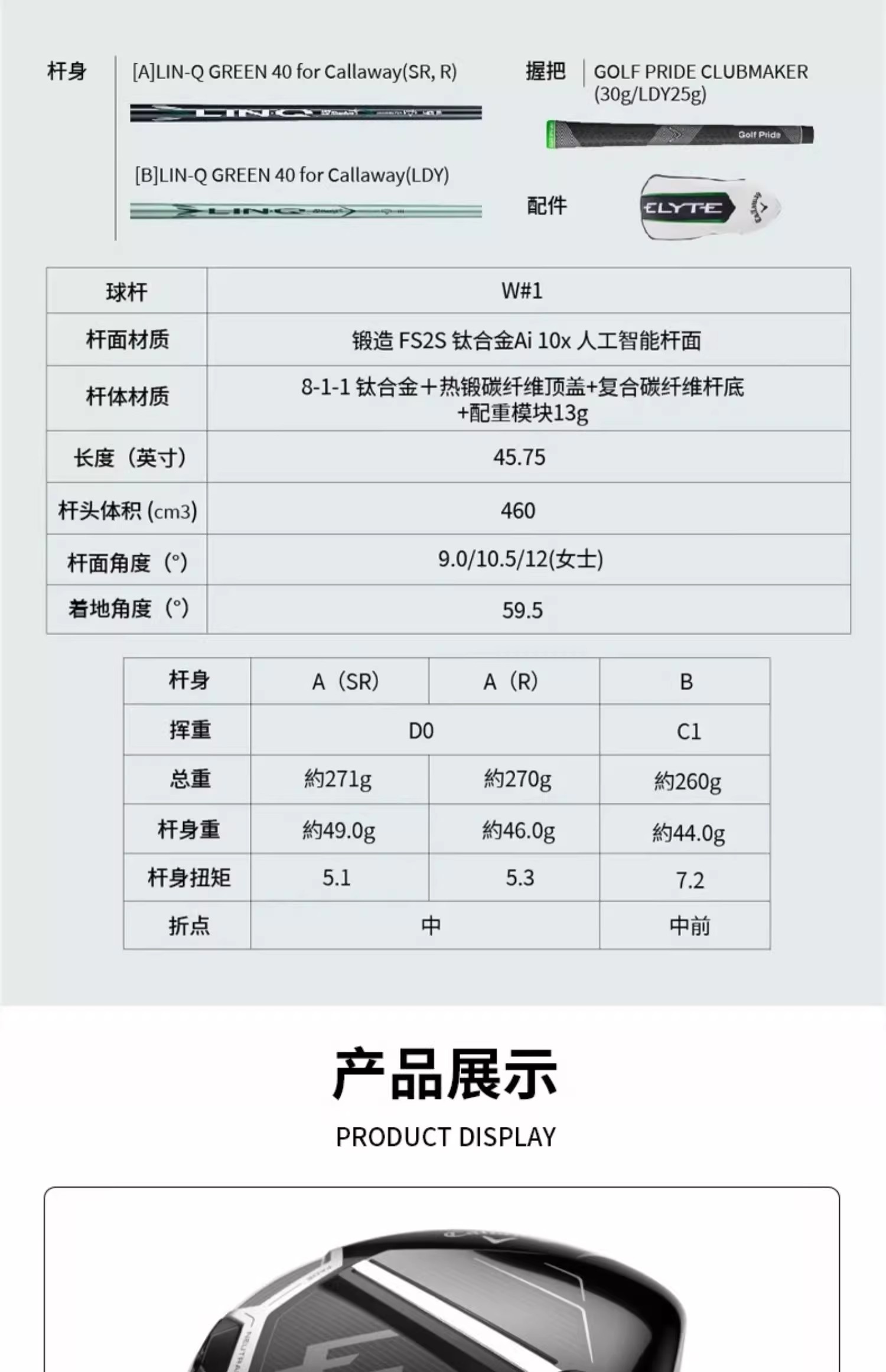 25年新款Callaway卡拉威ELYTE铱雳发球木高尔夫球杆远距一号木