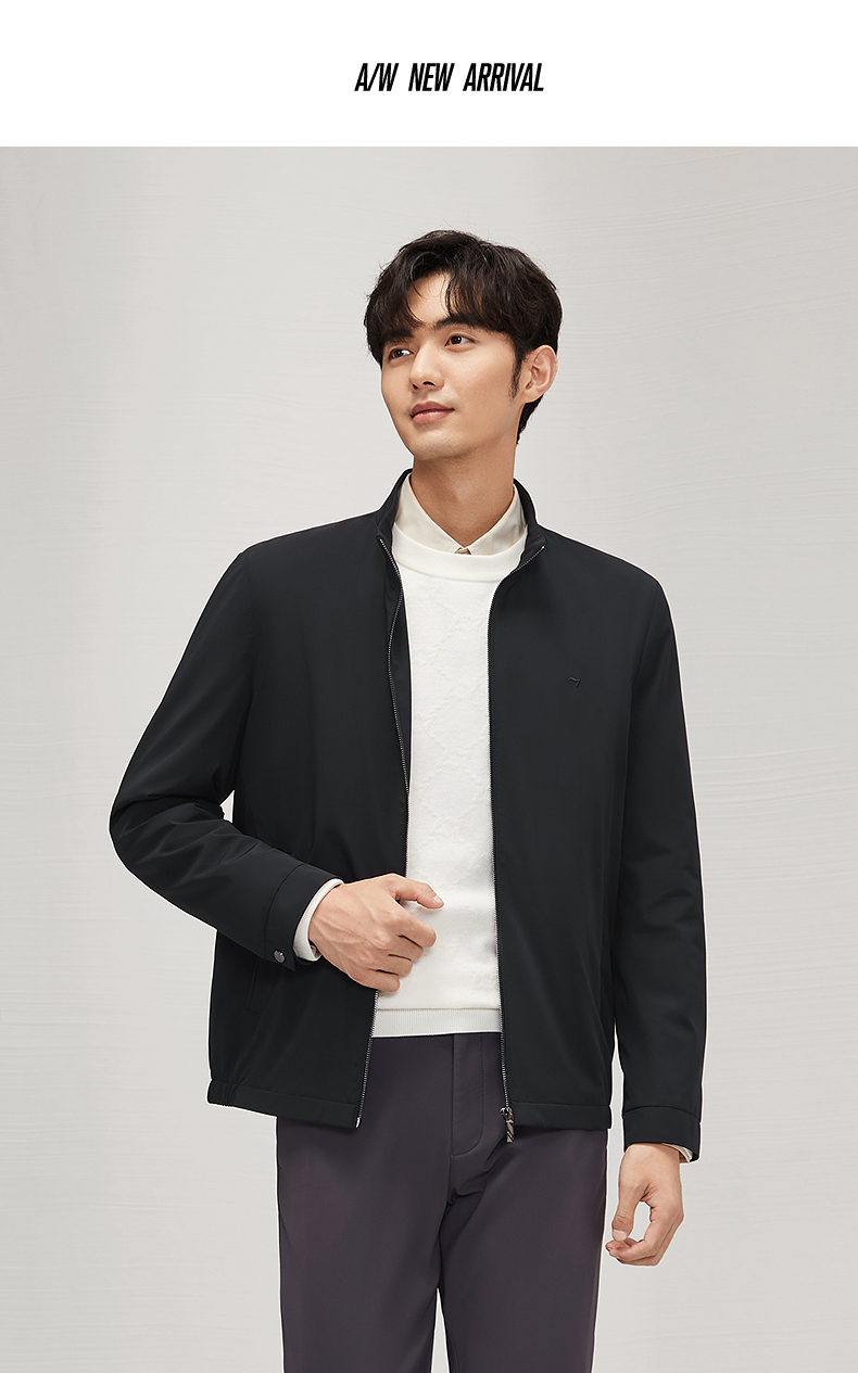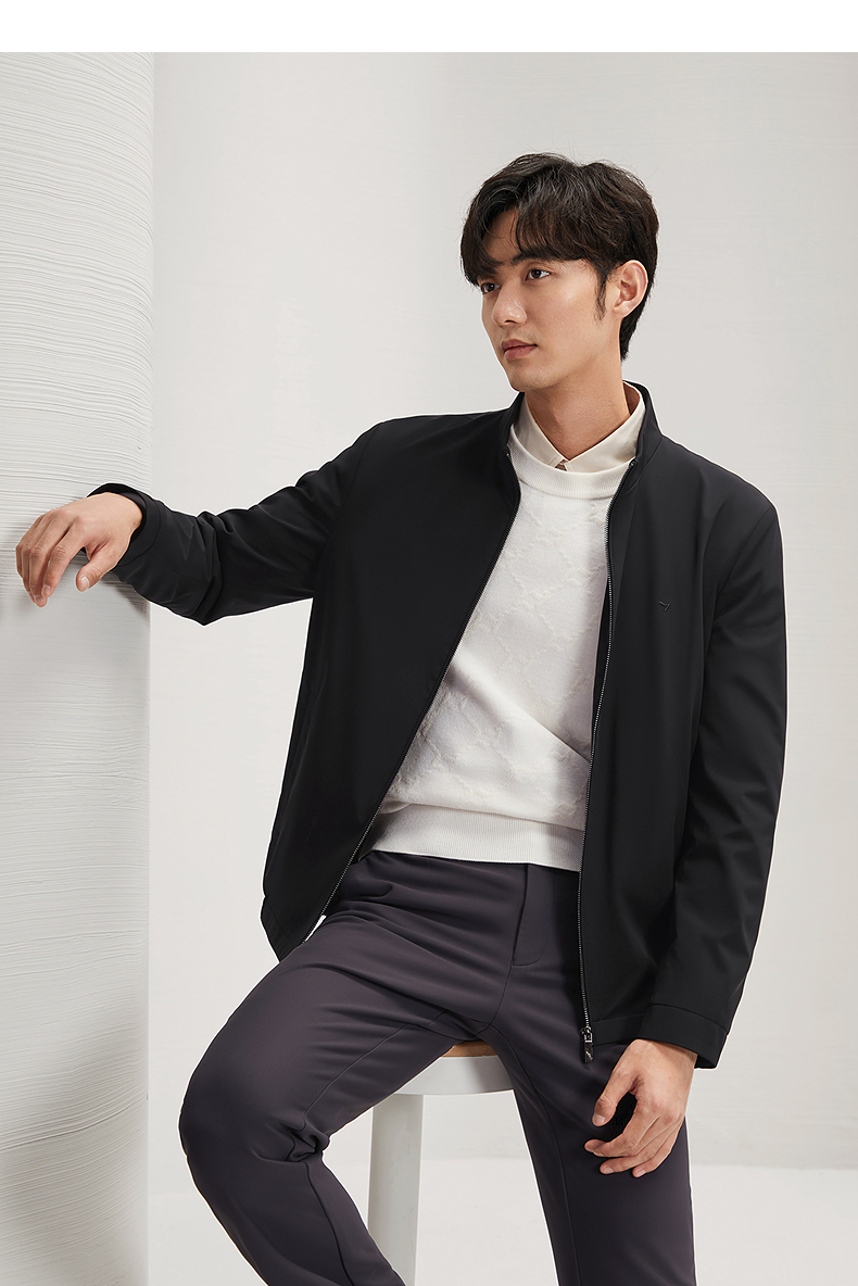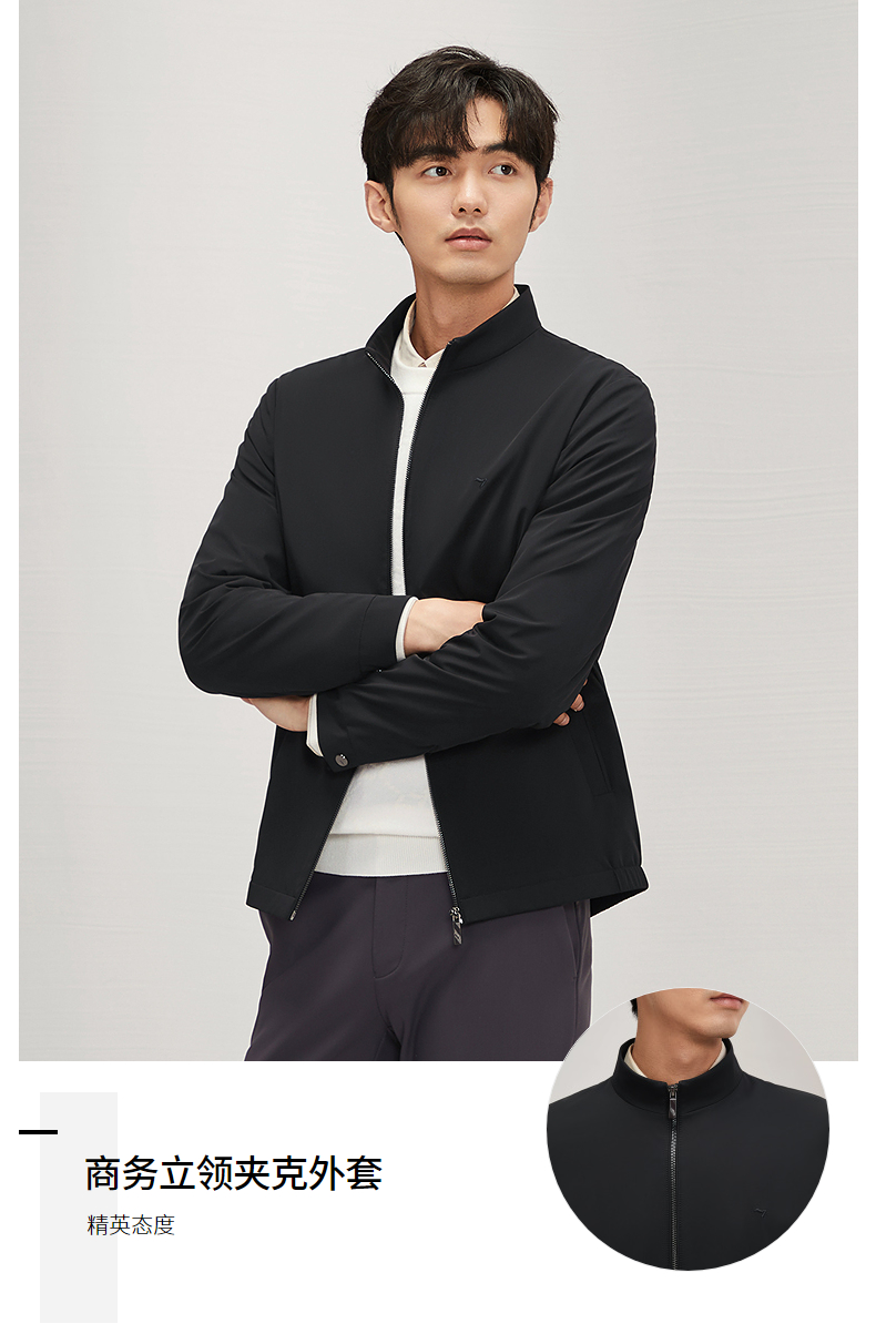 柒牌男装立领夹克2024秋冬新款商务百搭干部装男士休闲茄克衫外套 127K70760