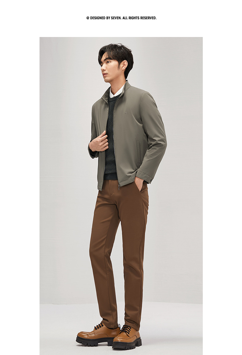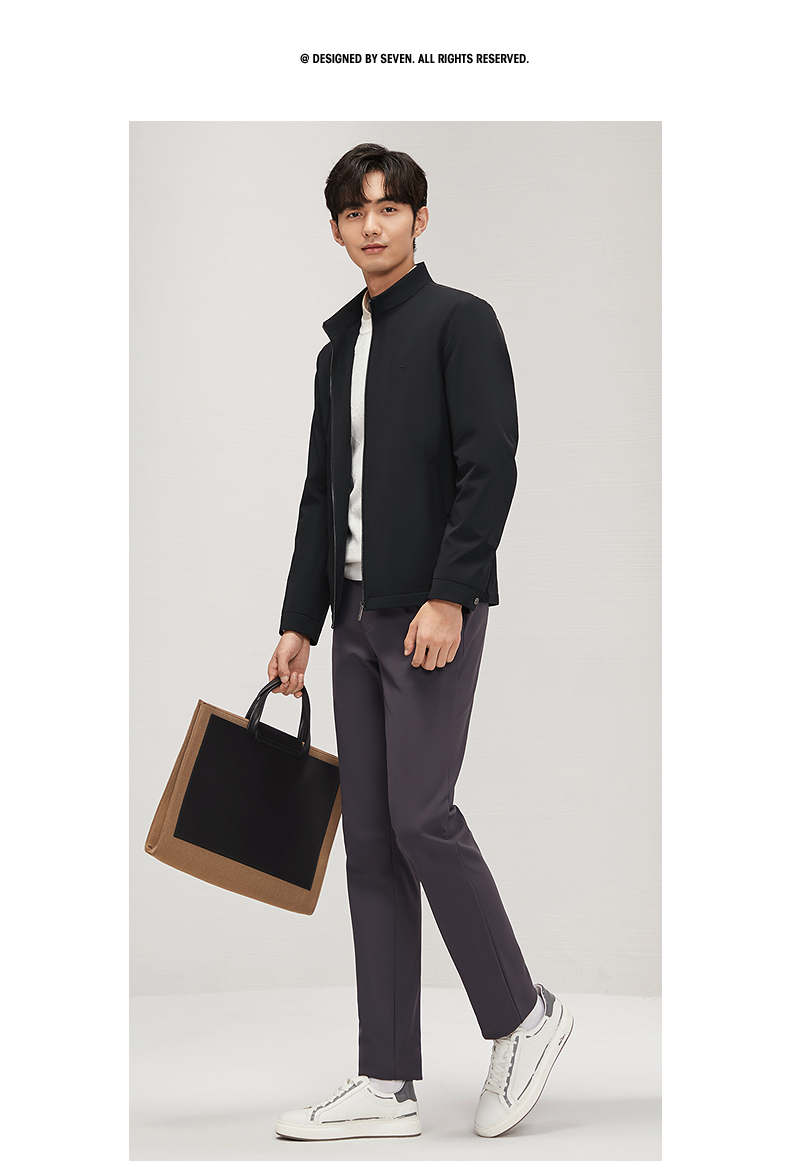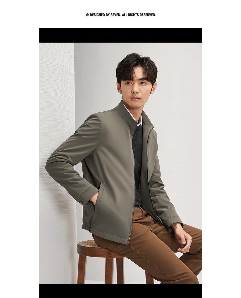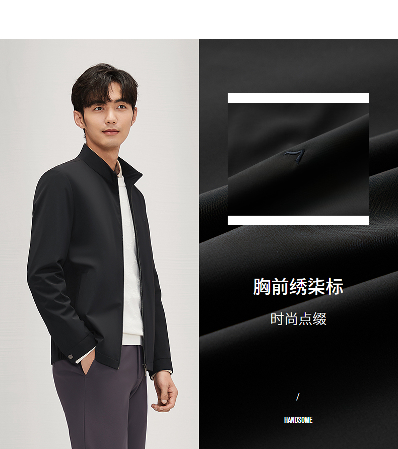 柒牌男装立领夹克2024秋冬新款商务百搭干部装男士休闲茄克衫外套 127K70760
