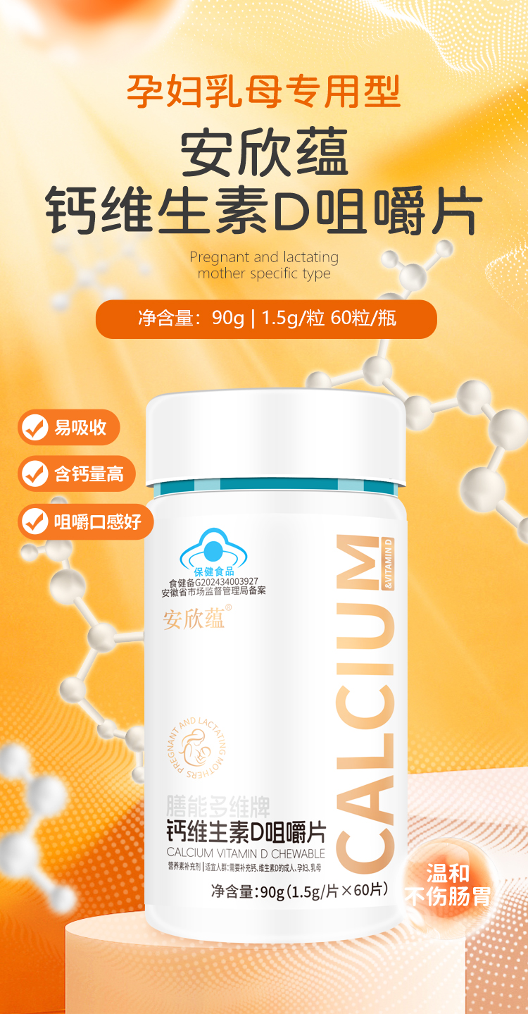 安欣蕴钙咀嚼片60片装 (买三送一,买五送二)