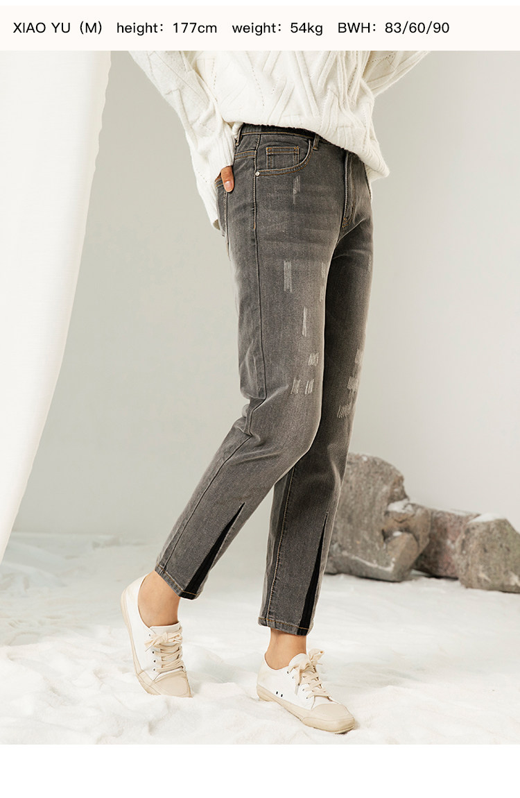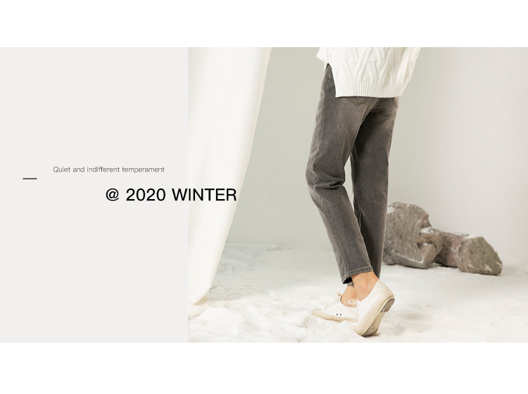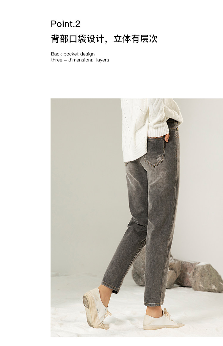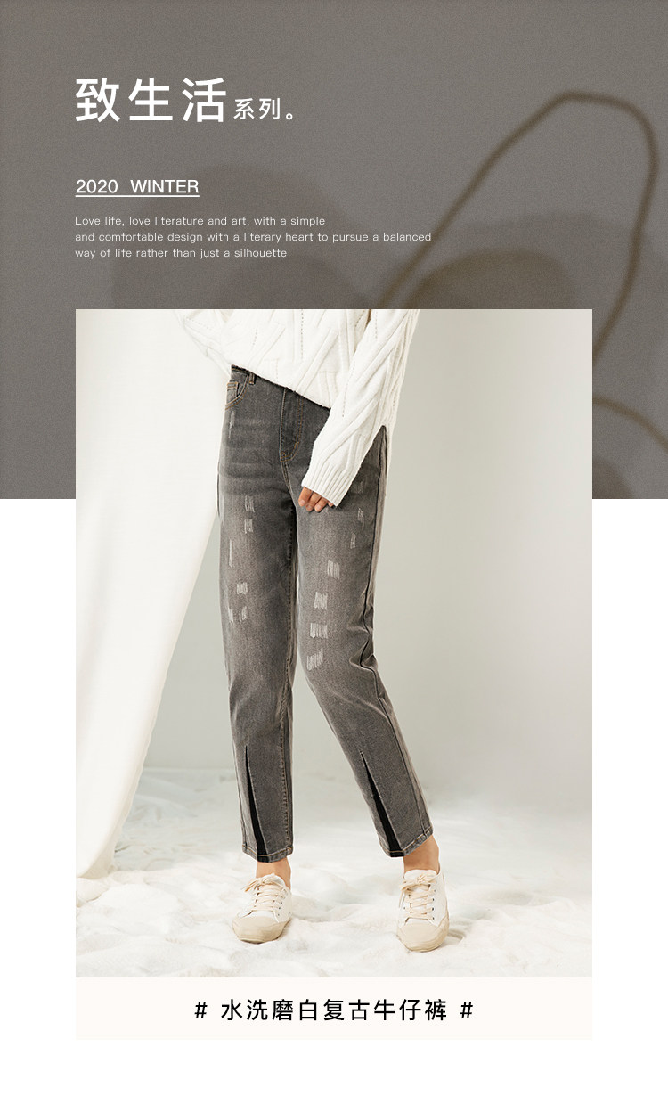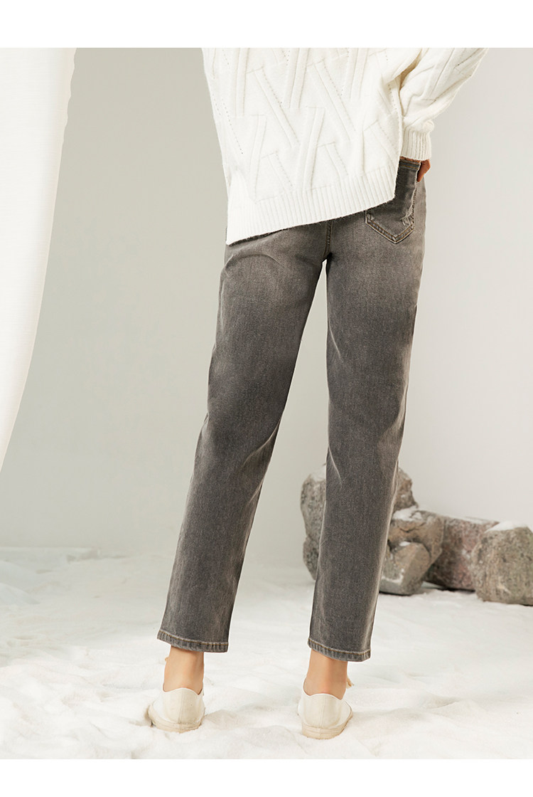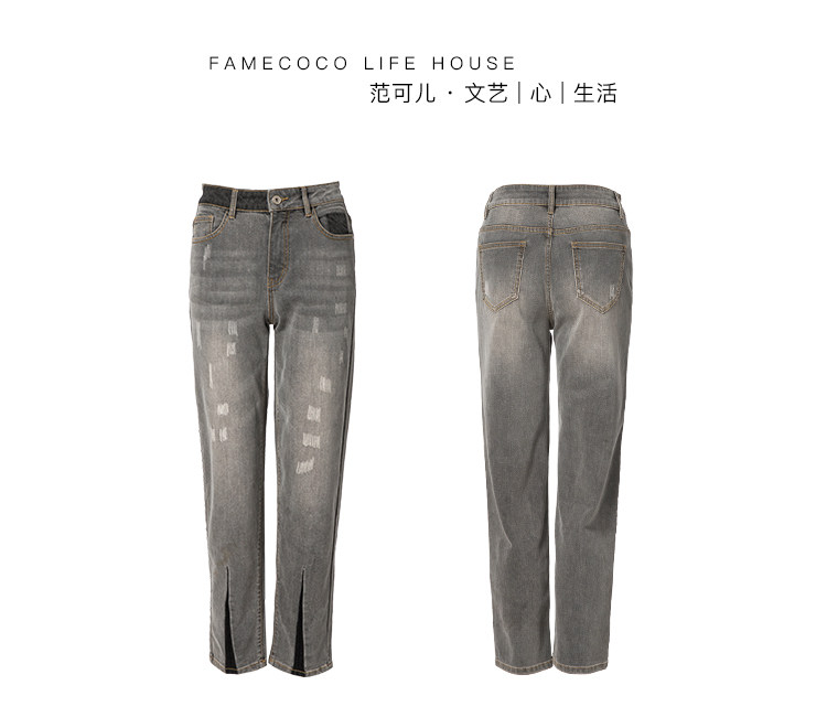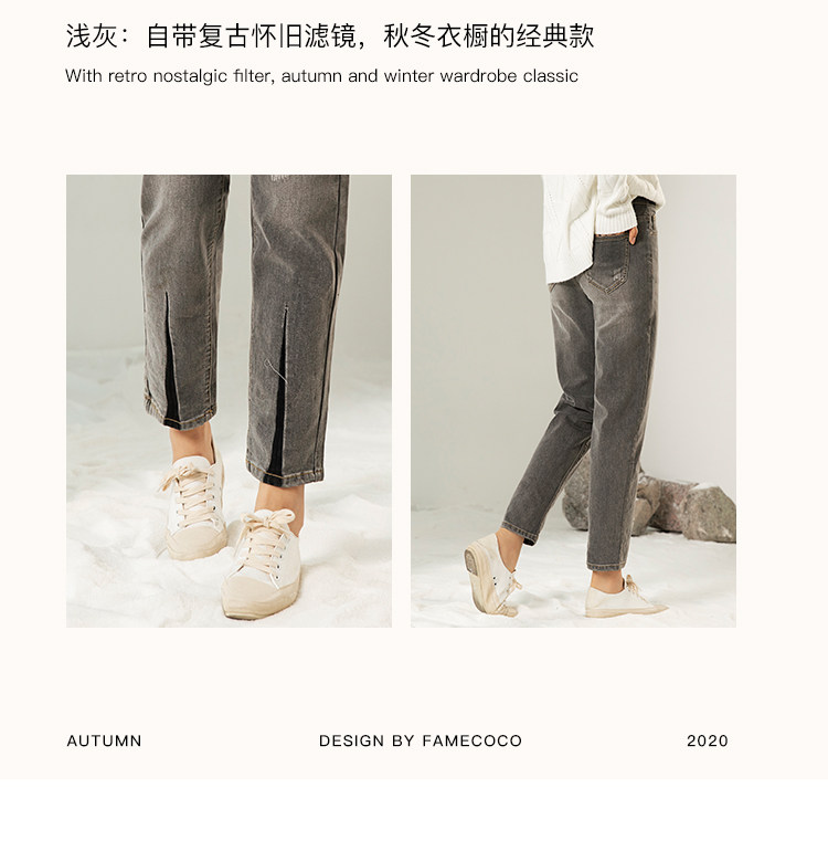 Famecoco范可儿直筒牛仔裤女秋冬季宽松烟灰色长裤F208GA010