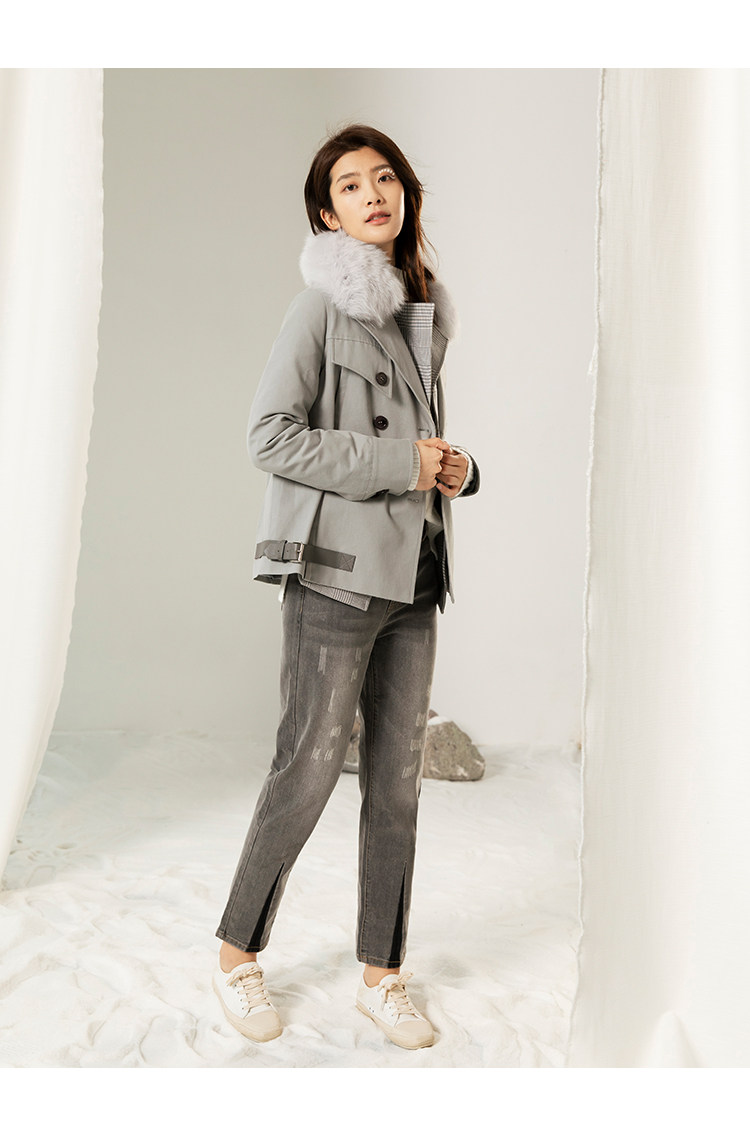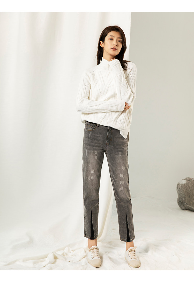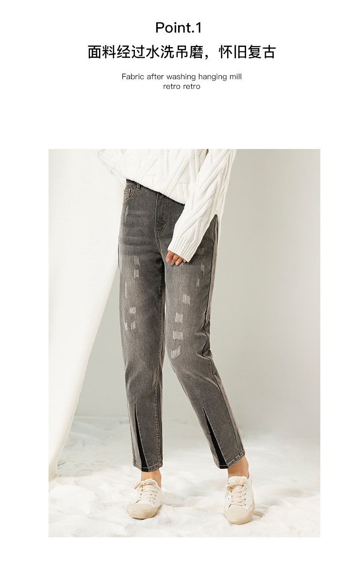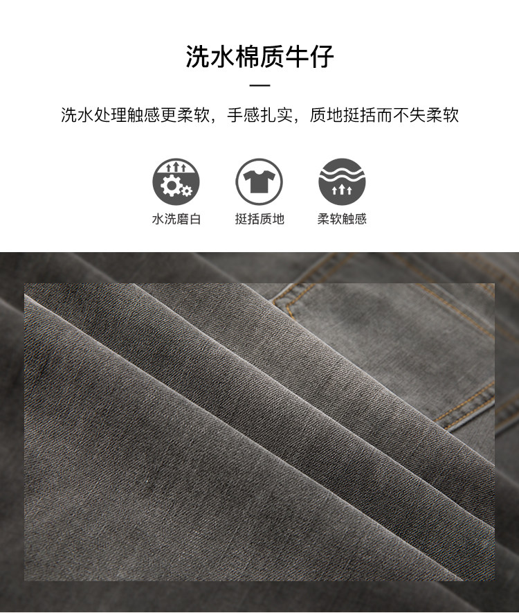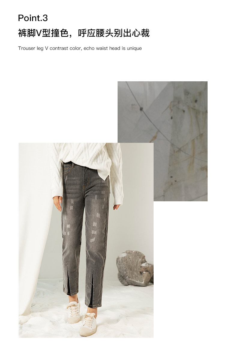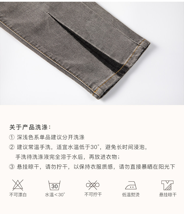 Famecoco范可儿直筒牛仔裤女秋冬季宽松烟灰色长裤F208GA010