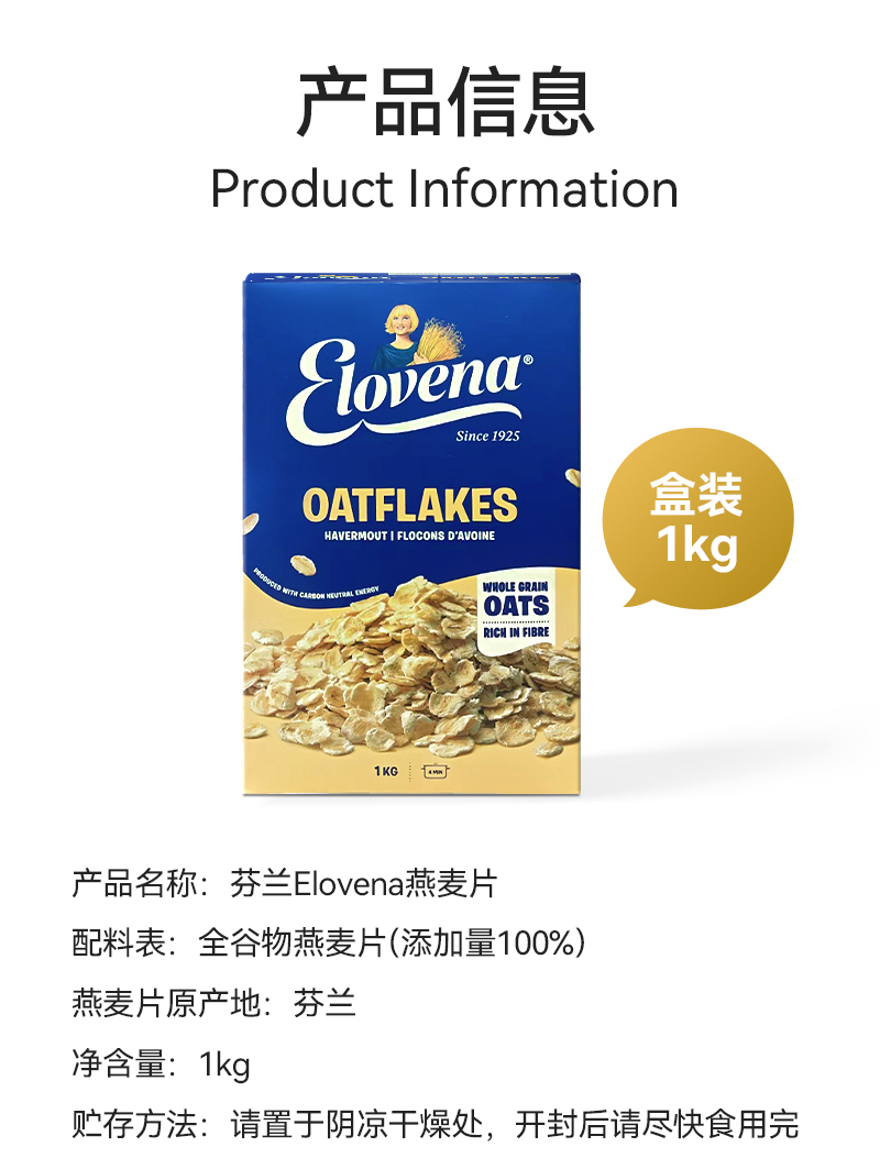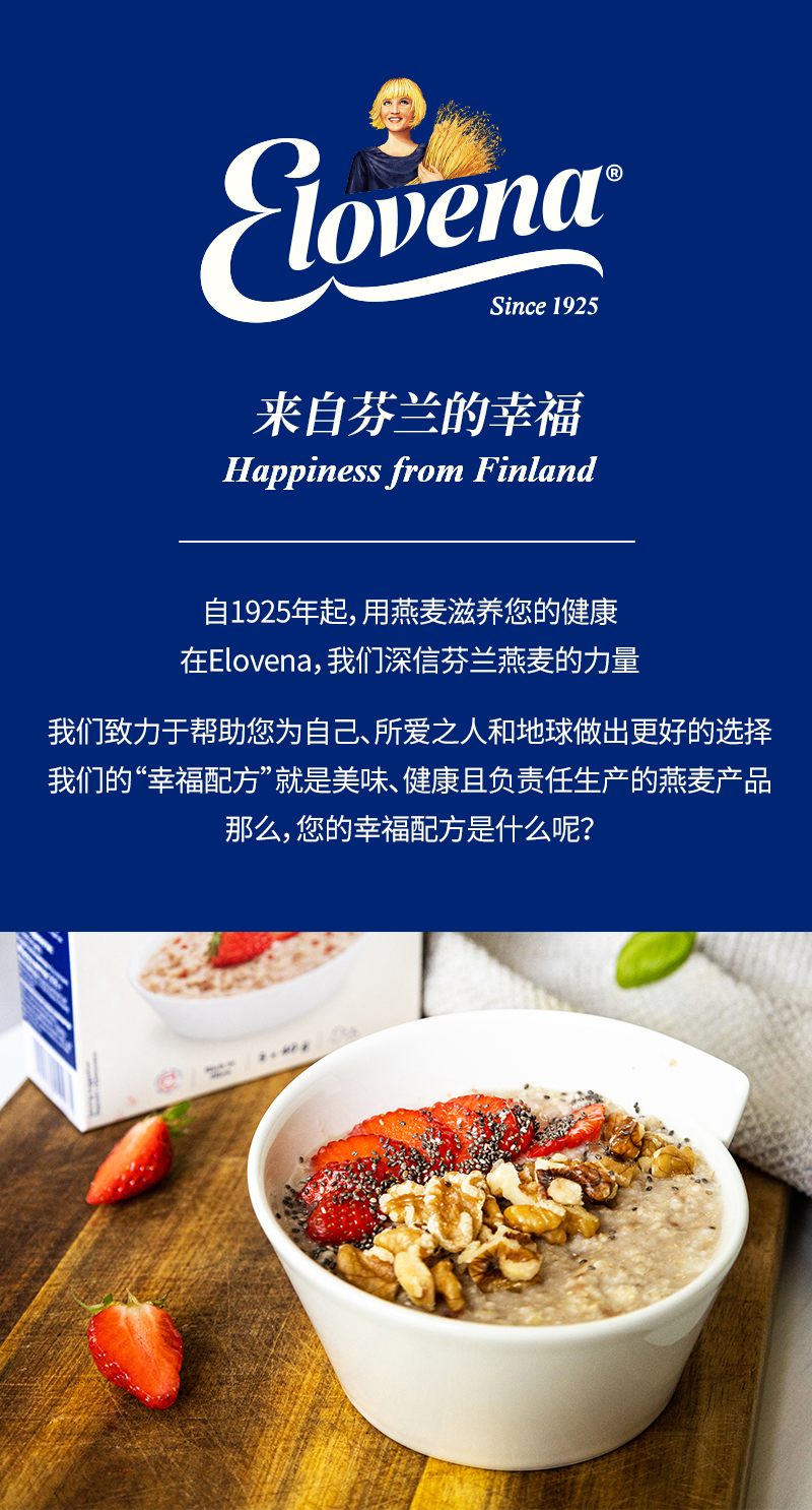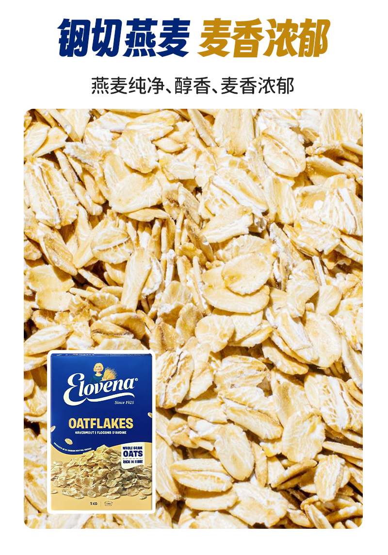 【芬兰原装进口】百年国民级品牌Elovena燕麦 刚切粗粮 富含膳食纤维、β-葡聚糖 更友好的升糖 黄金种植区从田间到成品纯净供应