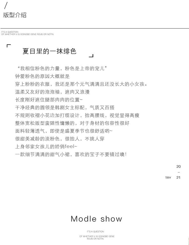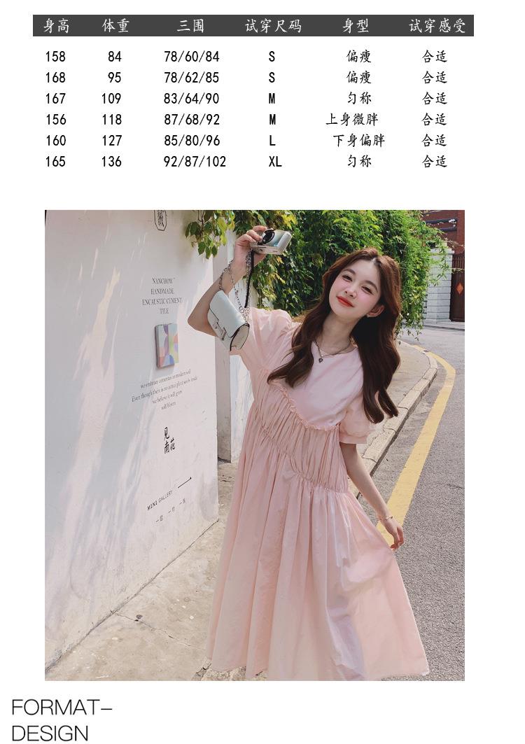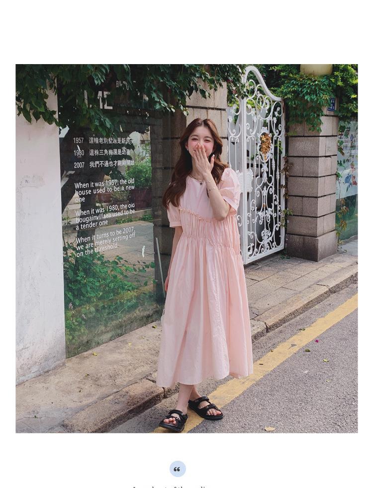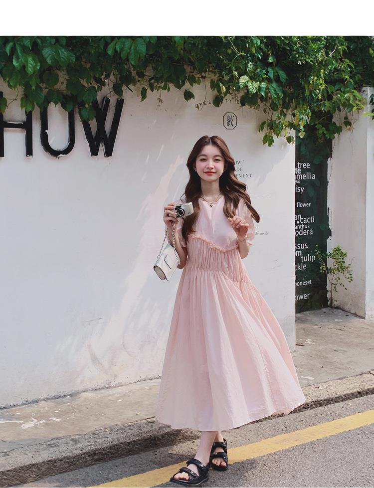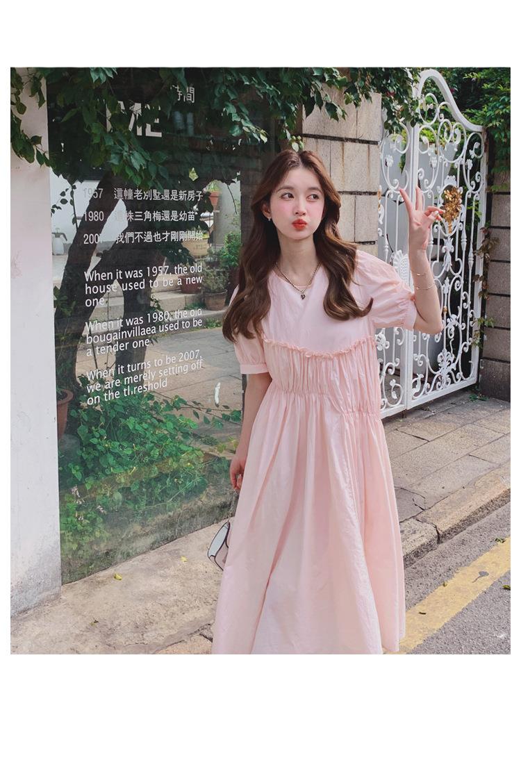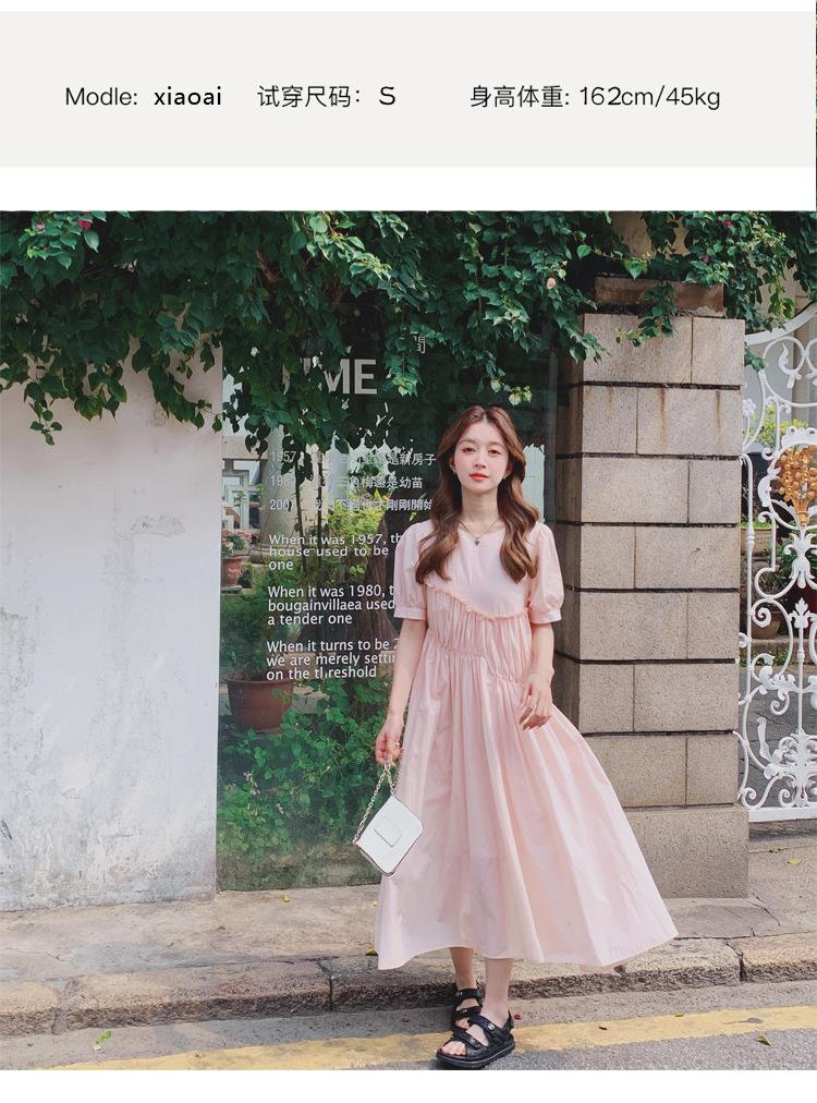 实拍元气少女感减龄泡泡袖收褶小花边甜美风显瘦温柔淡粉色连衣裙