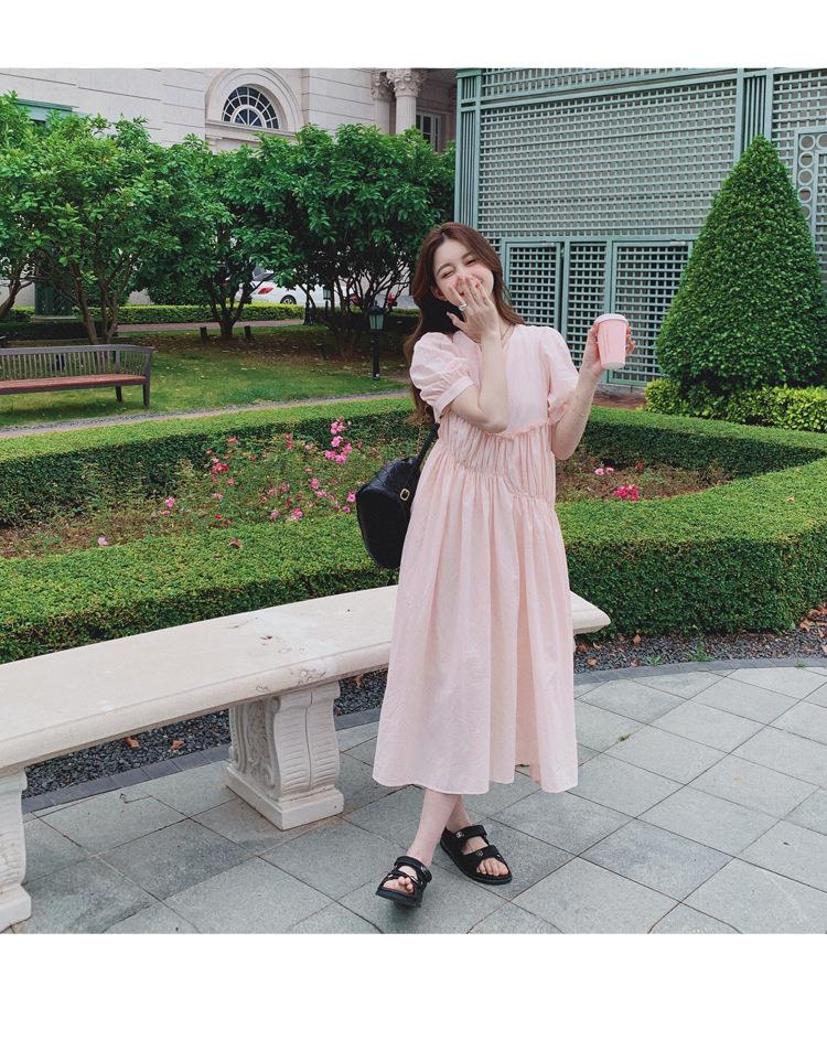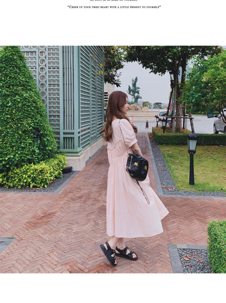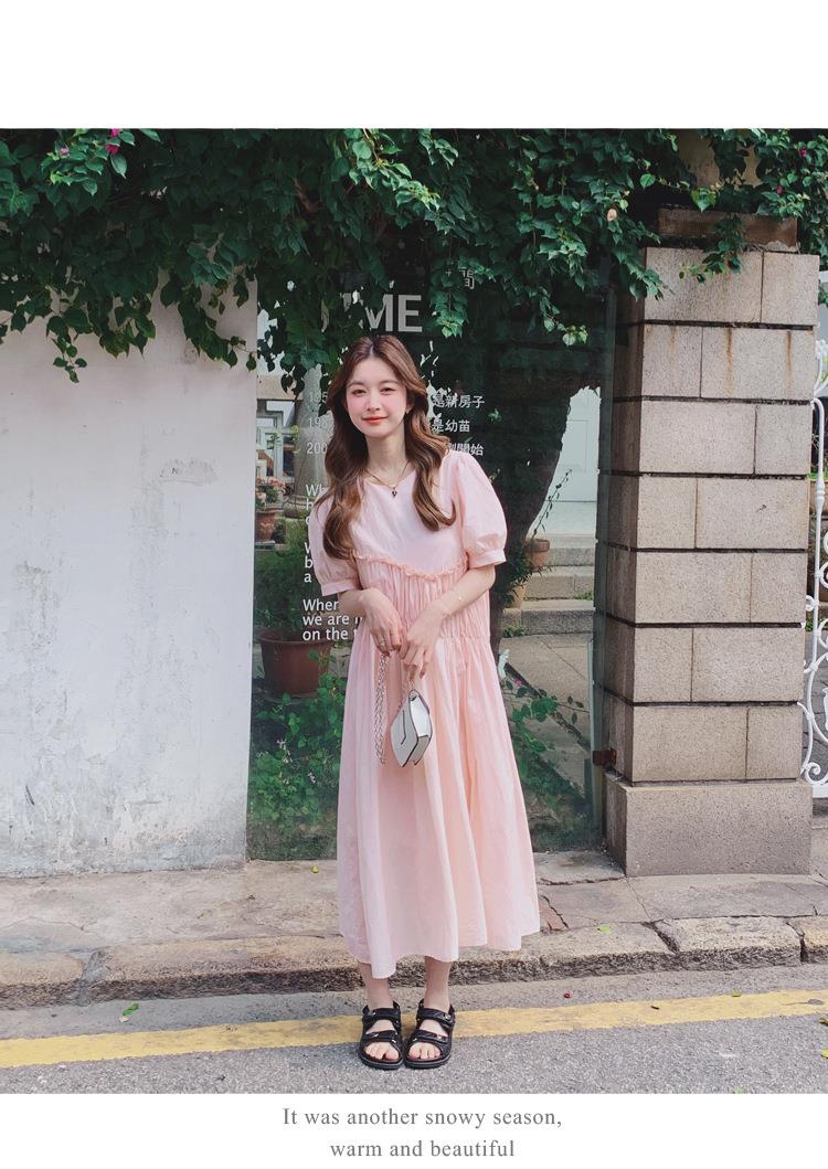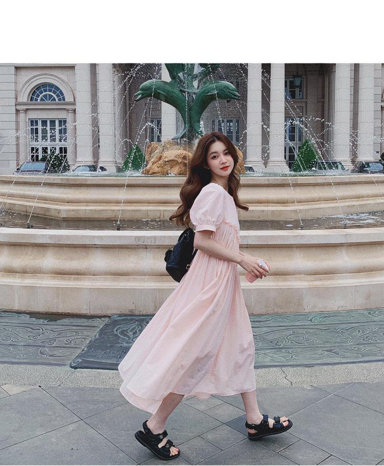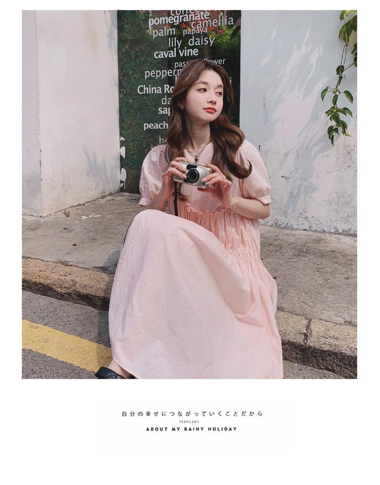 实拍元气少女感减龄泡泡袖收褶小花边甜美风显瘦温柔淡粉色连衣裙
