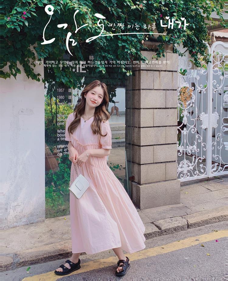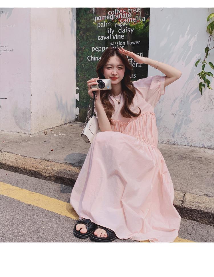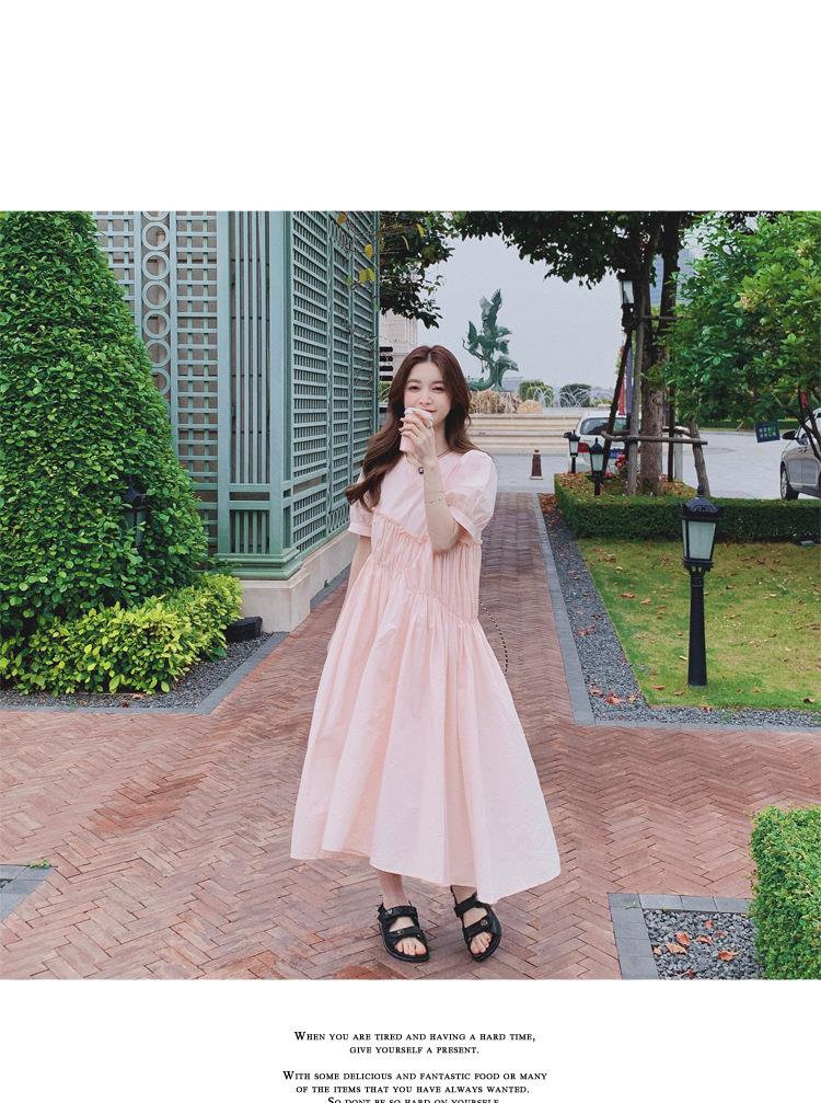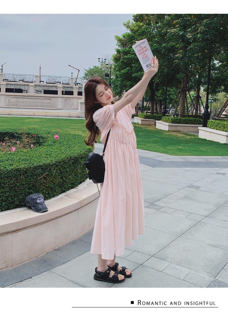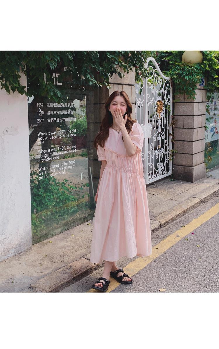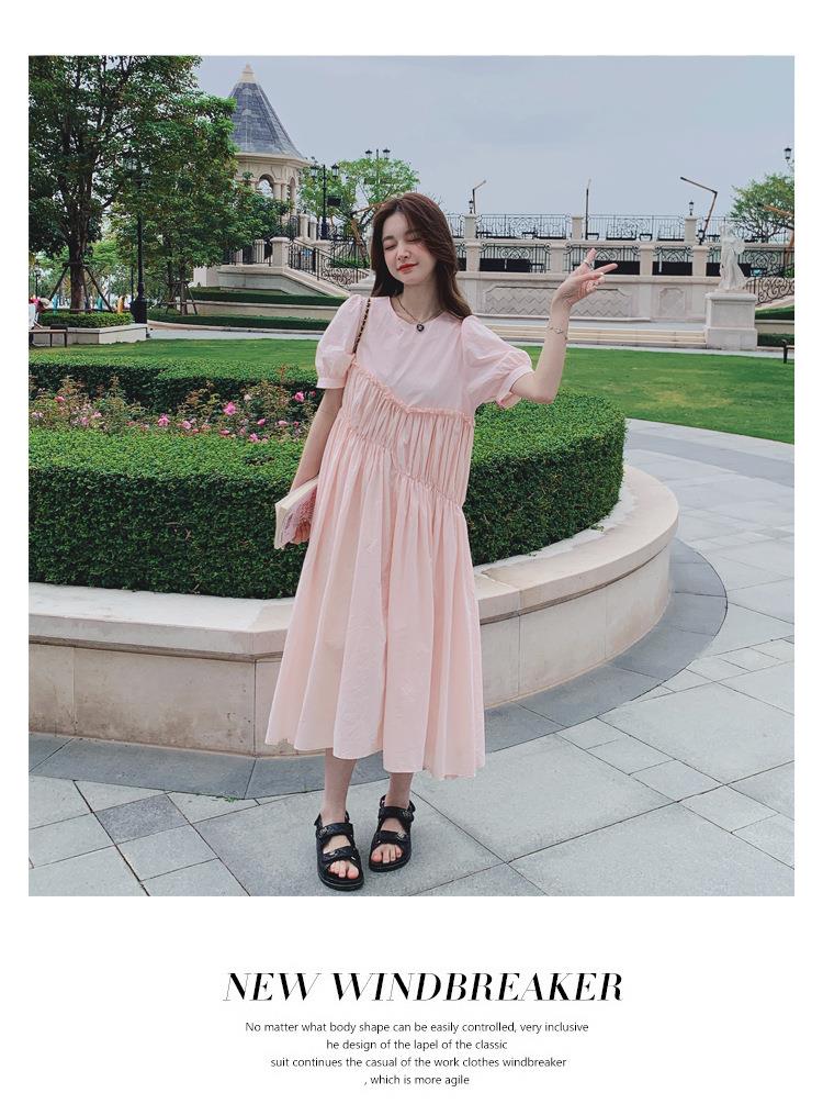 实拍元气少女感减龄泡泡袖收褶小花边甜美风显瘦温柔淡粉色连衣裙