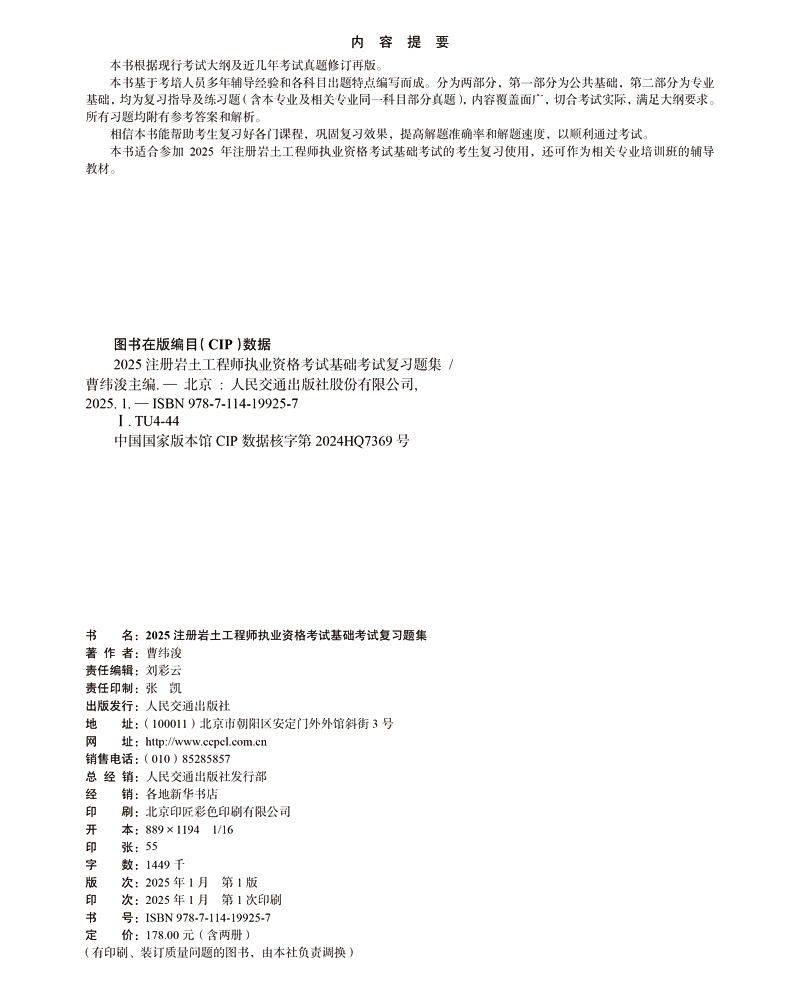 书名:2025注册岩土工程师执业资格考试基础考试复习题集