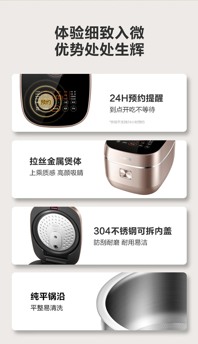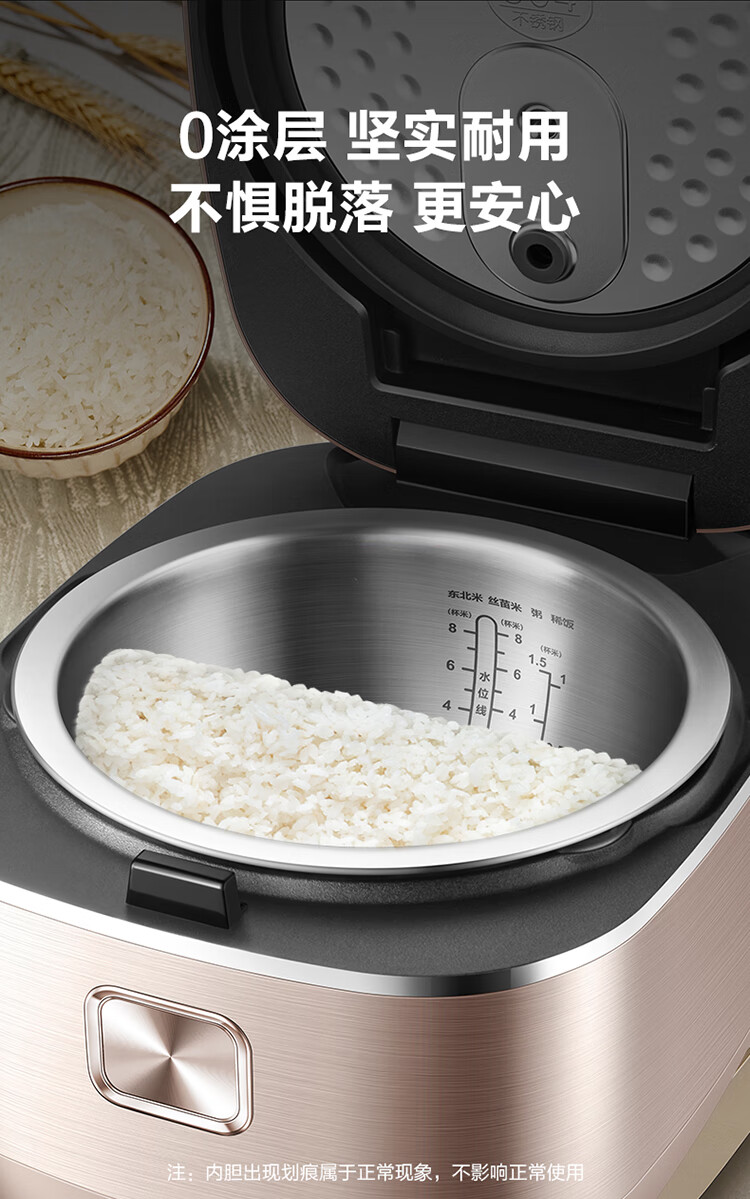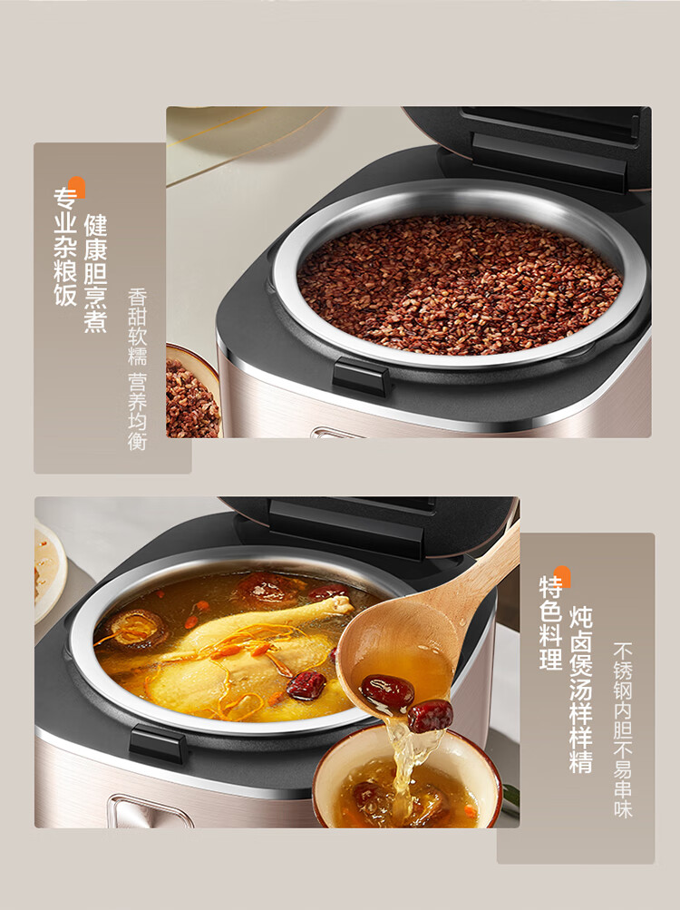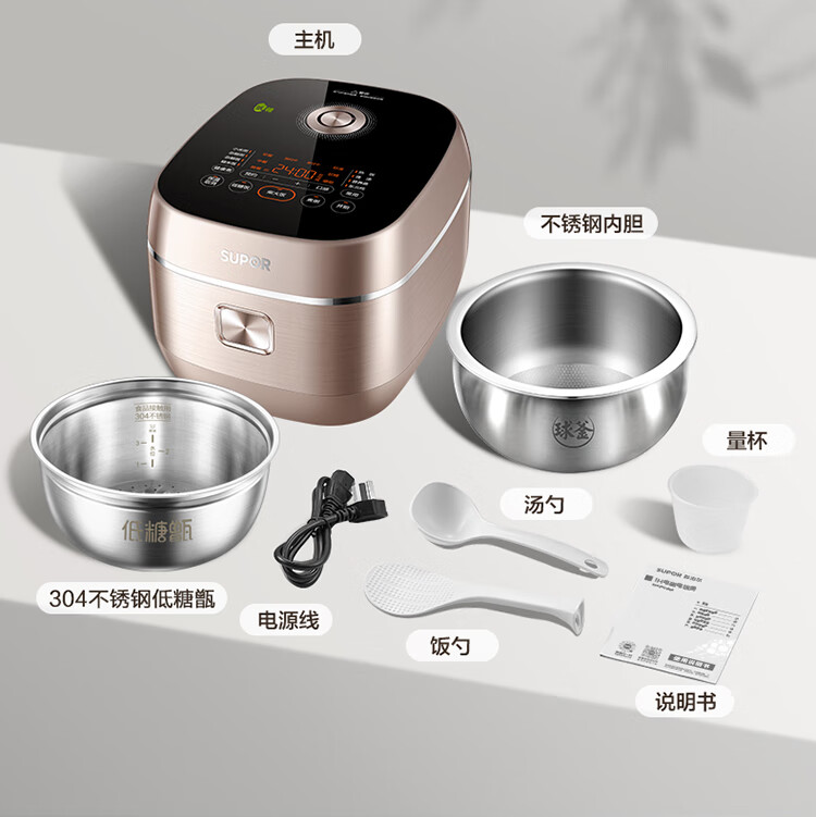 苏泊尔(SUPOR)电饭锅 煮饭锅 低糖电饭煲 4升家用0涂层316L不锈钢内胆 IH加热多功能 SF40HC1904