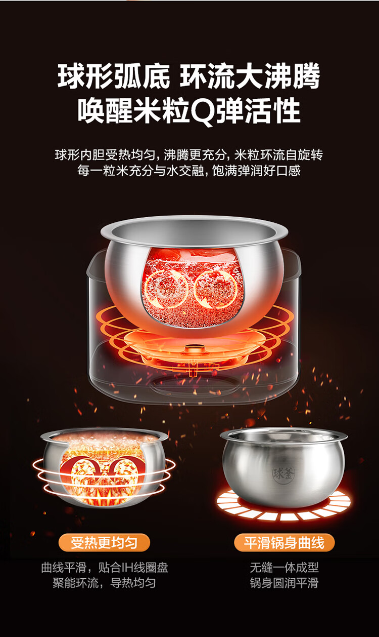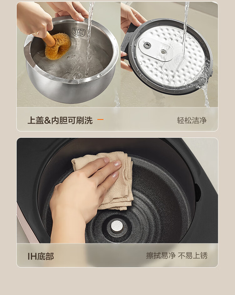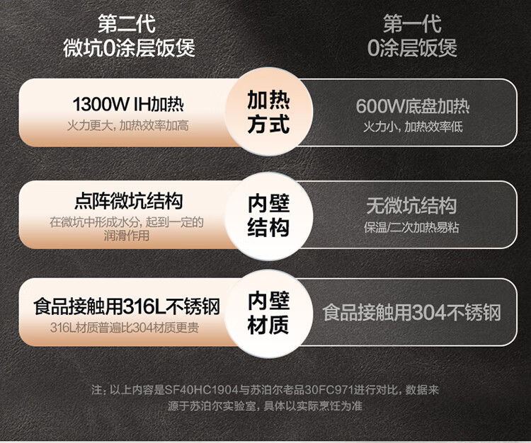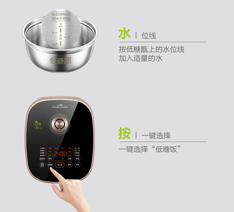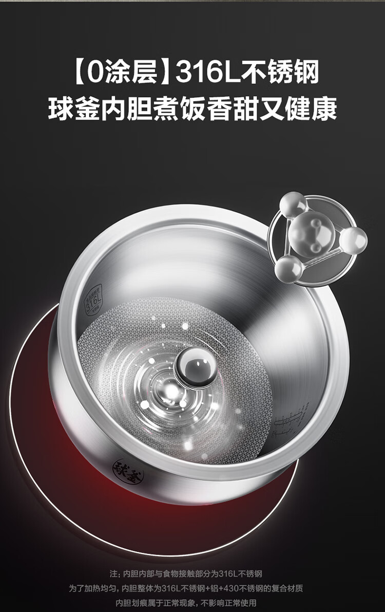 苏泊尔(SUPOR)电饭锅 煮饭锅 低糖电饭煲 4升家用0涂层316L不锈钢内胆 IH加热多功能 SF40HC1904