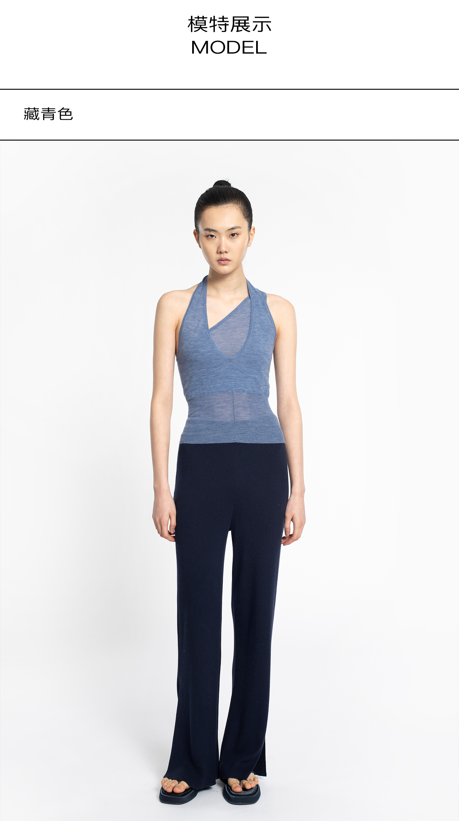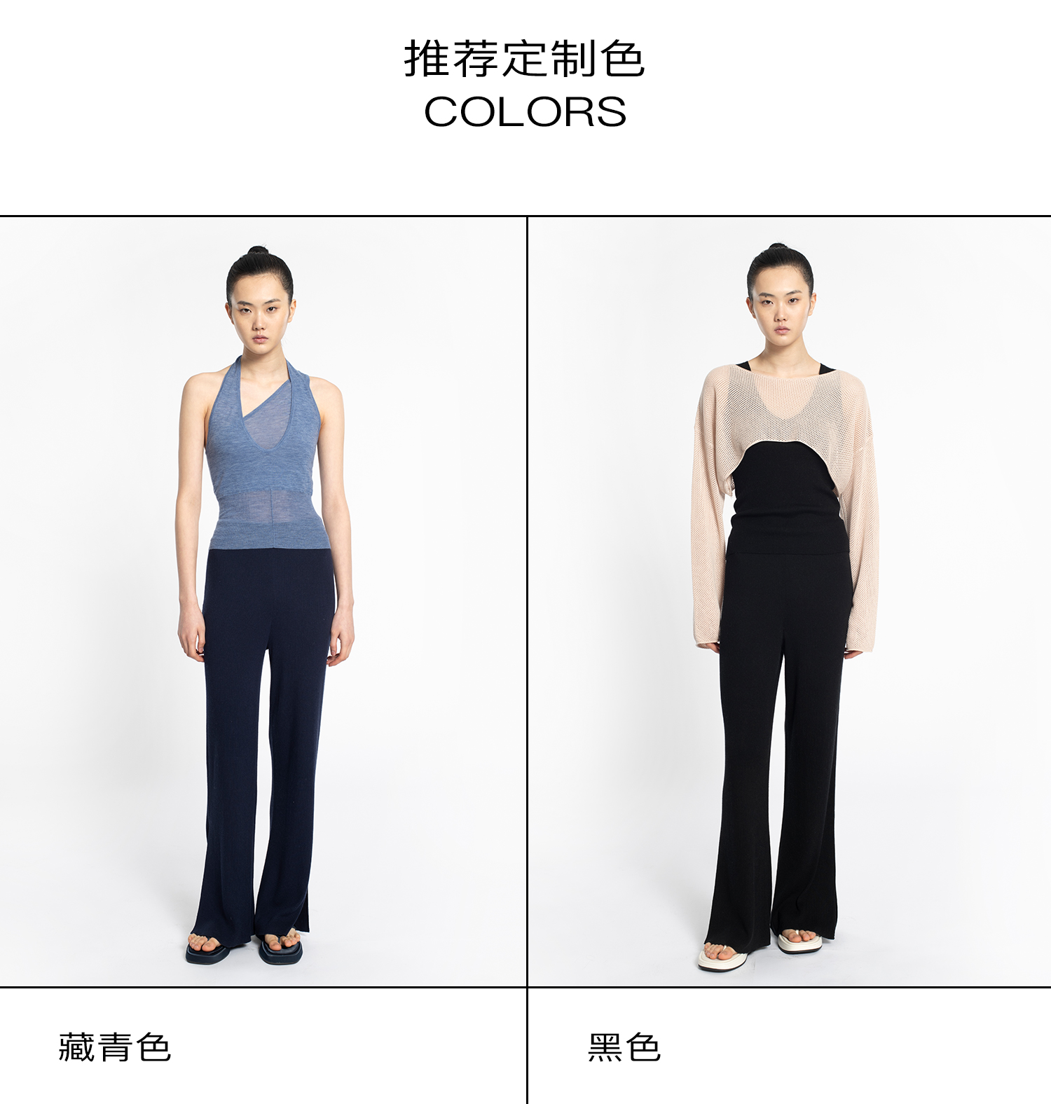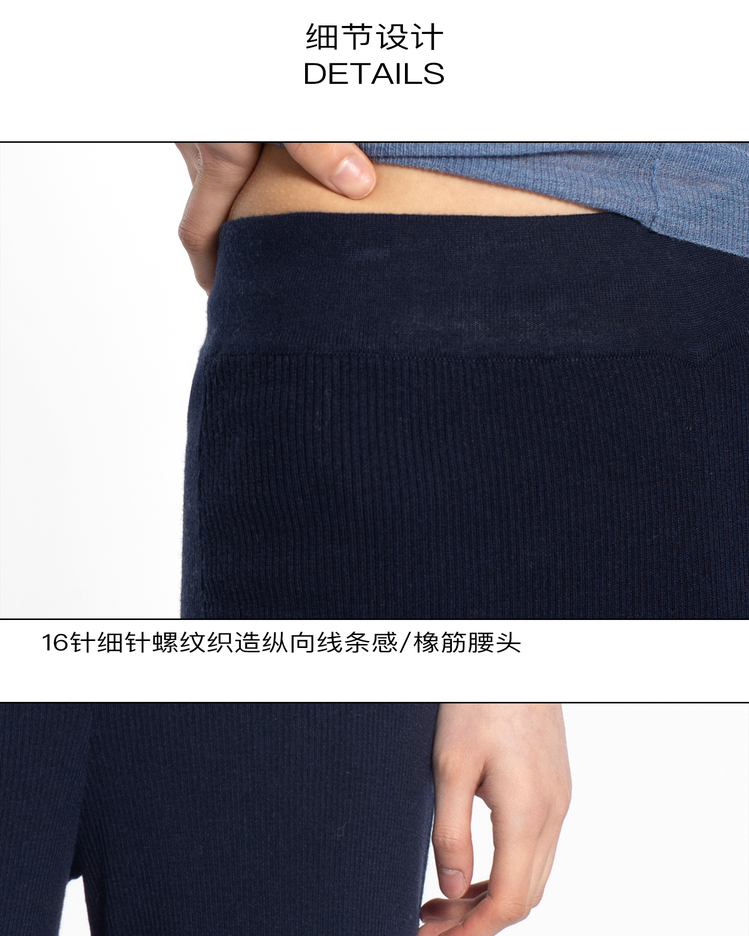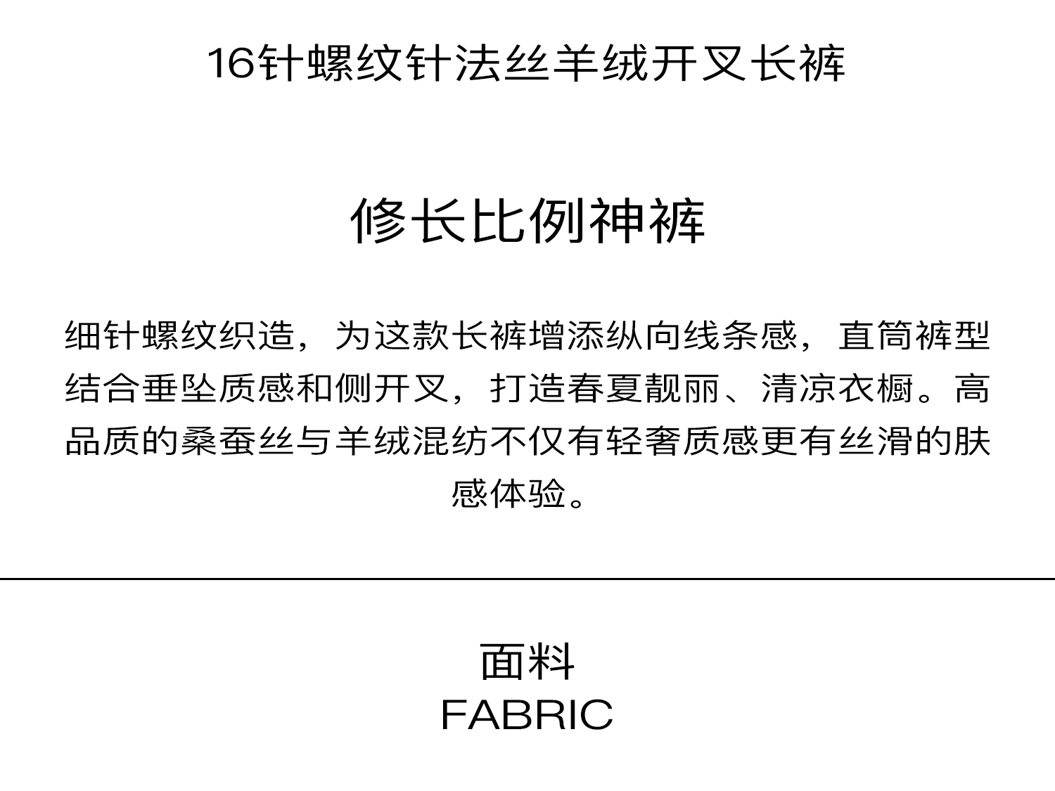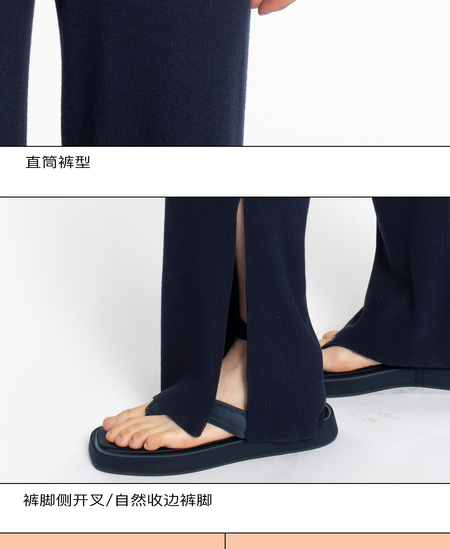 2022新款女士丝羊绒16针单股罗纹直筒开叉长裤
