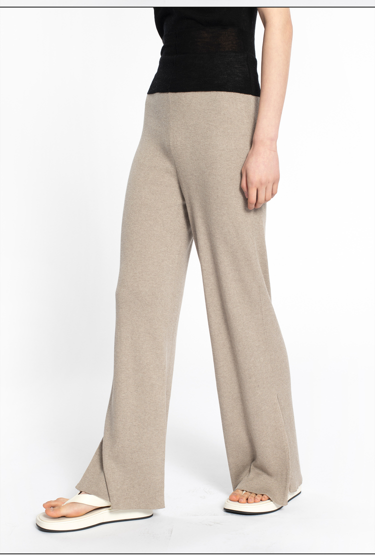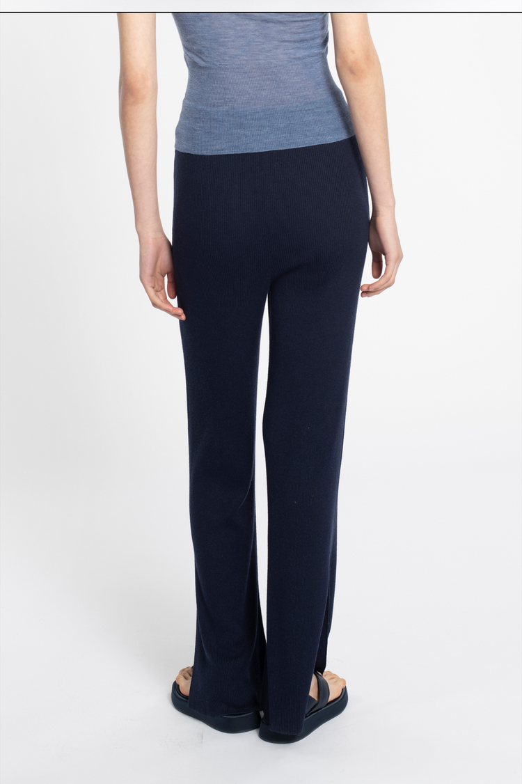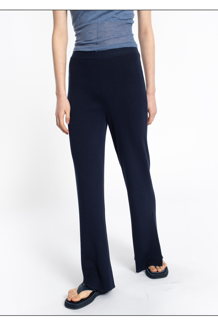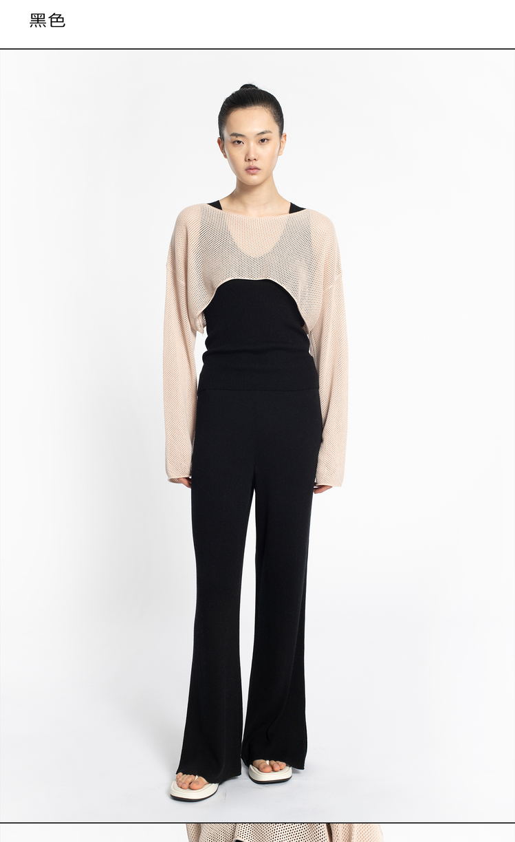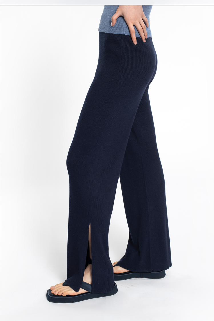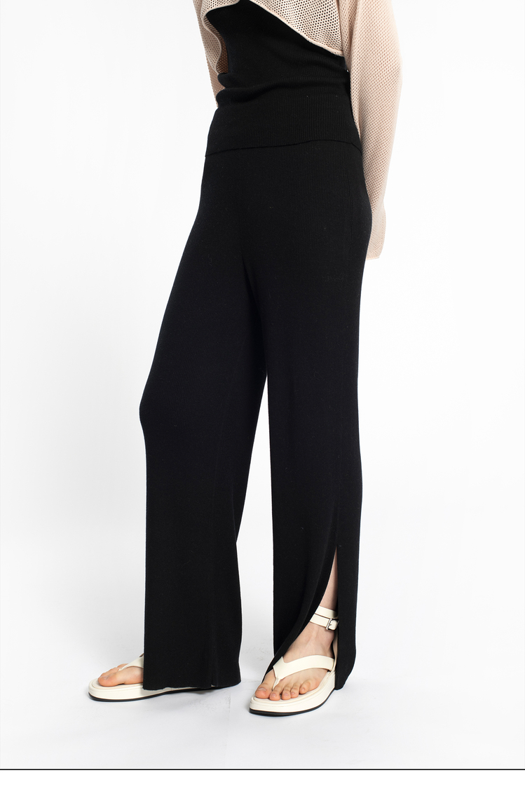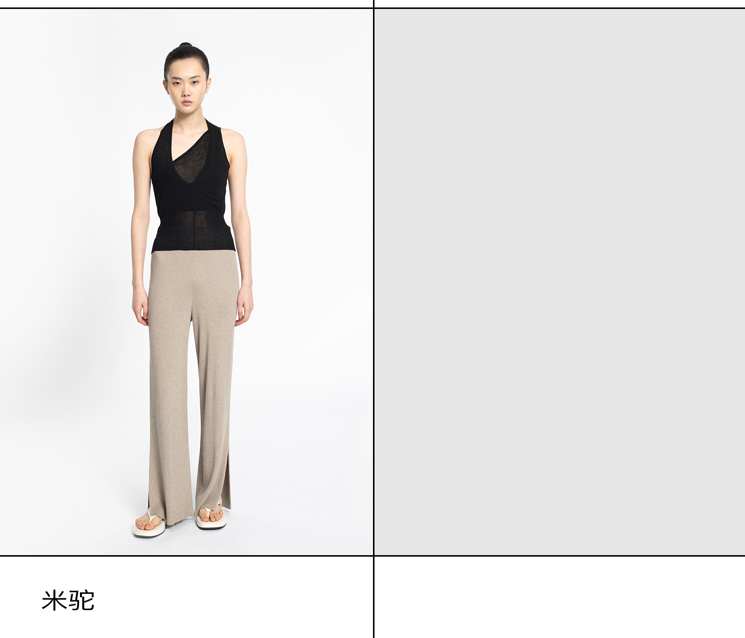 2022新款女士丝羊绒16针单股罗纹直筒开叉长裤