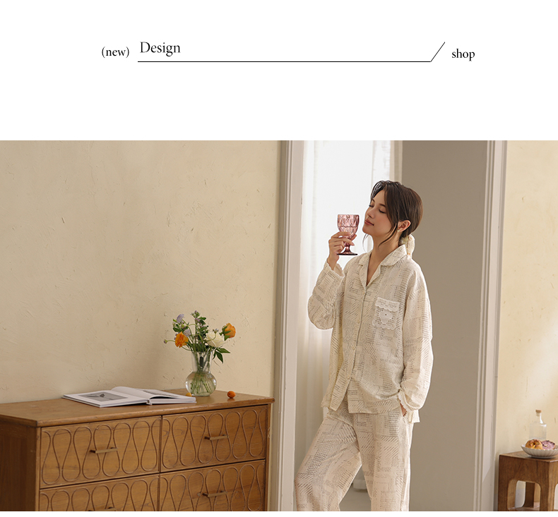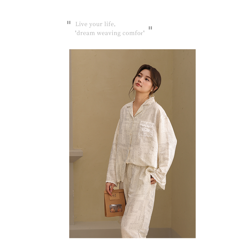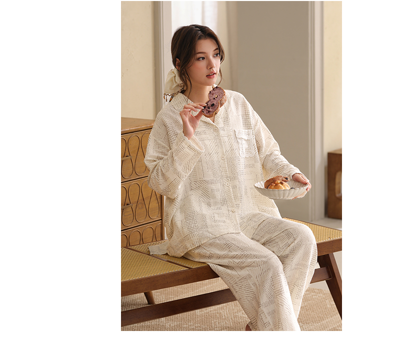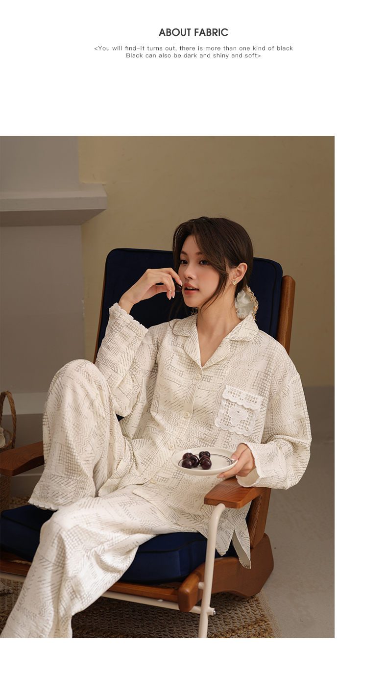 可人儿春秋季带胸垫泡泡绵女士长袖长裤睡衣可外出小众家居服套装