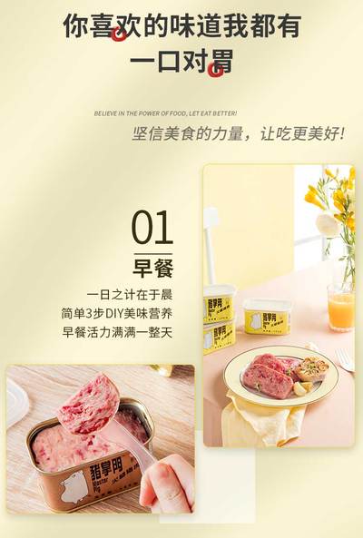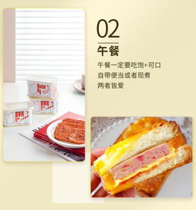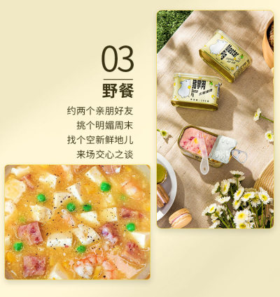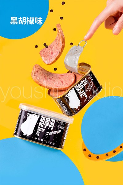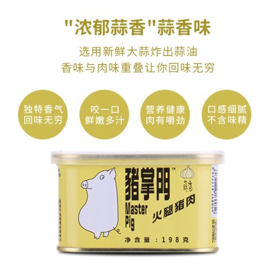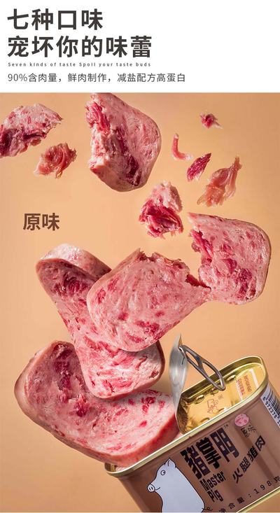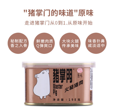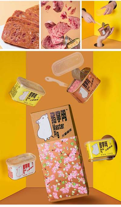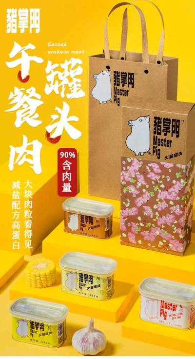 猪掌门”是市面上首款为客户提供盒盖和叉刀工具组合的午餐肉罐头产品。🥰