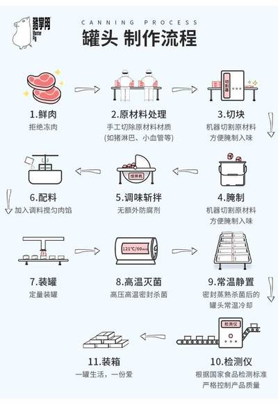 【猪掌门火腿猪肉罐头 生产流程图】