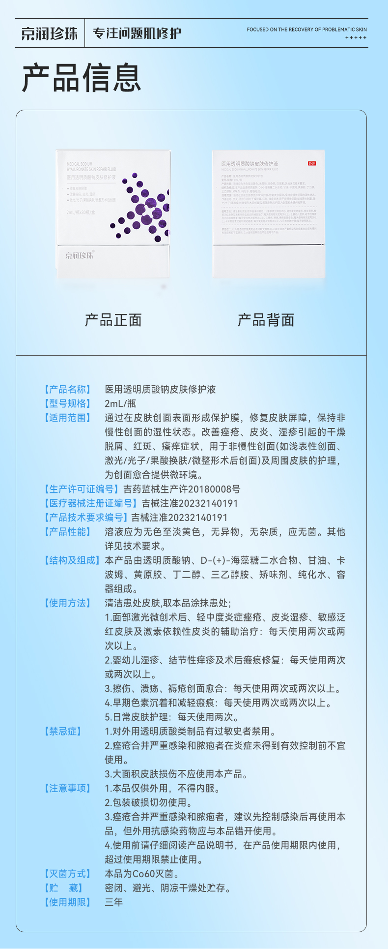 【官方直发】京润珍珠 医用透明质酸钠皮肤修护液 2ml*30支