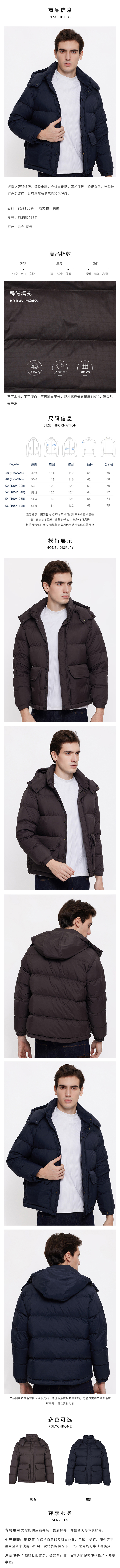 callisto藏青色鸭绒连帽立领羽绒服 FSFED016T