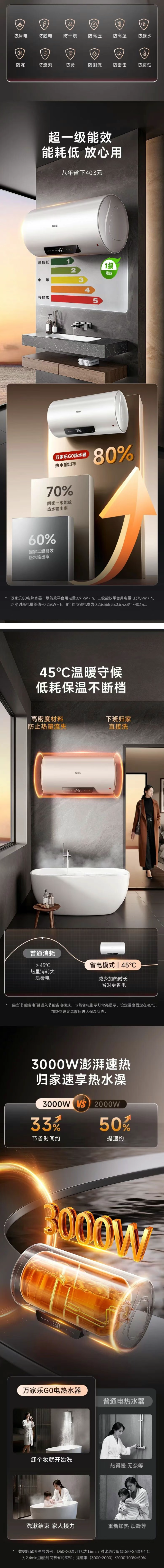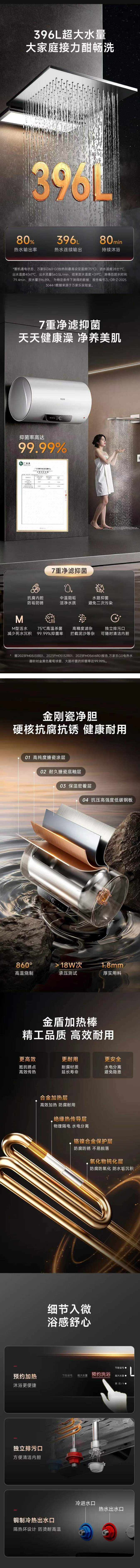 万家乐(510797)D60-G0金刚瓷净内胆抗压防腐,七重抑菌抑垢,12重安全防护