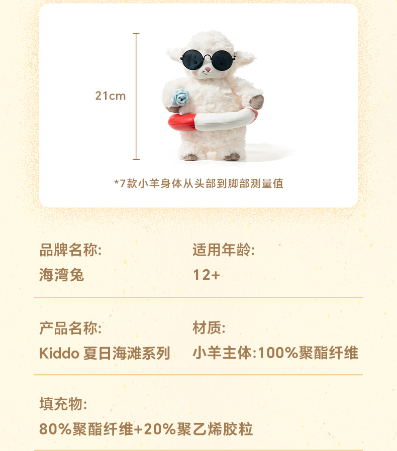 海湾兔 Bunnies小羊Kiddo夏日海滩毛绒玩具公仔可爱活泼女生日礼物