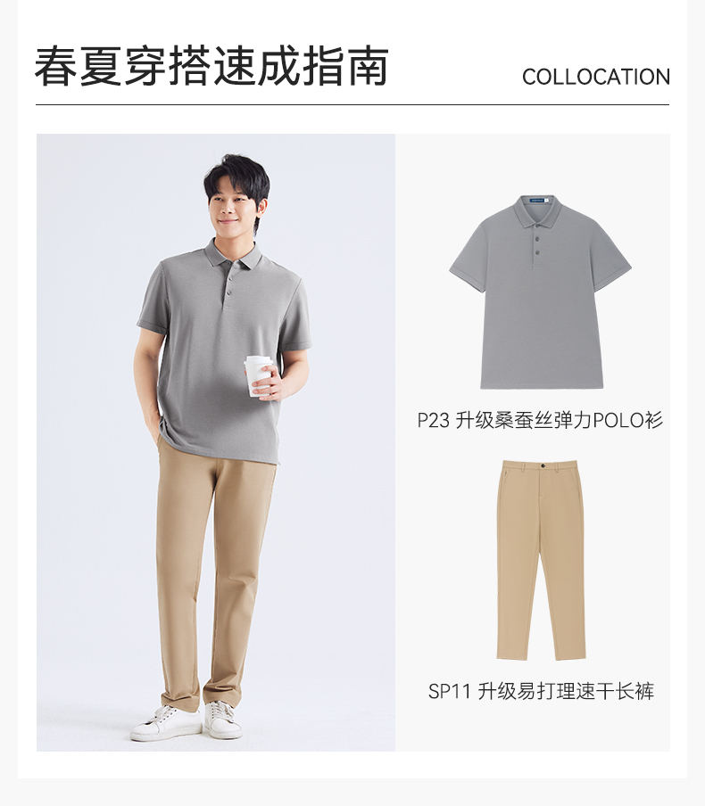 十如仕棉桑蚕丝针织短袖POLO-P23-01