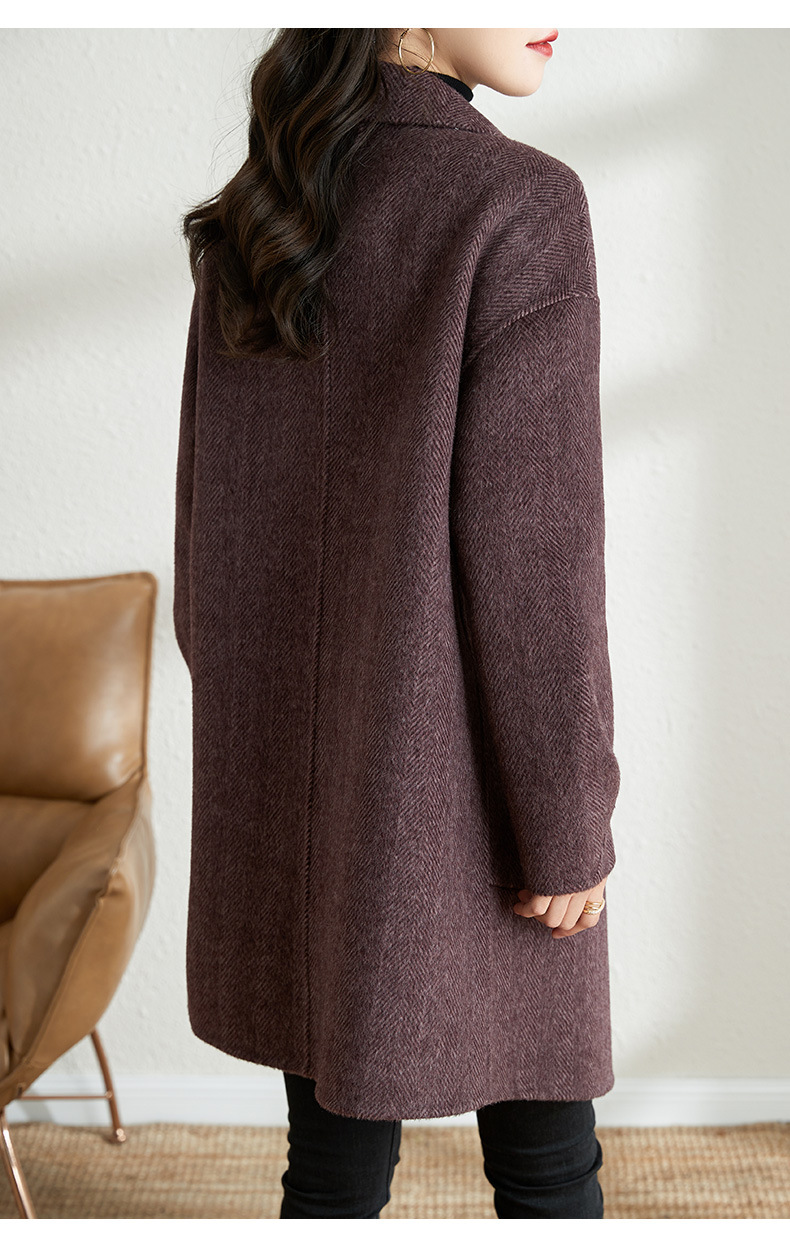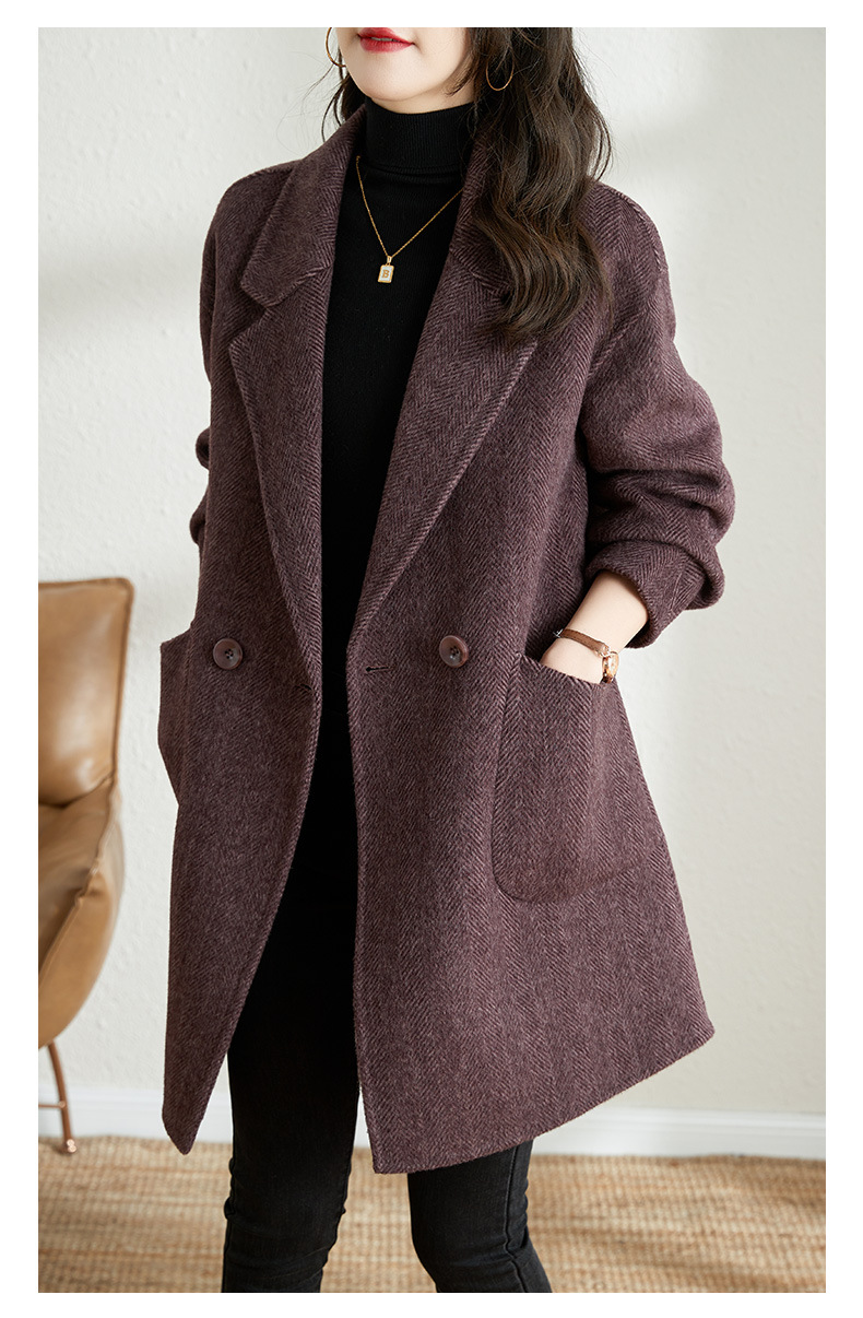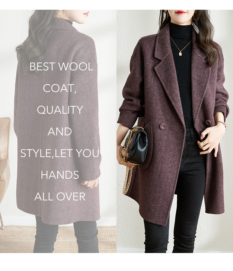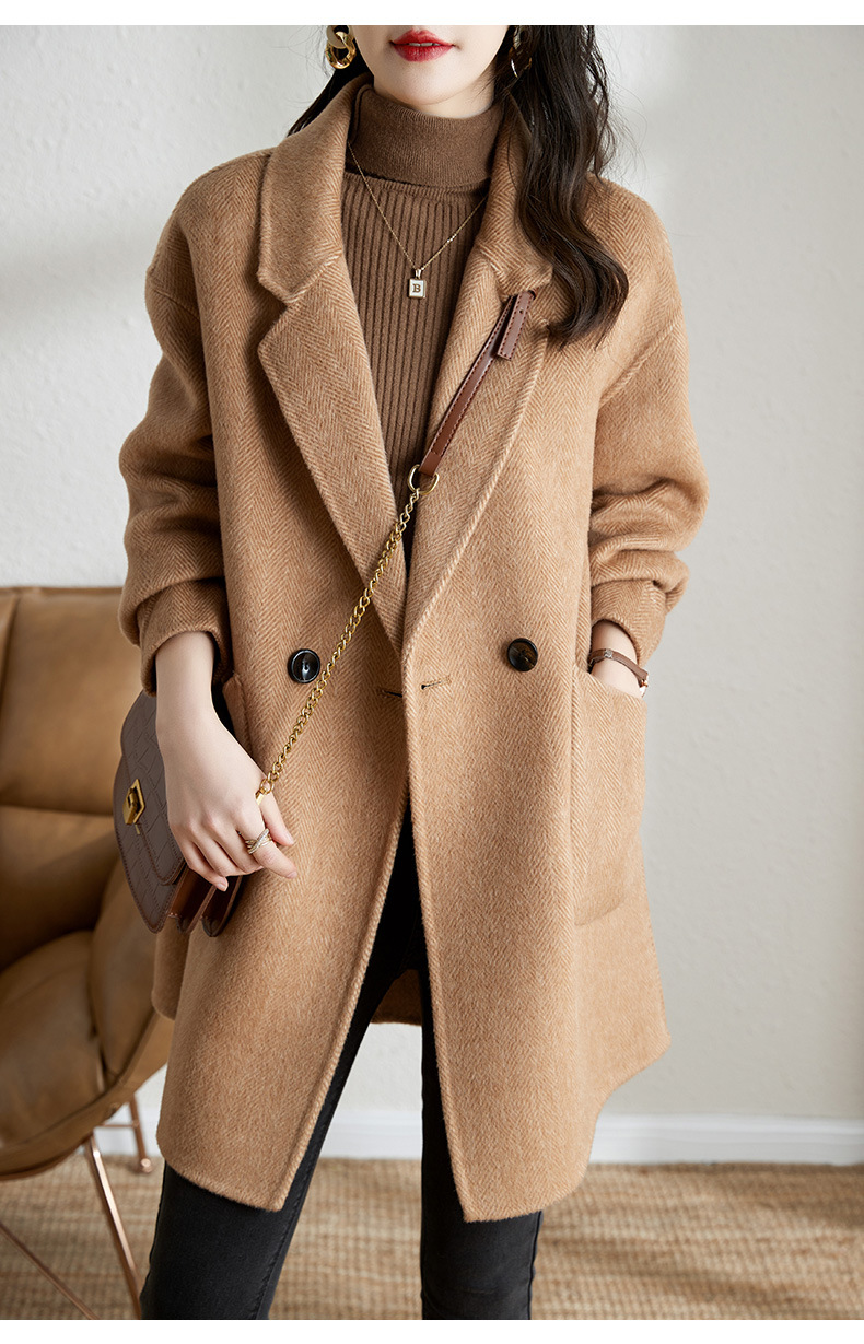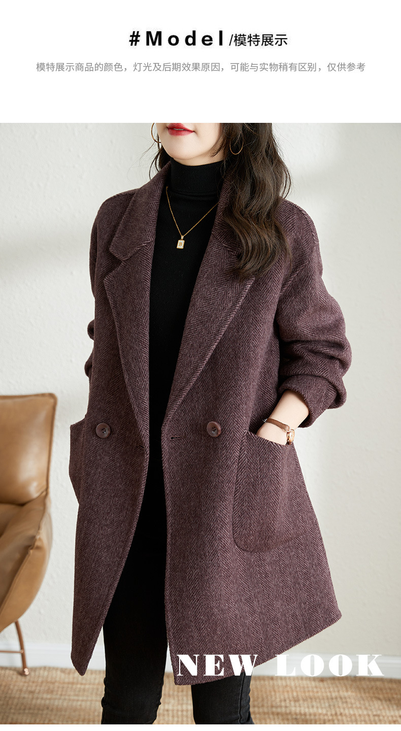 秋冬新款加棉加厚毛呢外套女气质中长款人字纹呢子大衣