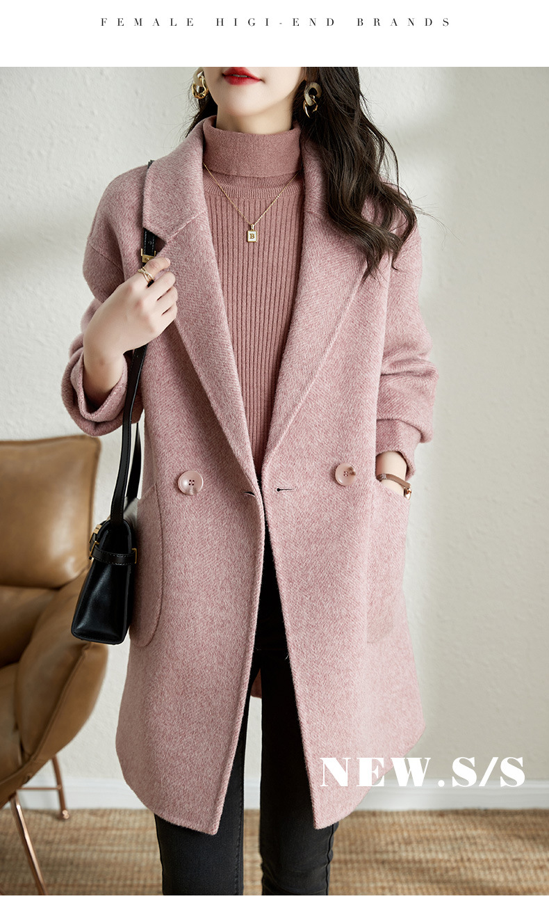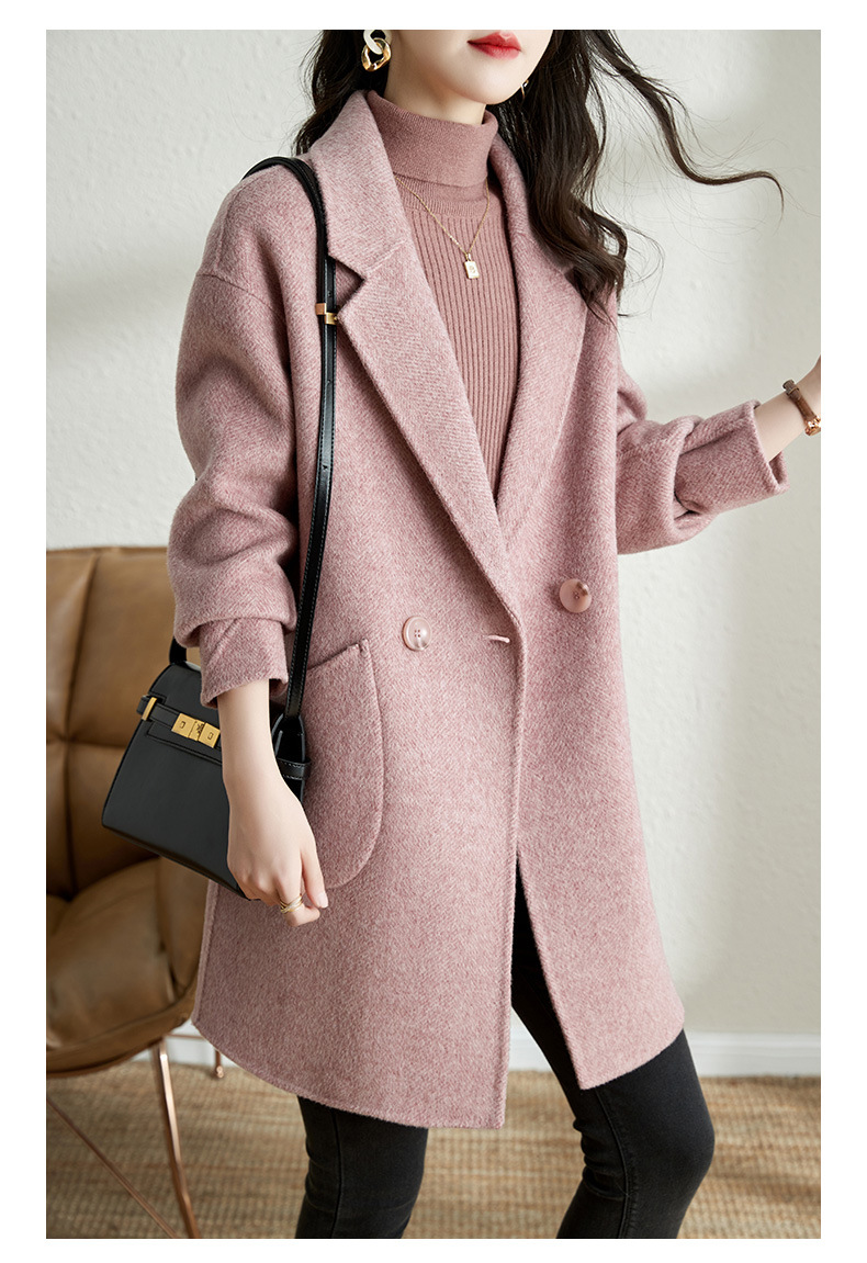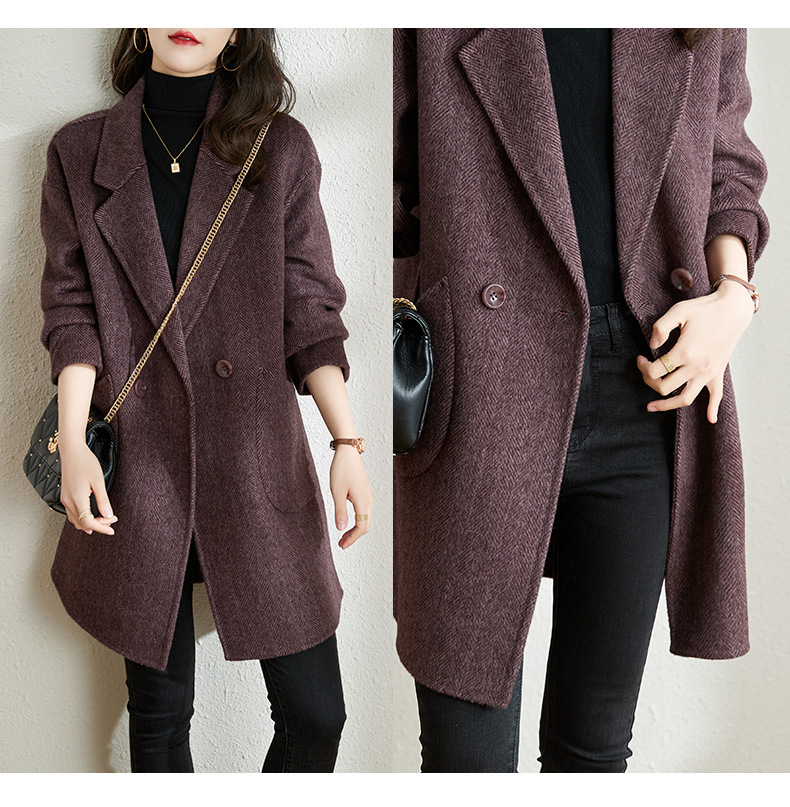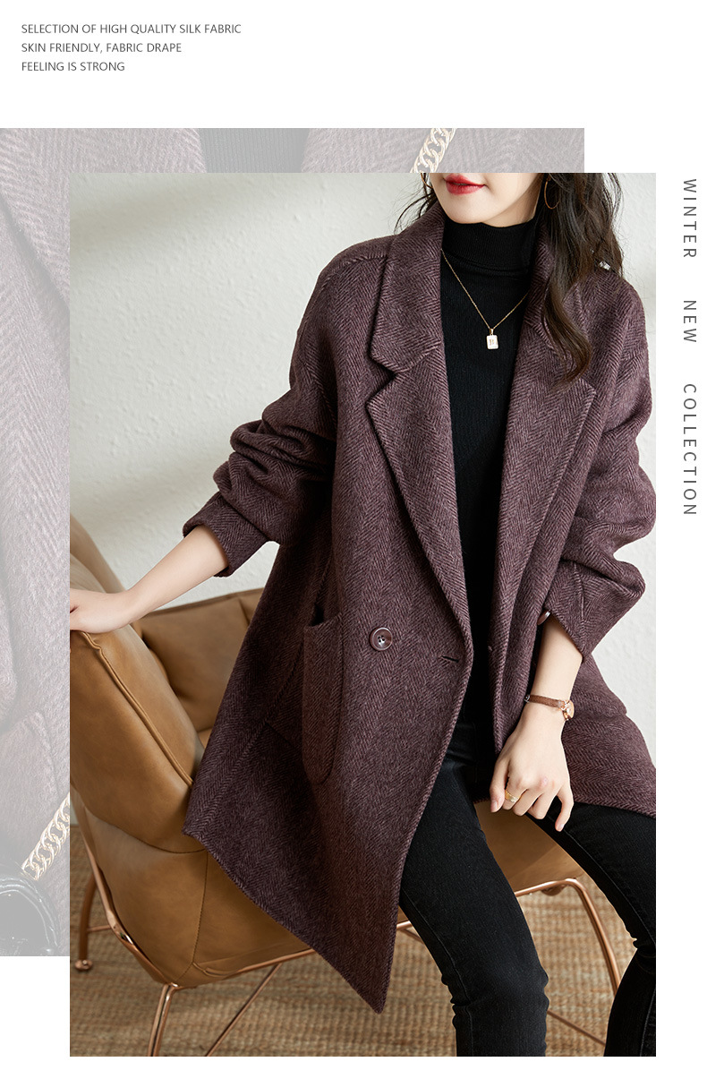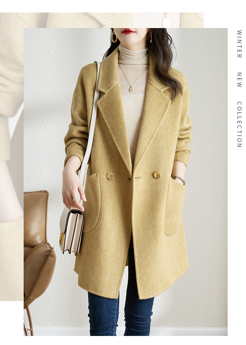 秋冬新款加棉加厚毛呢外套女气质中长款人字纹呢子大衣