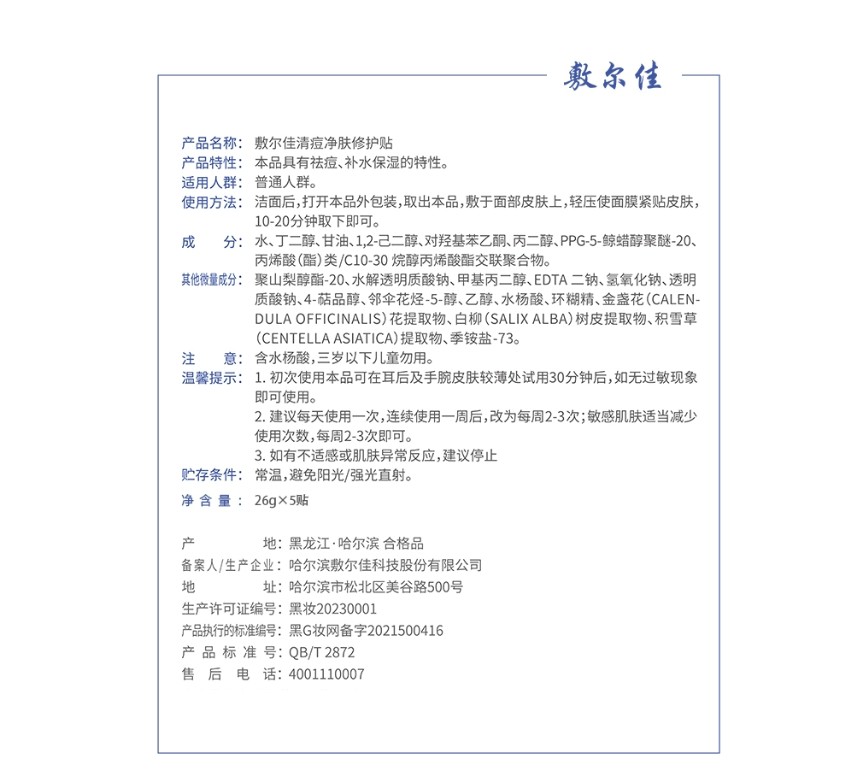 敷尔佳清痘净肤修护贴5贴/盒