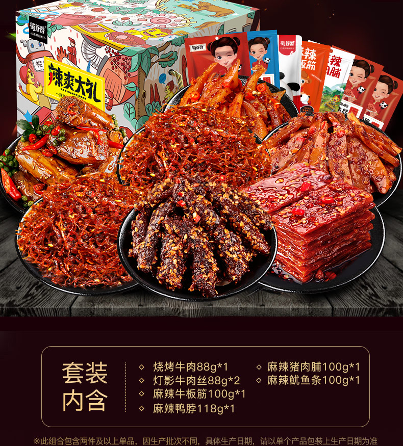 蜀道香 肉干肉脯零食麻辣全肉大礼盒682g 牛肉干鸭脖鱿鱼丝猪肉脯牛板筋 送女友零食大礼包