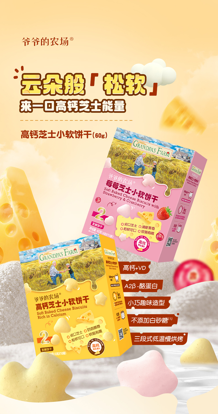 爷爷的农场高钙小软饼干60g*2+莓莓芝士软饼干60g*2