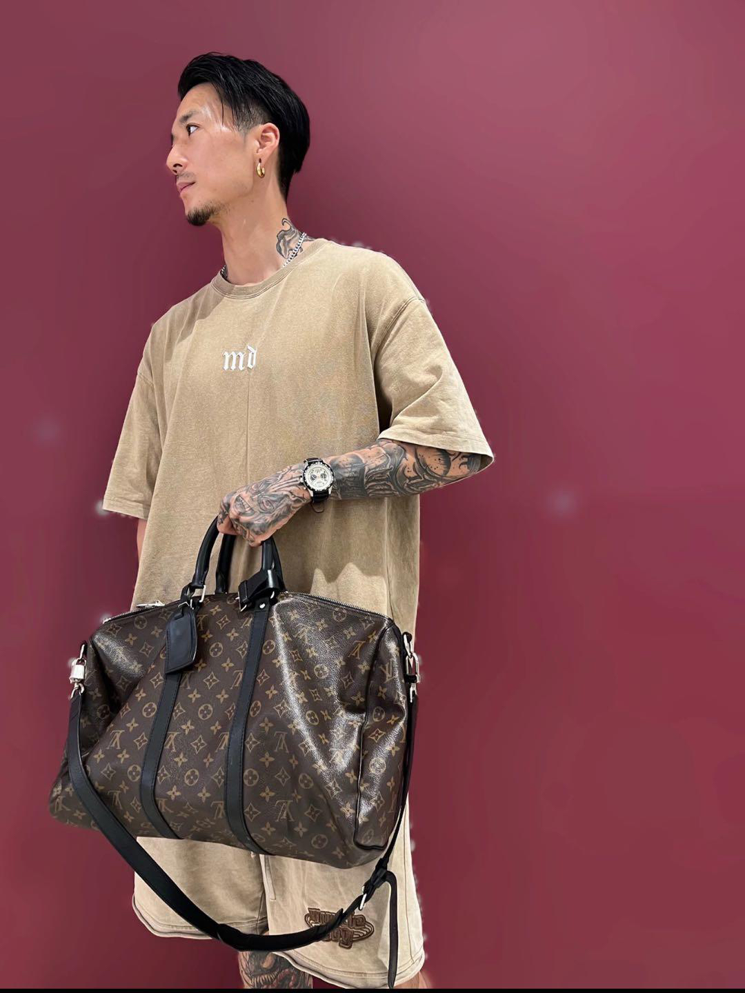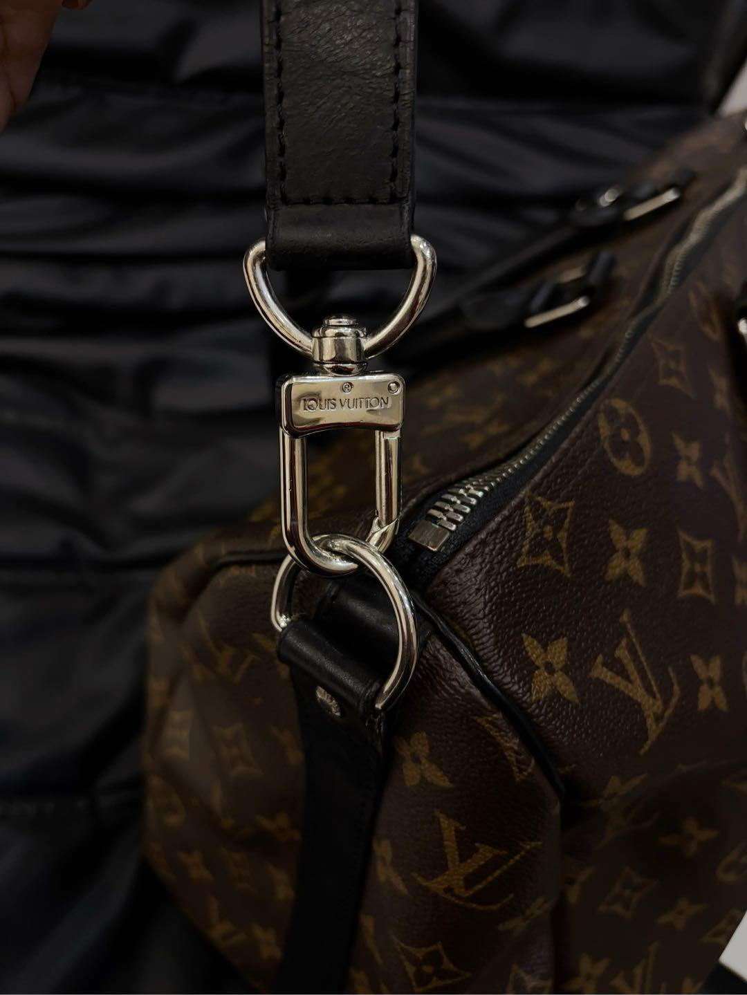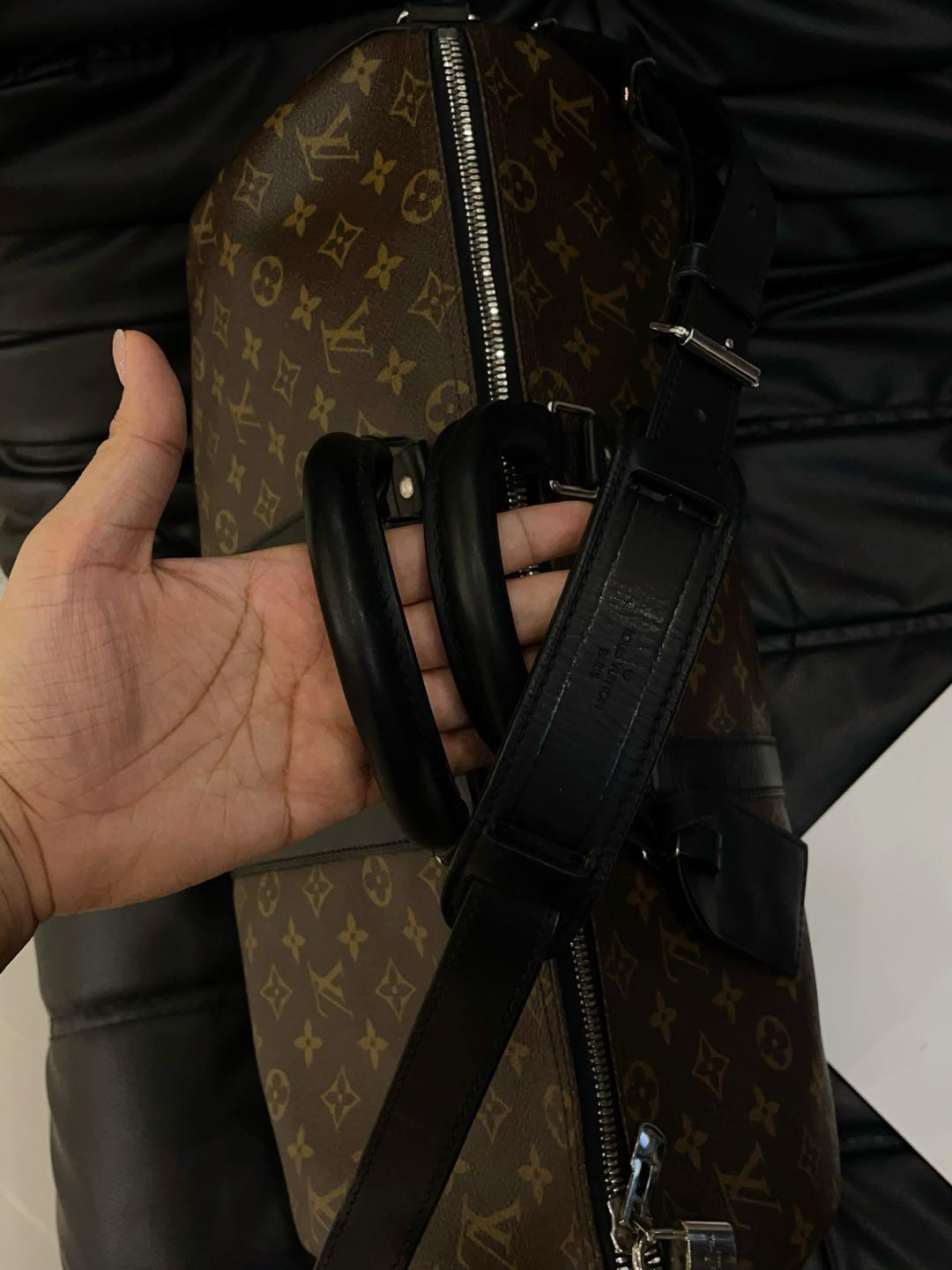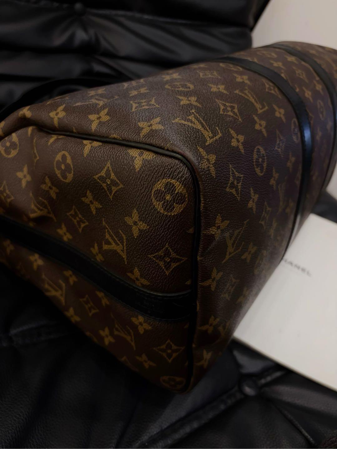 正品二手 Lv keepall 45 棕色 老花拼黑皮 手提 旅行包🍔 95新 45×27 配件:锁头 肩带 防尘袋。五金正常使用痕迹。黄金的尺寸