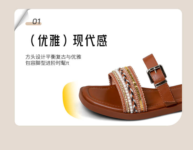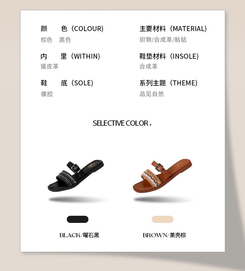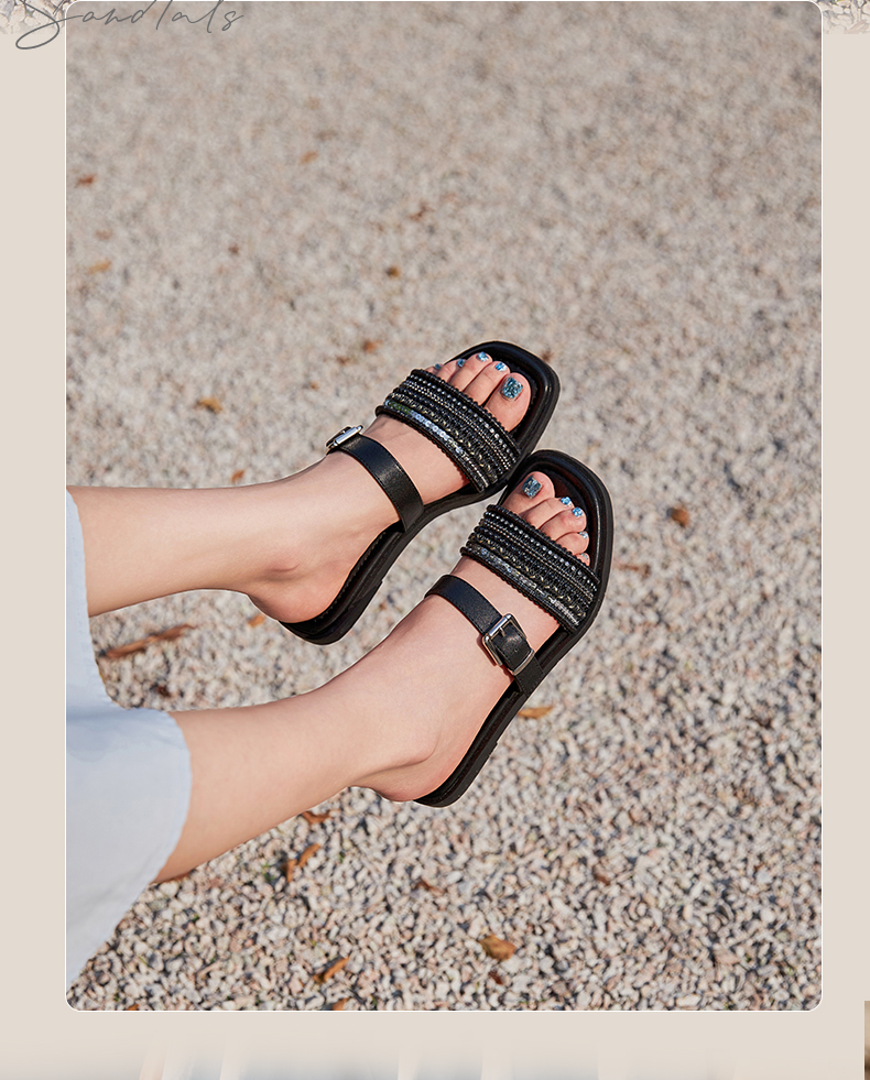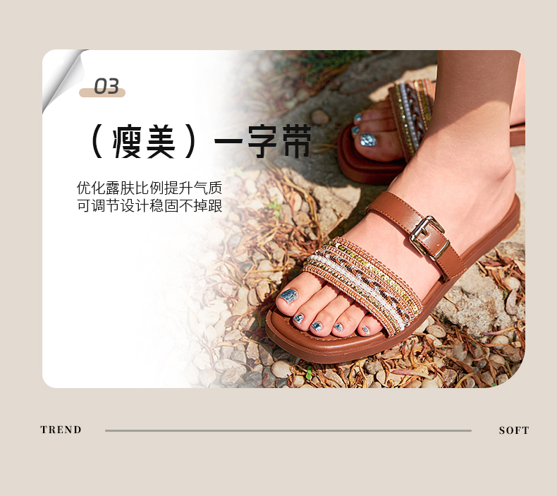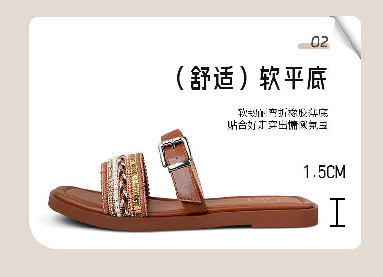 预售7天|Safiya/索菲娅2025民族风编织轻便休闲方头平底高级感一字拖SFD2110365