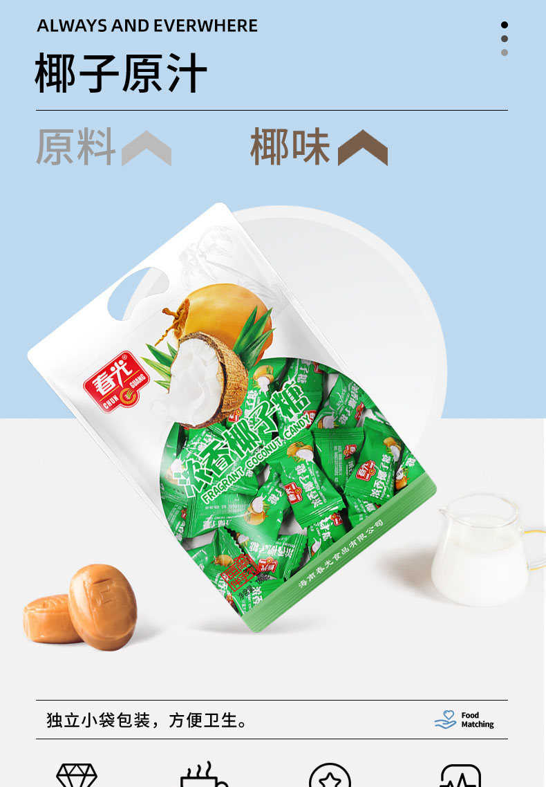 海南“著名手信品牌”春光食品,取材于海南椰子故乡,锁住北纬18°的新鲜美味。在这里,您能了解到春光食品旗舰店的最新优惠,享受优惠到不能说的价格。浓浓椰香,爱上春光!