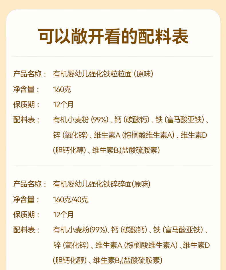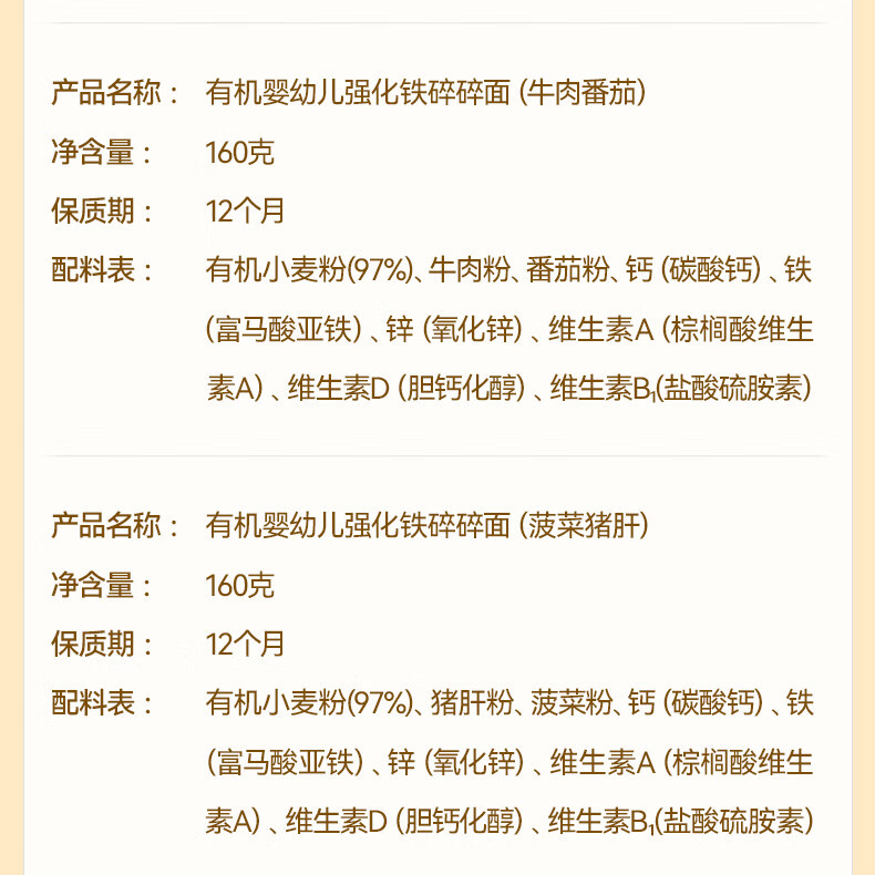 【新包装口味任选】秋田满满婴儿辅食有机婴幼儿营养面条钙铁锌盒装