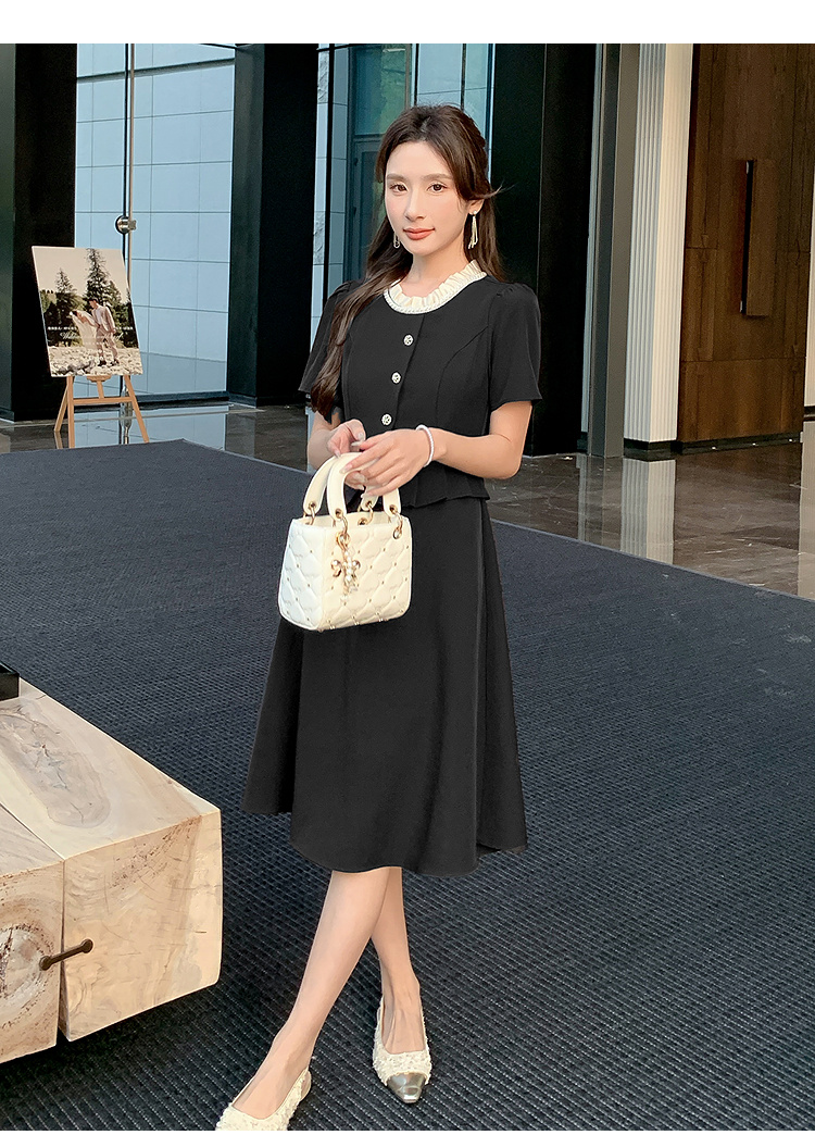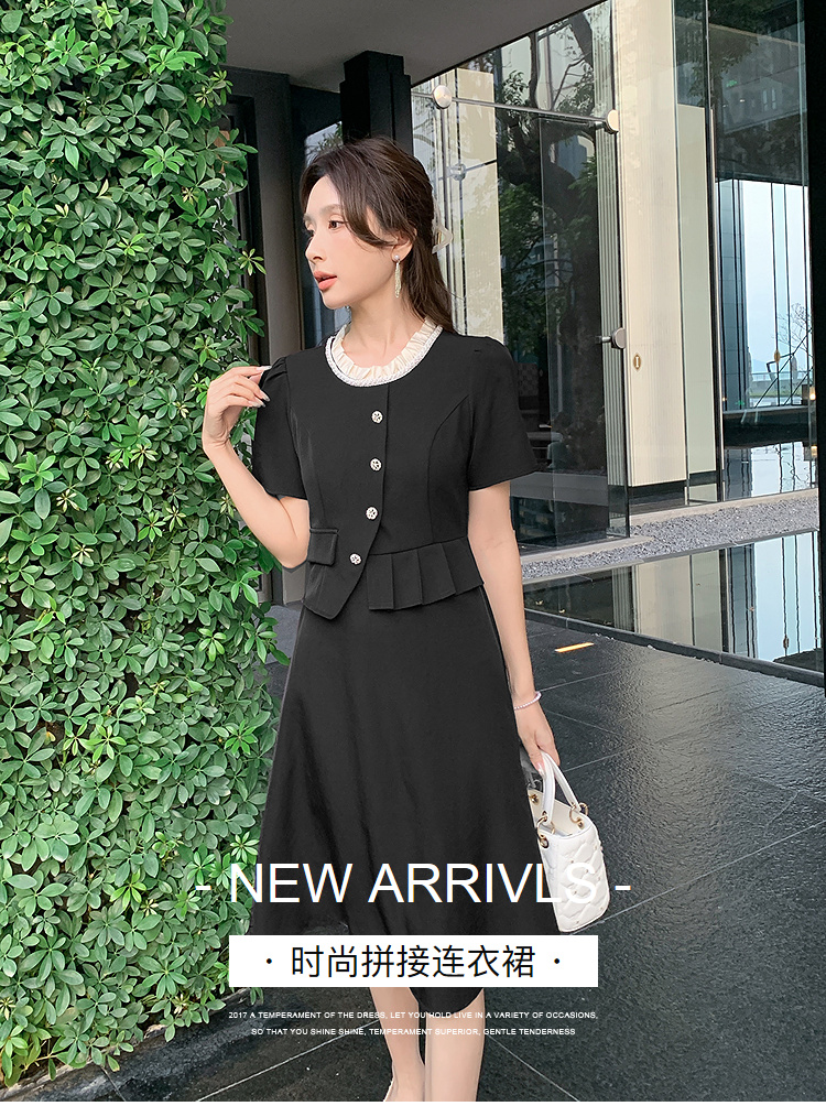 奢姿大码女装2025夏季减龄花边小百褶时尚裙子胖妹妹拼接连衣裙9952820576【1】