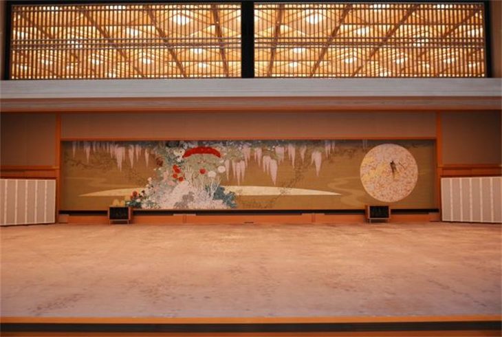 在建筑本身与内部用品上运用了大量的传统工艺。接待外国显贵时,均会以风雅的花道作品为摆设。