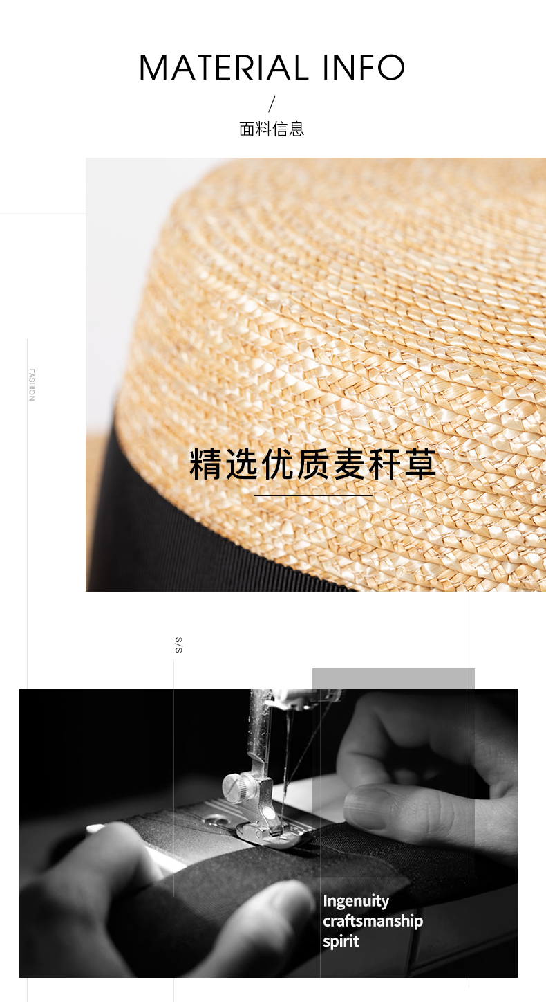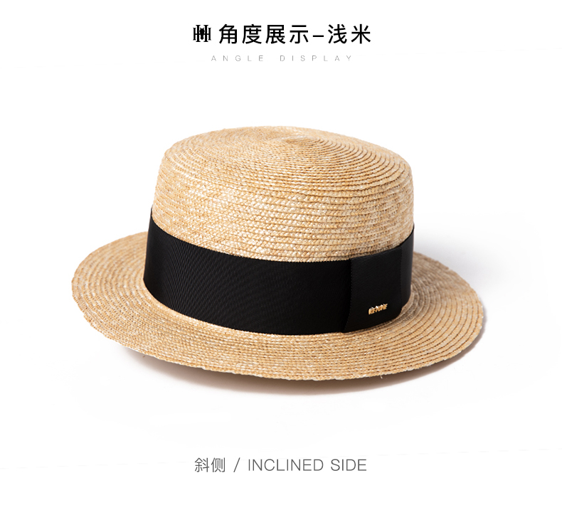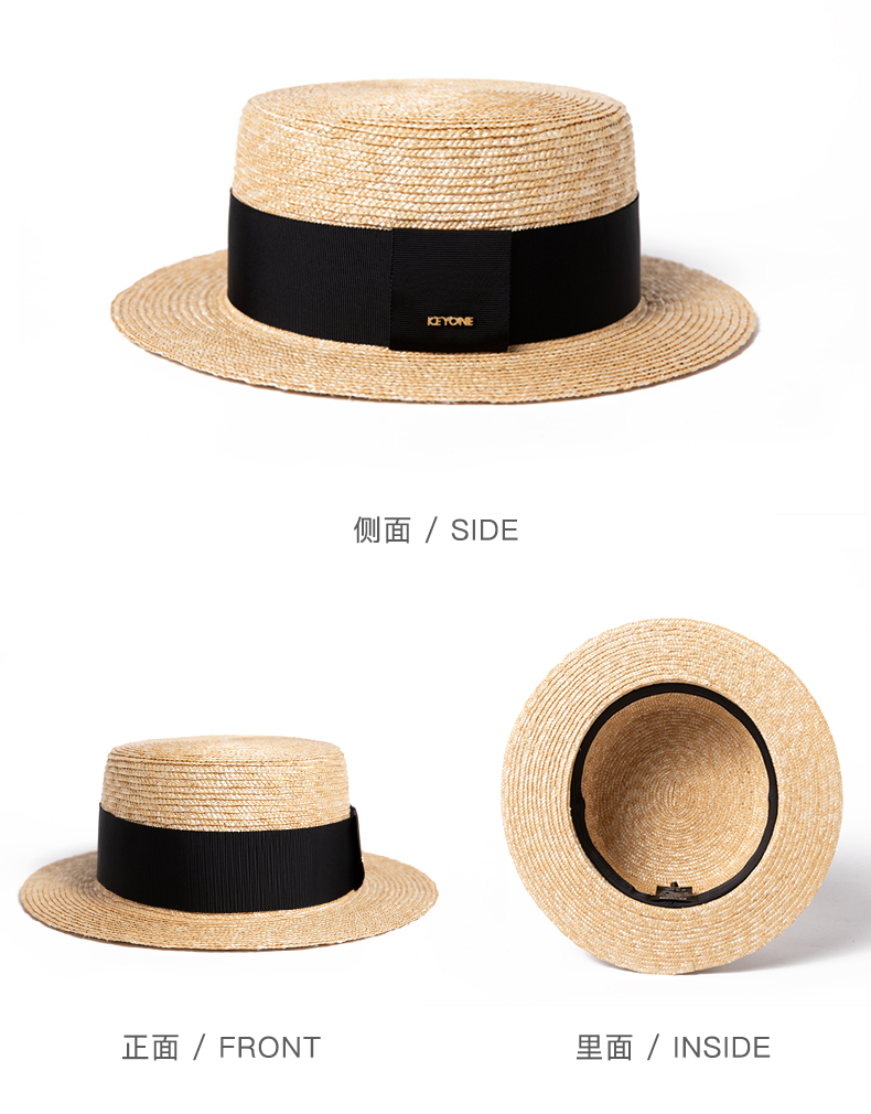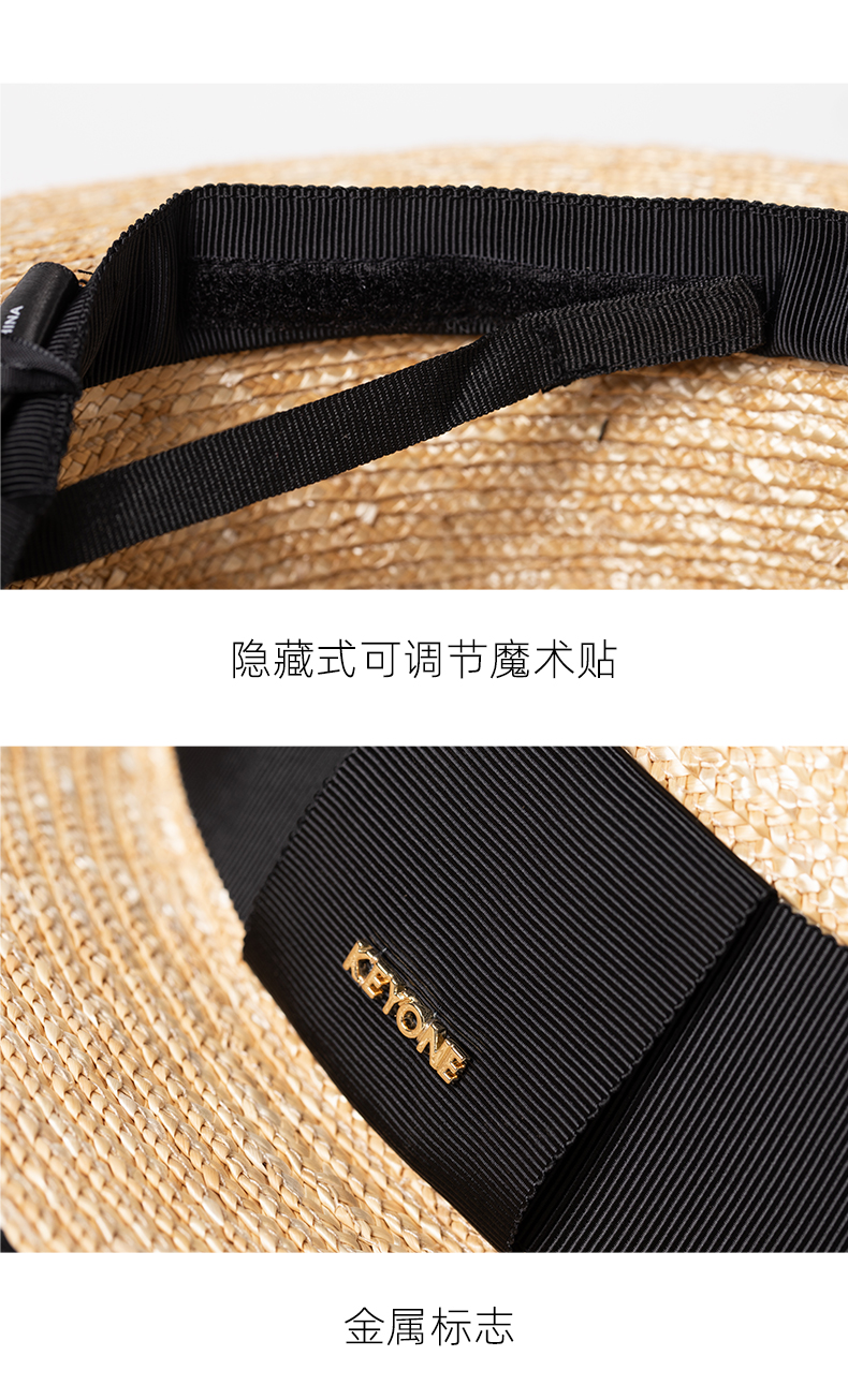 帽仕汇 KEYONE平顶草帽女夏季多色可替换装饰带手工麦秆度假遮阳帽