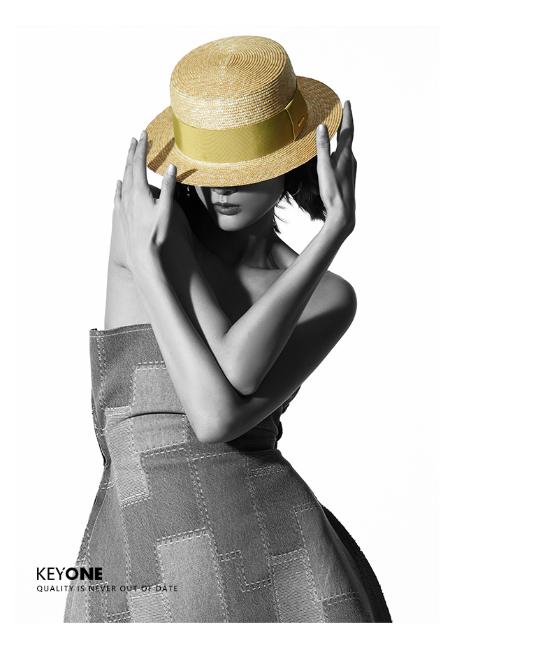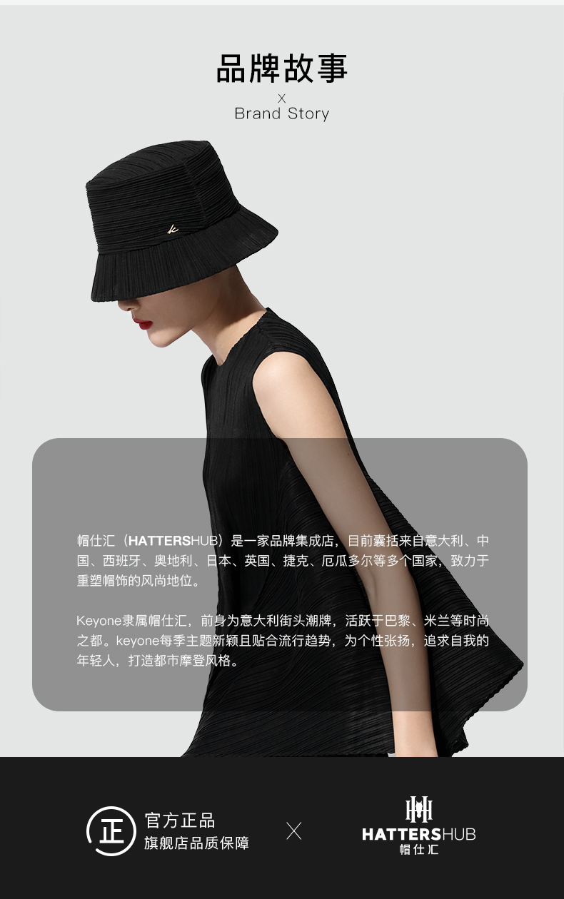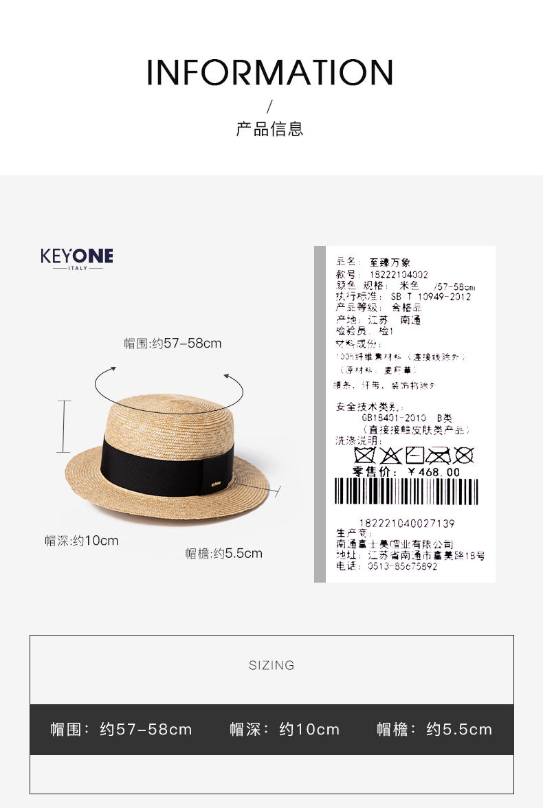 帽仕汇 KEYONE平顶草帽女夏季多色可替换装饰带手工麦秆度假遮阳帽
