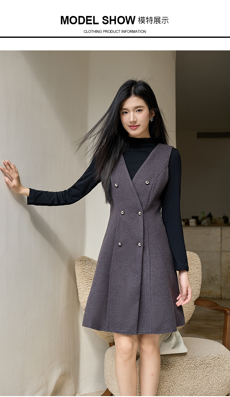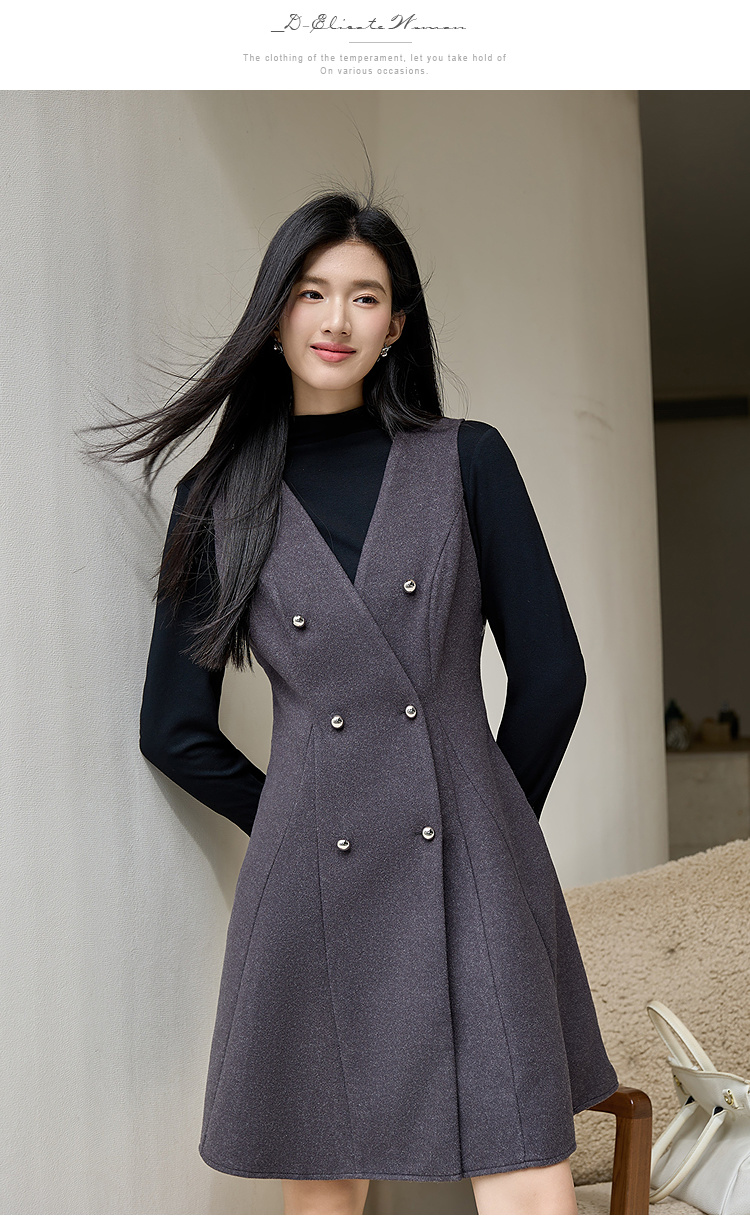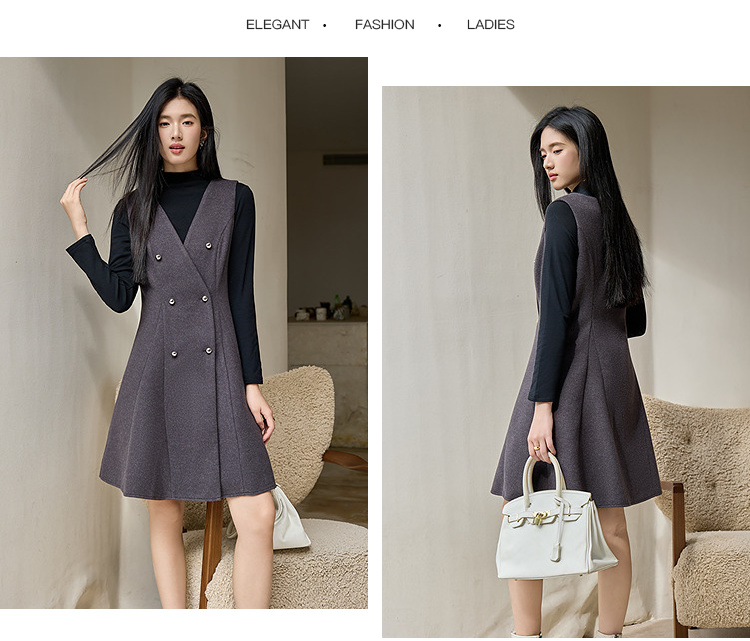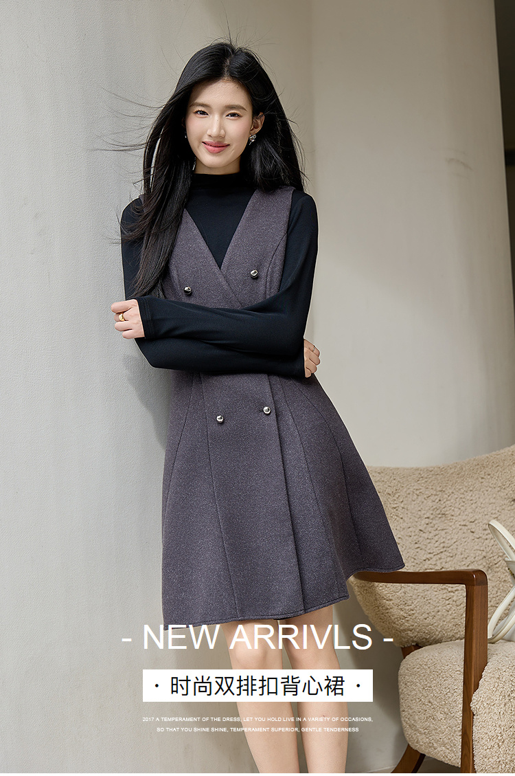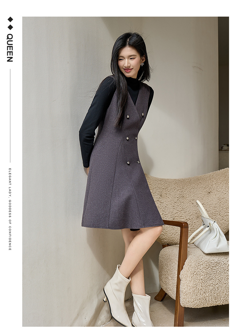 奢姿大码女装2025冬季时尚双排扣收腰连衣裙胖妹妹气质通勤中长裙9954894401
