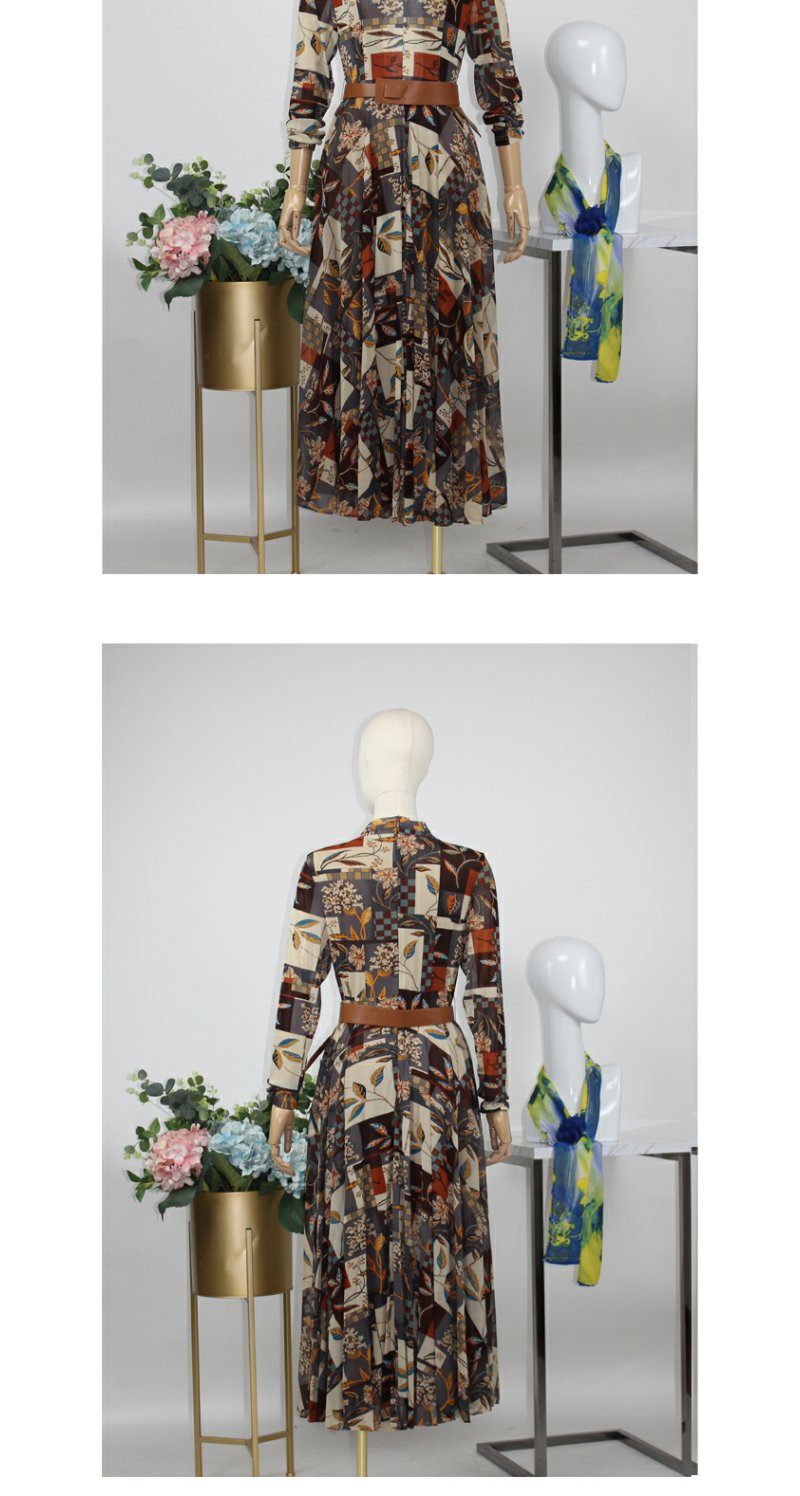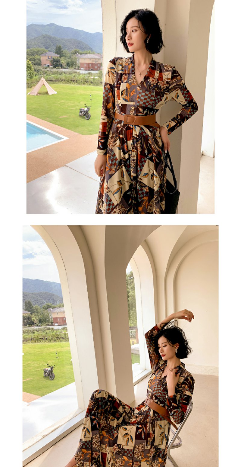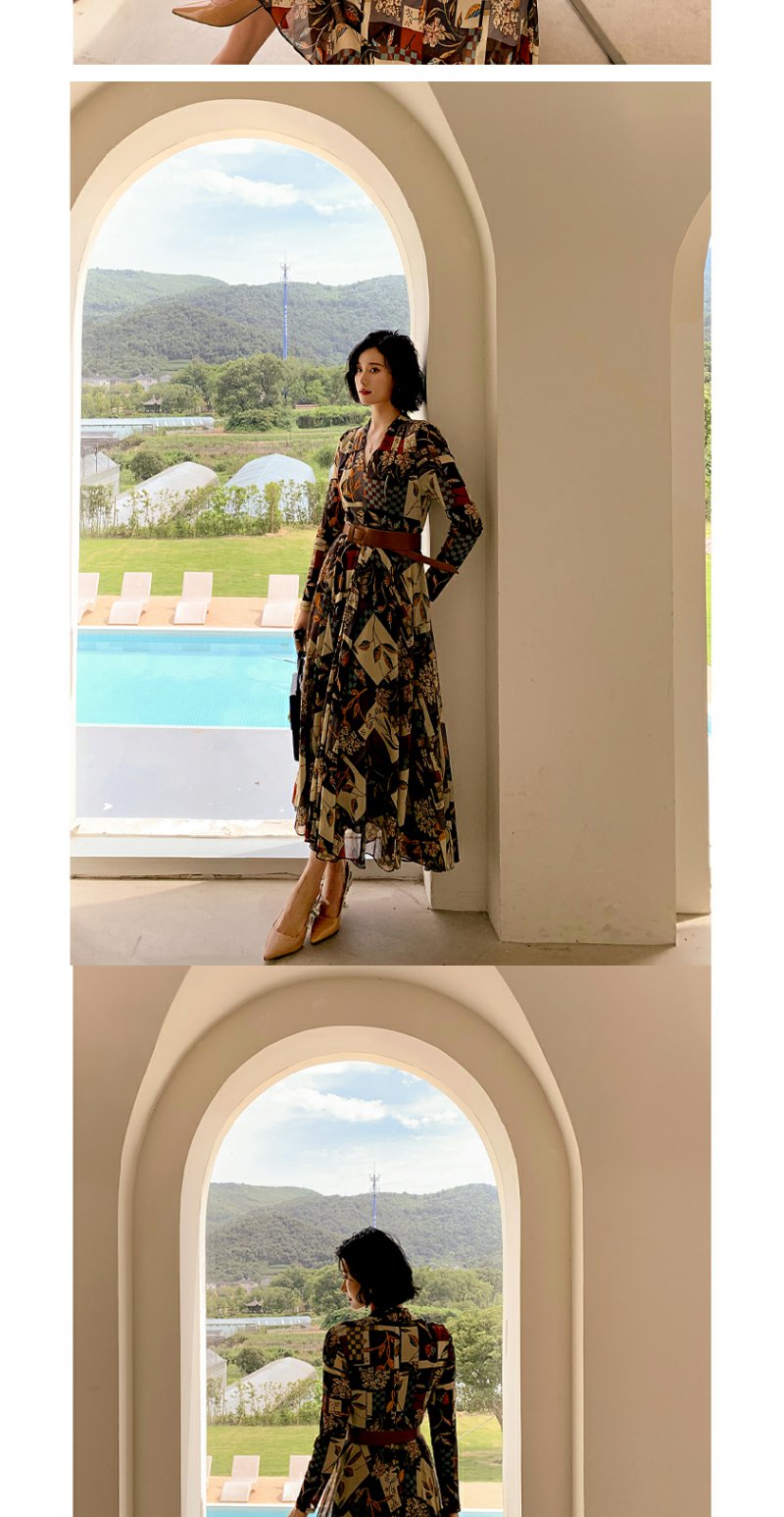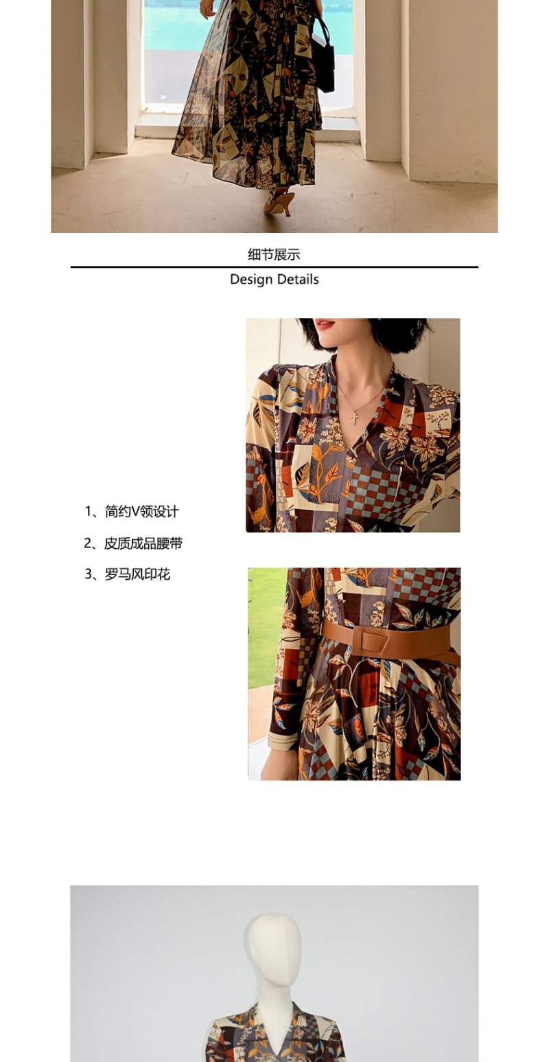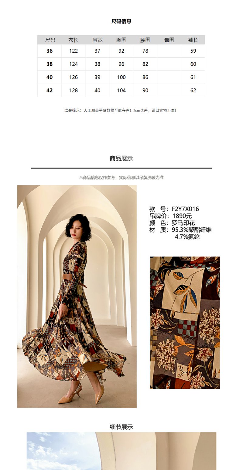 FOCALS福柯斯秋季新款针织网布长袖V领印花连衣裙F2Y7X016RV